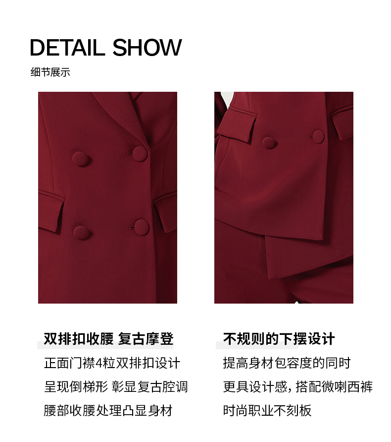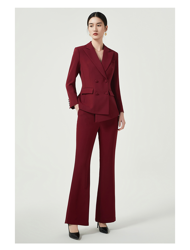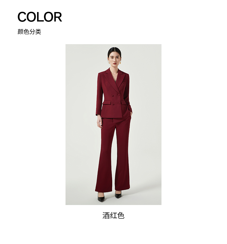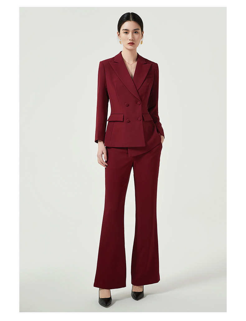 IWY/酒红色西装套装女高定轻奢气质宴会礼服正装西服喇叭阔腿裤两件套CP11358