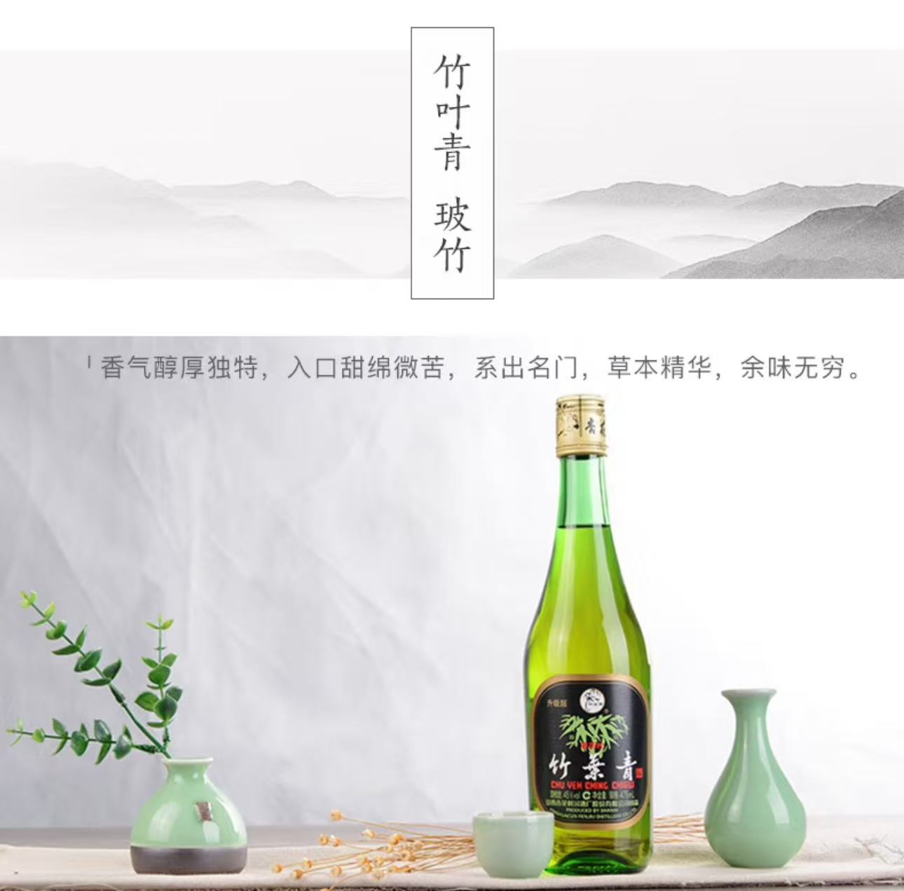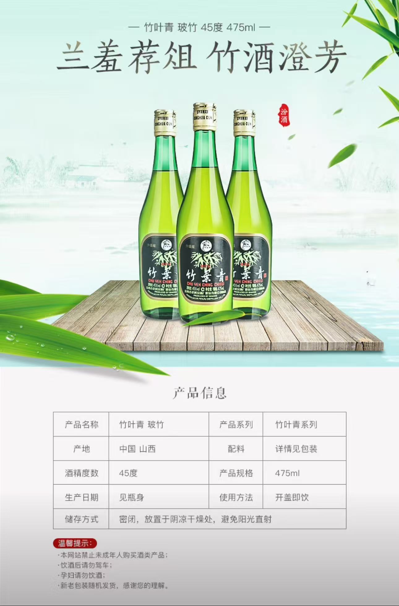 汾酒 45度玻竹叶青(475ml*12瓶)-整箱装
