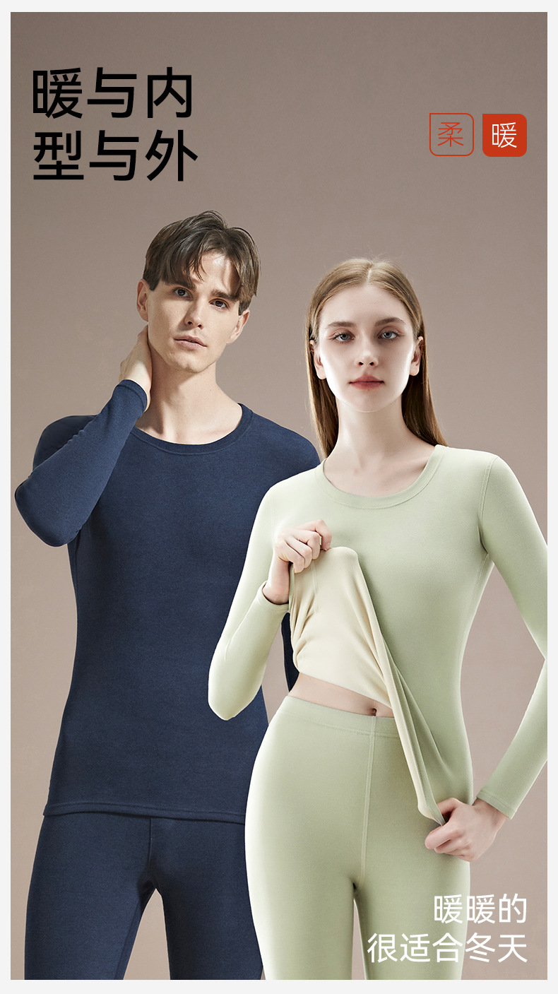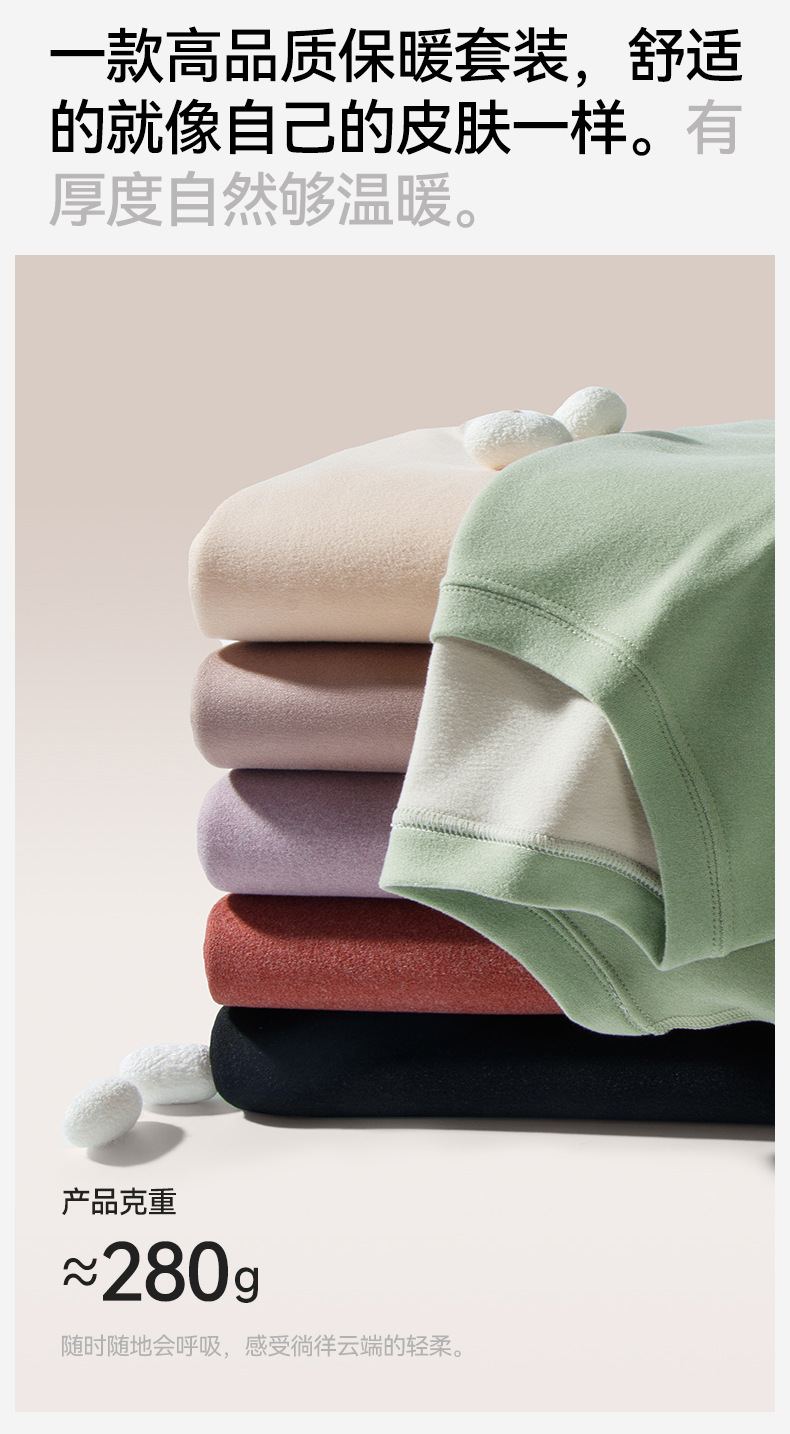 【百大严选】宝娜斯【秋衣秋裤套装】AB双面磨毛 修身打底衣蓄热保暖内衣男女款