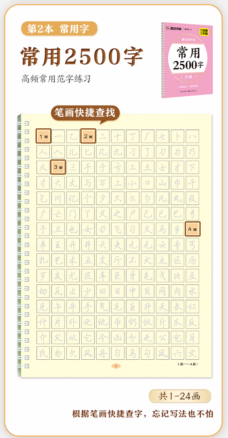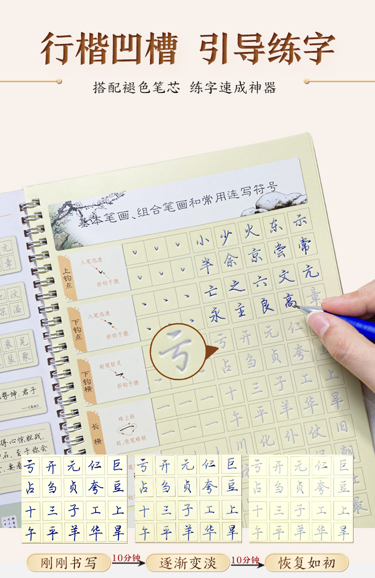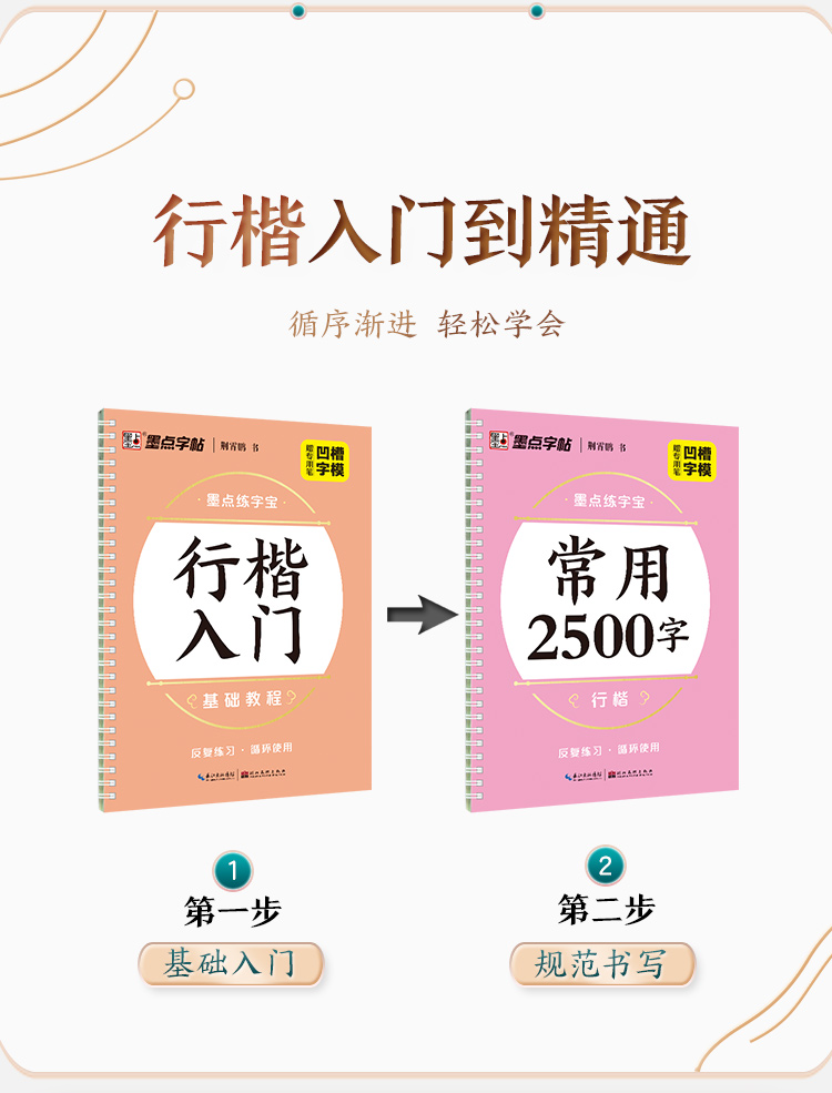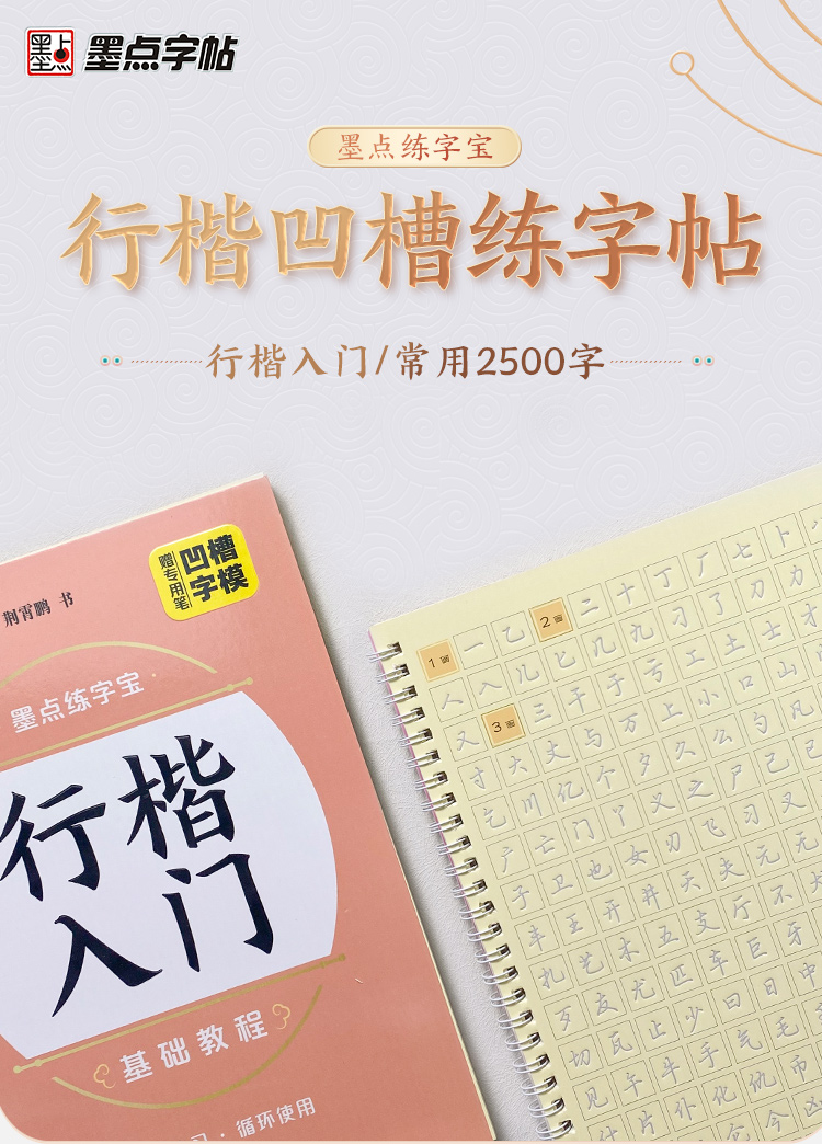 墨点字帖 练字宝 行楷凹槽练字帖2本初学者入门成人硬笔书法练字本男女生钢笔速成字帖学生专用反复练习可消失