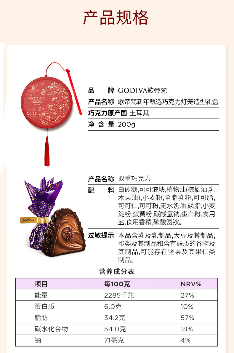 歌帝梵【马年限定】新年甄选巧克力灯笼团圆礼盒200g