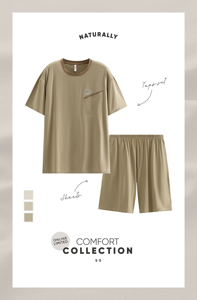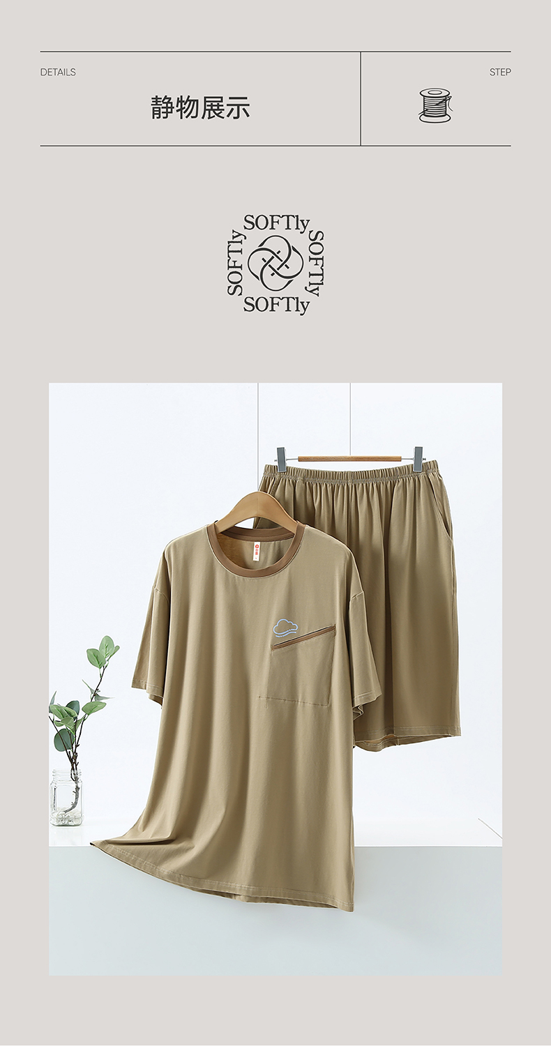 (合作款)芬腾新款男士睡衣春夏季纯棉短袖短裤家居服套装yc0309032