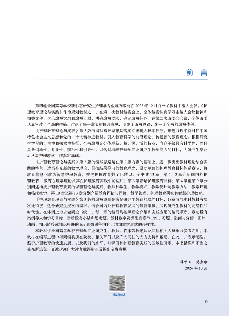护理教育理论与实践 第3三版 十四五规划教材 全国高等学校教材 孙宏玉 范秀珍 主编 供研究生护理学专业用 人民卫生出版社