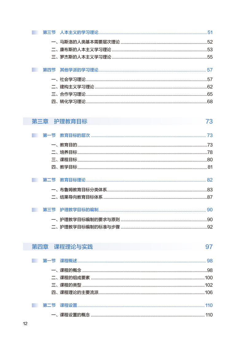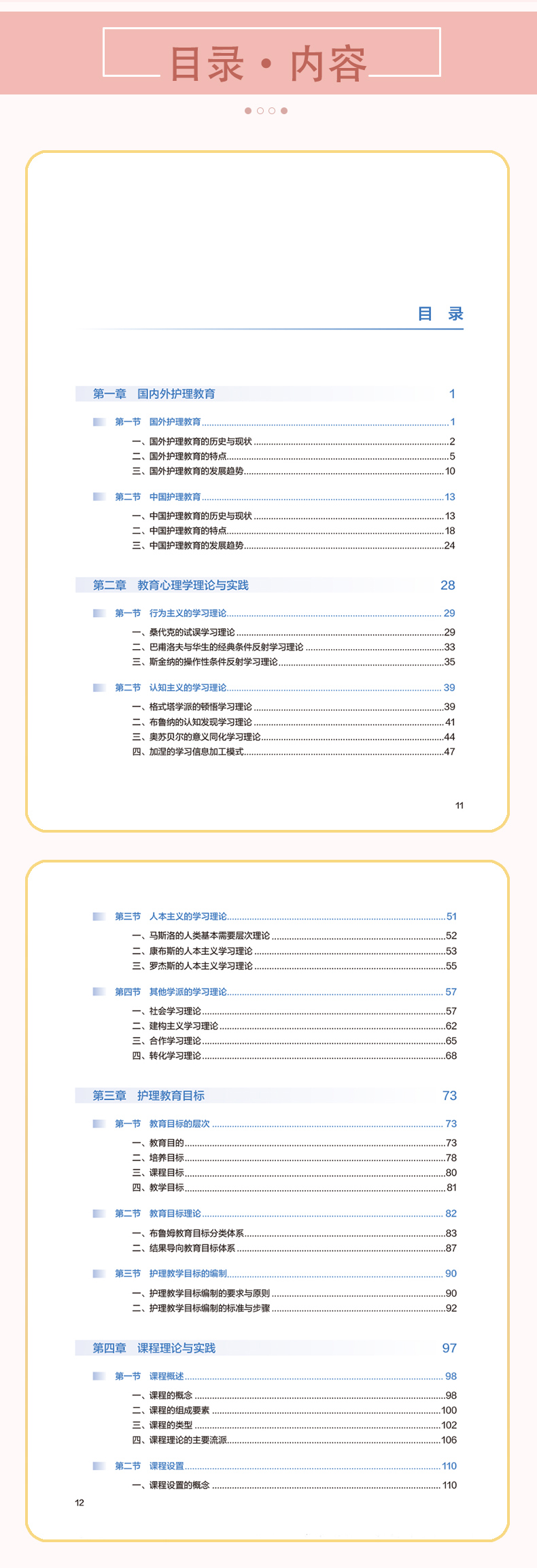 本教材遵循科学性、前沿性、开放性、研究性、实践性、精约性的教材编写要求,将习近平新时代中国特色社会主义思想和党的二十大精神融入护理教育内容,落实立德树人根本任务,渗透课程思政理念。教材从结构设计上注重从宏观的教育理论到微观的教学设计,从具有导向功能的教育目标到回应目标实现的教育评价,从传统教学环境到智能时代的智慧教育,精准对接课程目标。具体的章节内容布局上,涵盖13章:护理教育的发展、教育心理学理论与实践、护理教育目标、课程理论与实践、教师与学生、教学模式、教学设计与教学方法、教学环境、临床教学、教育的评估与评价、护理教育研究、智慧教育。同时各章节二级目录运用严谨的逻辑架构铺陈创新体例,确保内容全面翔实。 本教材作为高等医学院校护理专业研究生学习教育学的规划教材,紧扣护理学专业研究生的培养目标和学习特点:与现代教育前沿和数字化教育理念相契合,体现护理学科特色,从内容选择的广度和深度到资料编写呈现方式,均符合护理学研究生人才培养目标的要求,服务护理学研究生人才培养。同时,也可以面向临床和社区护理教育者,作为培训书目,对护士开展护理教育工作大有裨益。