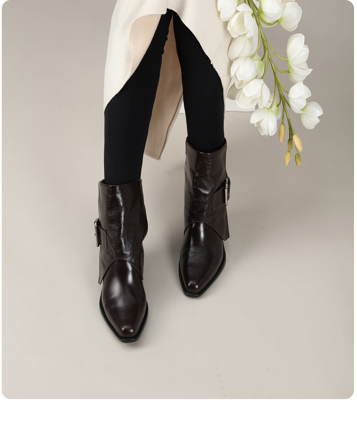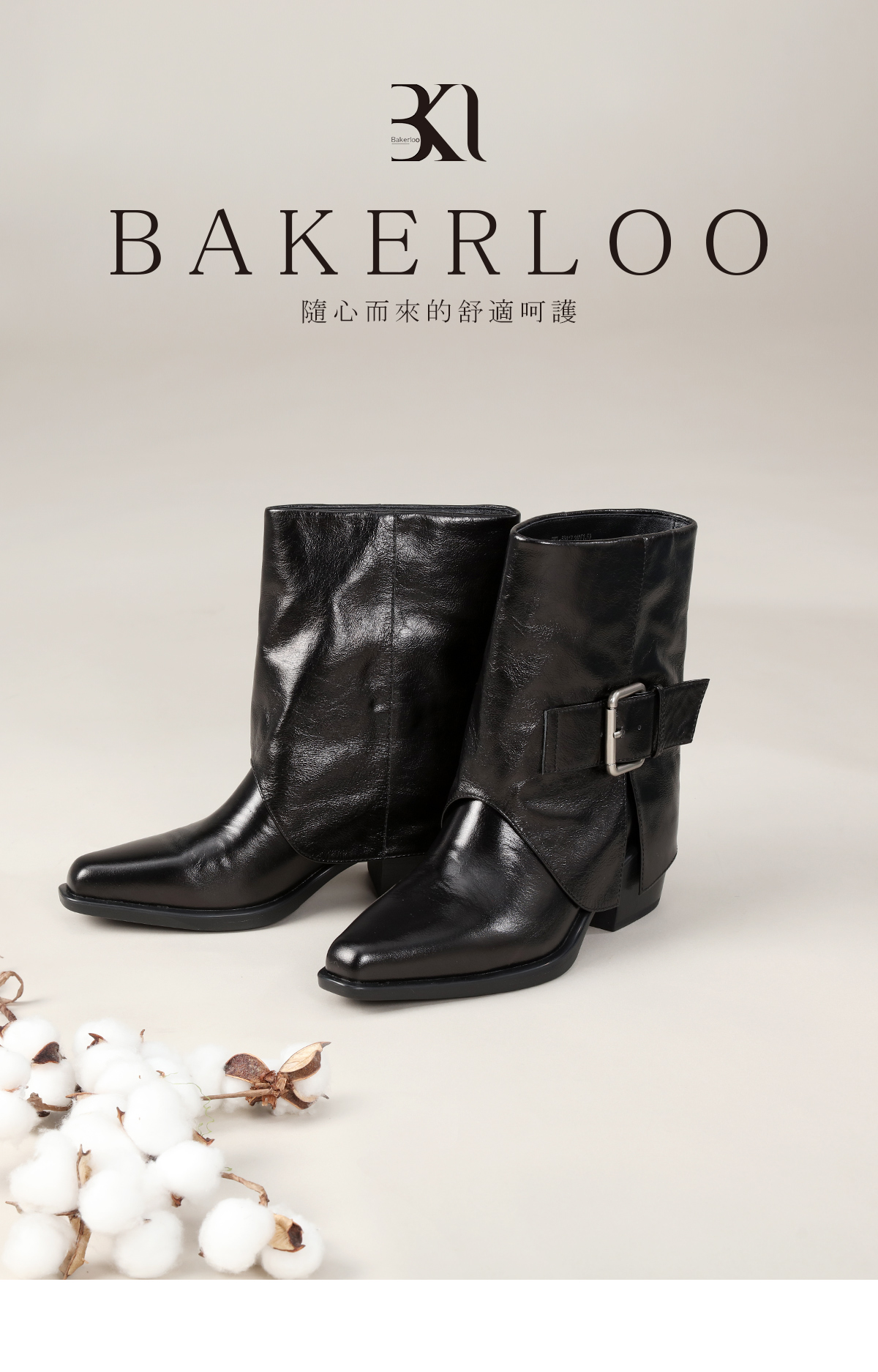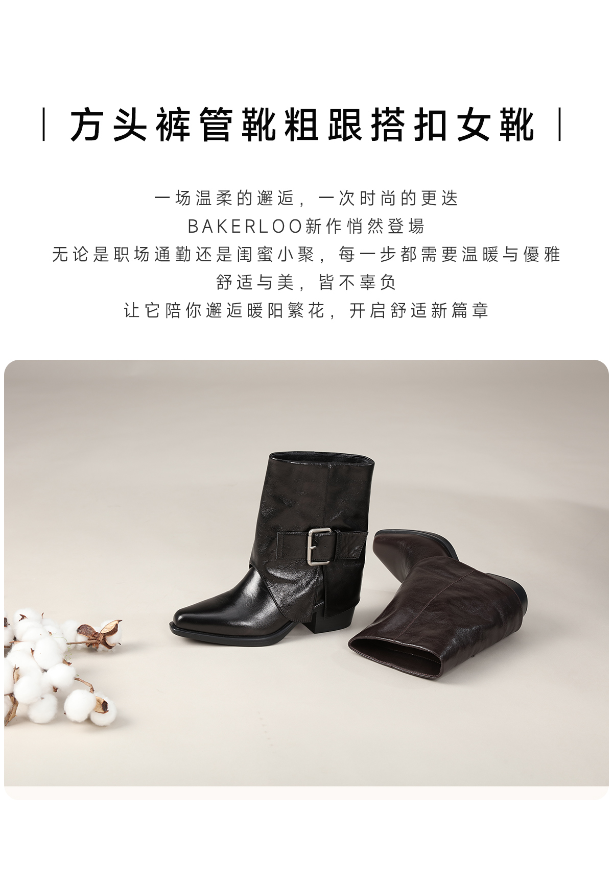BAKERLOO方头裤管靴粗跟搭扣女靴AD217