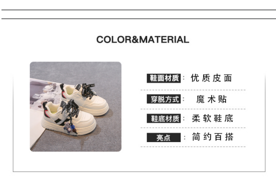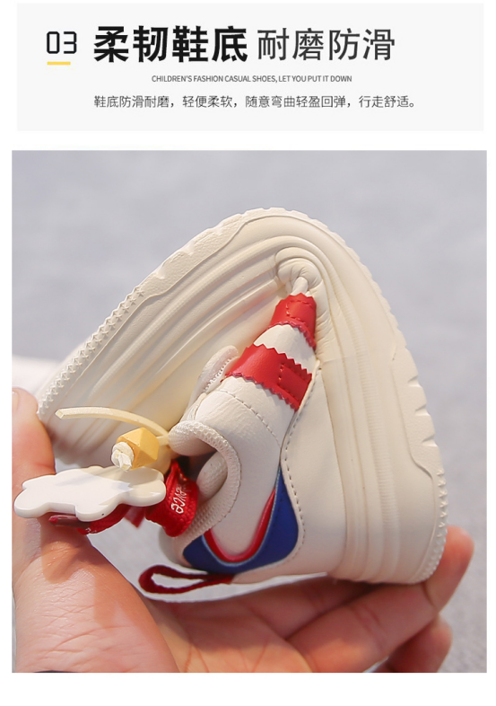 ✨ 好穿耐造,宝妈闭眼入 软皮面防水好打理,脏了一擦就干净 防滑橡胶大底,跑跳稳当不打滑 鞋头微翘防撞,保护小脚趾,疯玩无压力 透气不闷脚,春秋穿超舒服