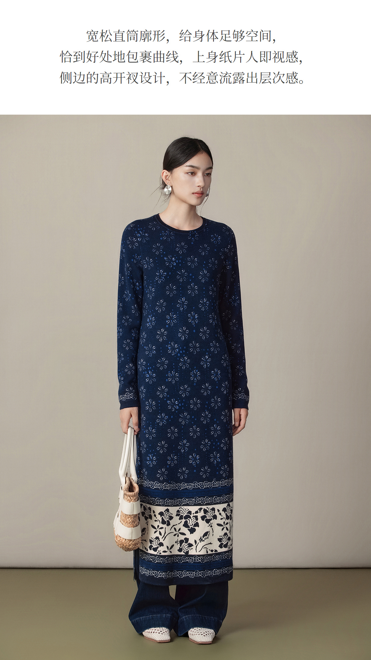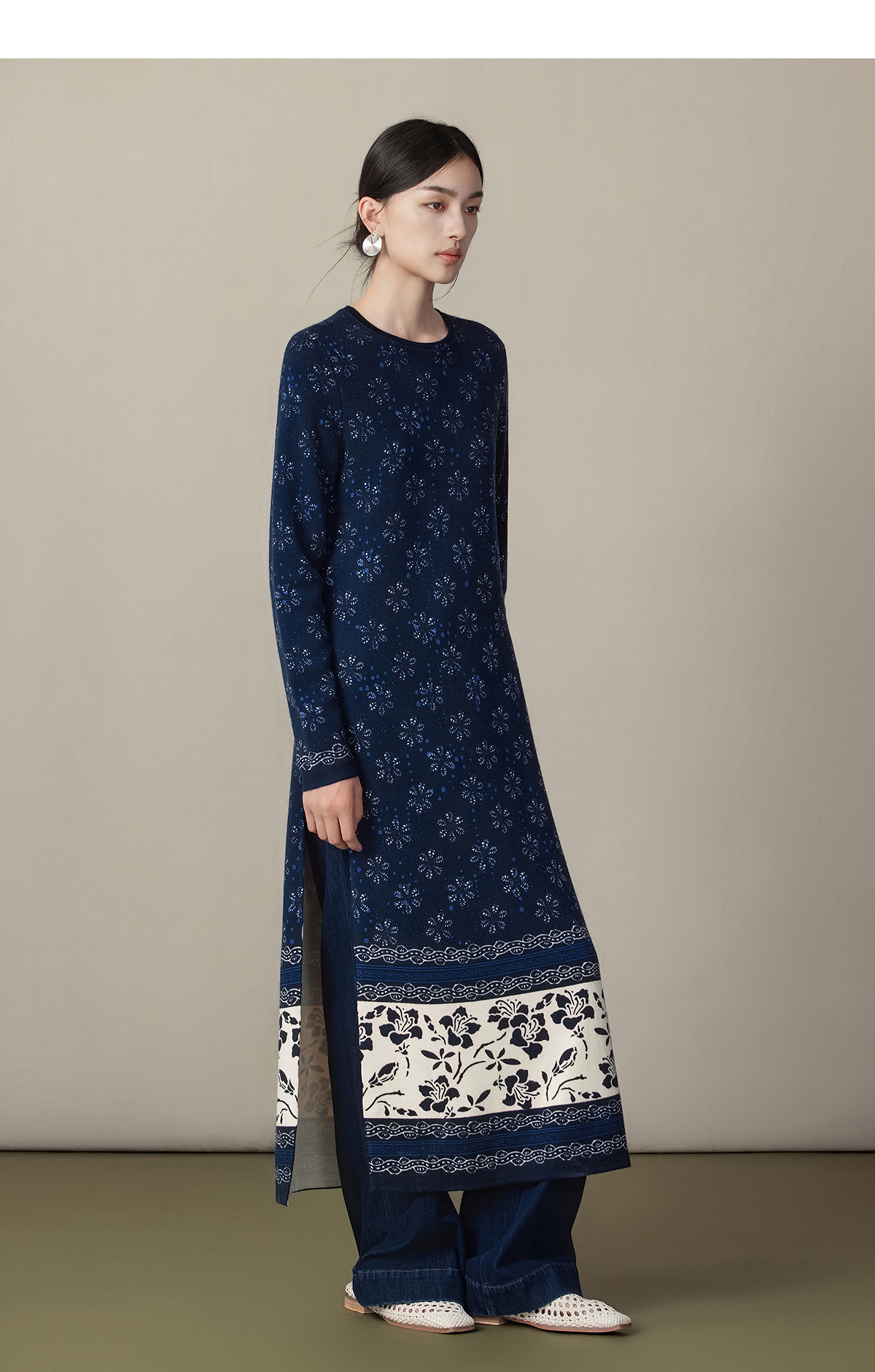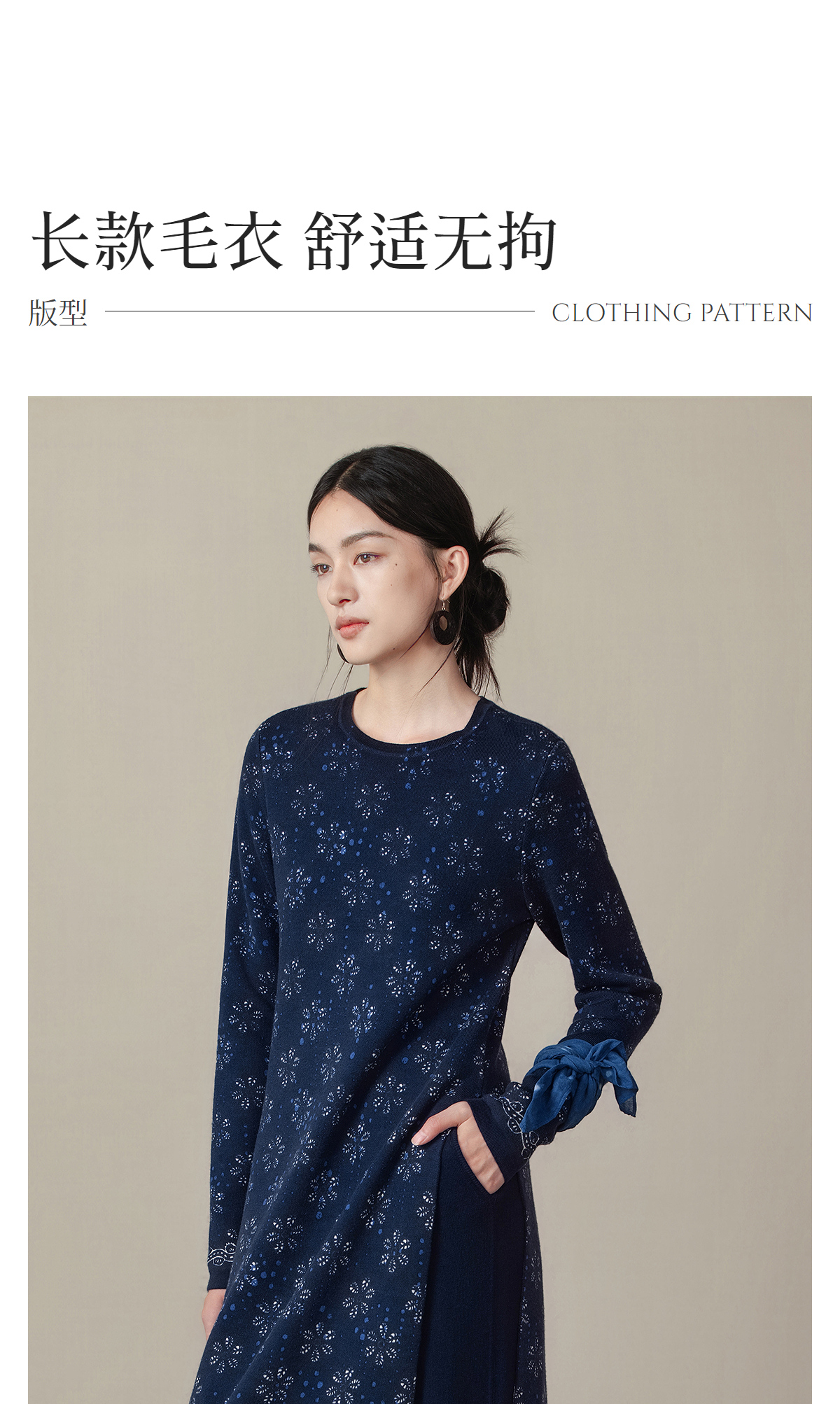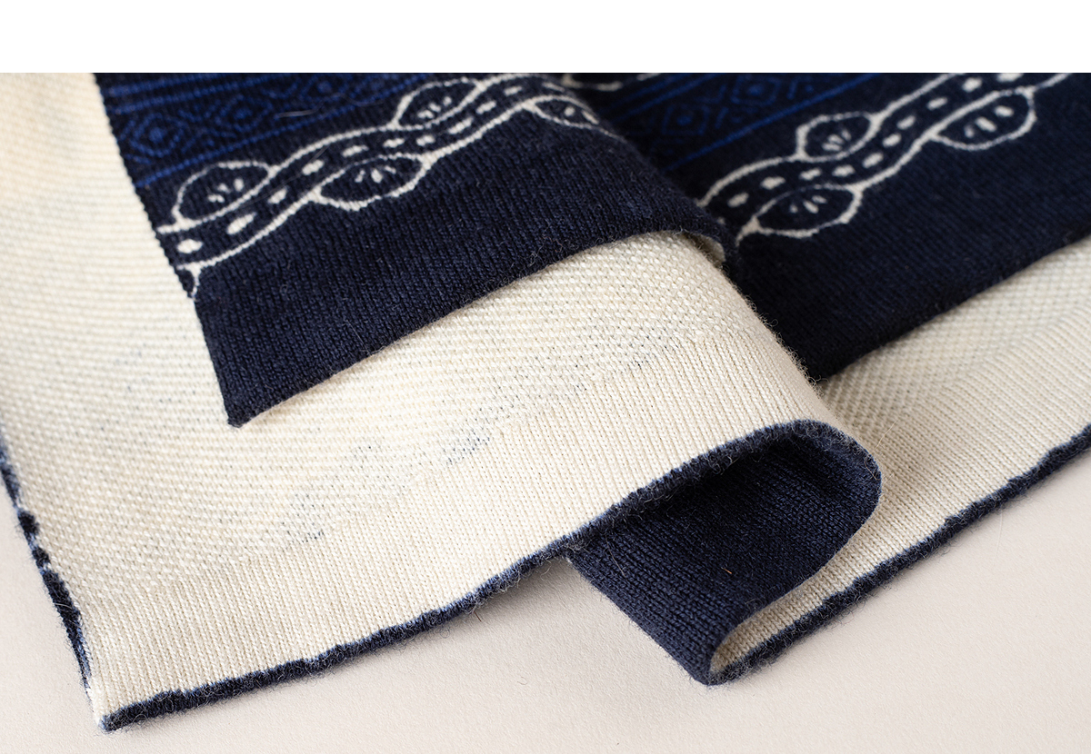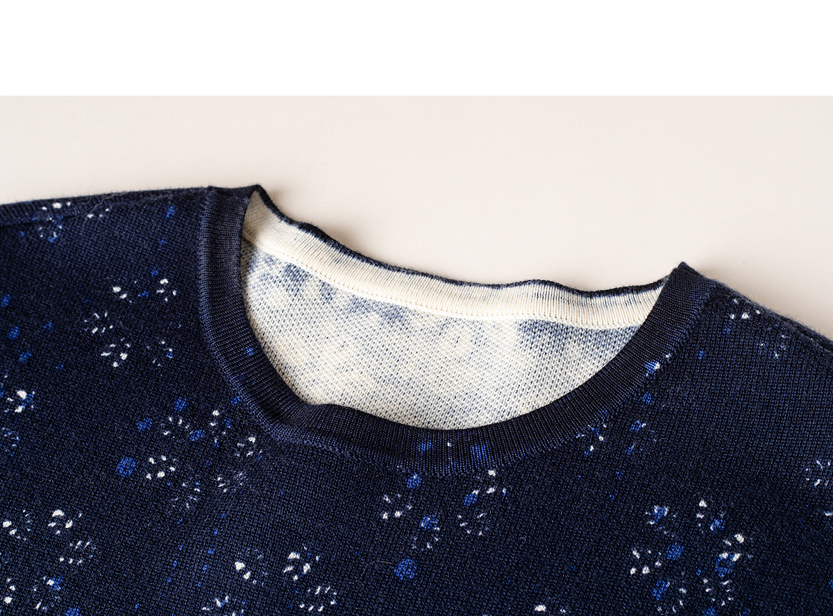 【林栖设计小店】(现货)美丽诺绵羊毛织上衣传统蓝印花纹宽松2025秋冬新款毛衣女1954018