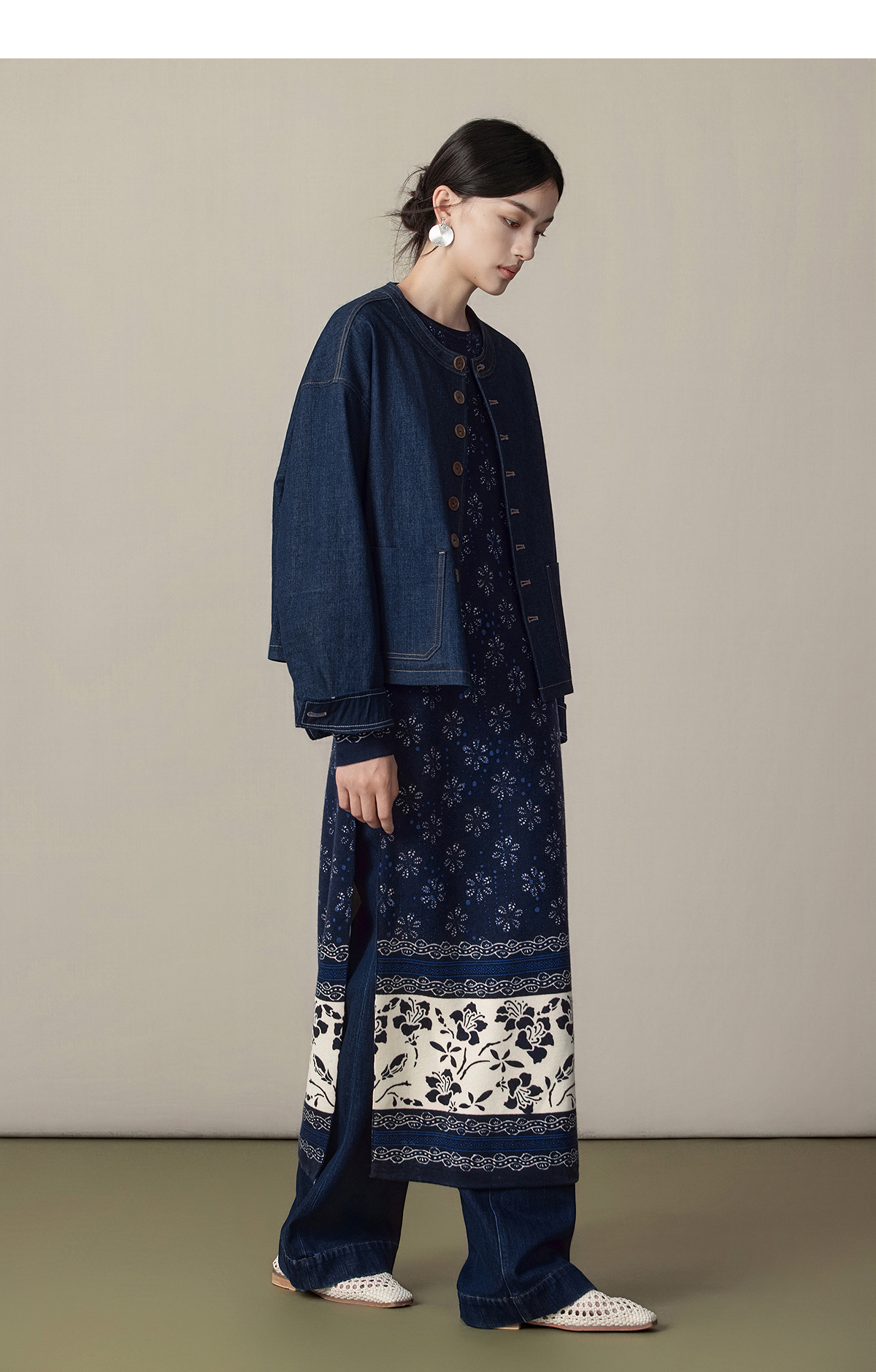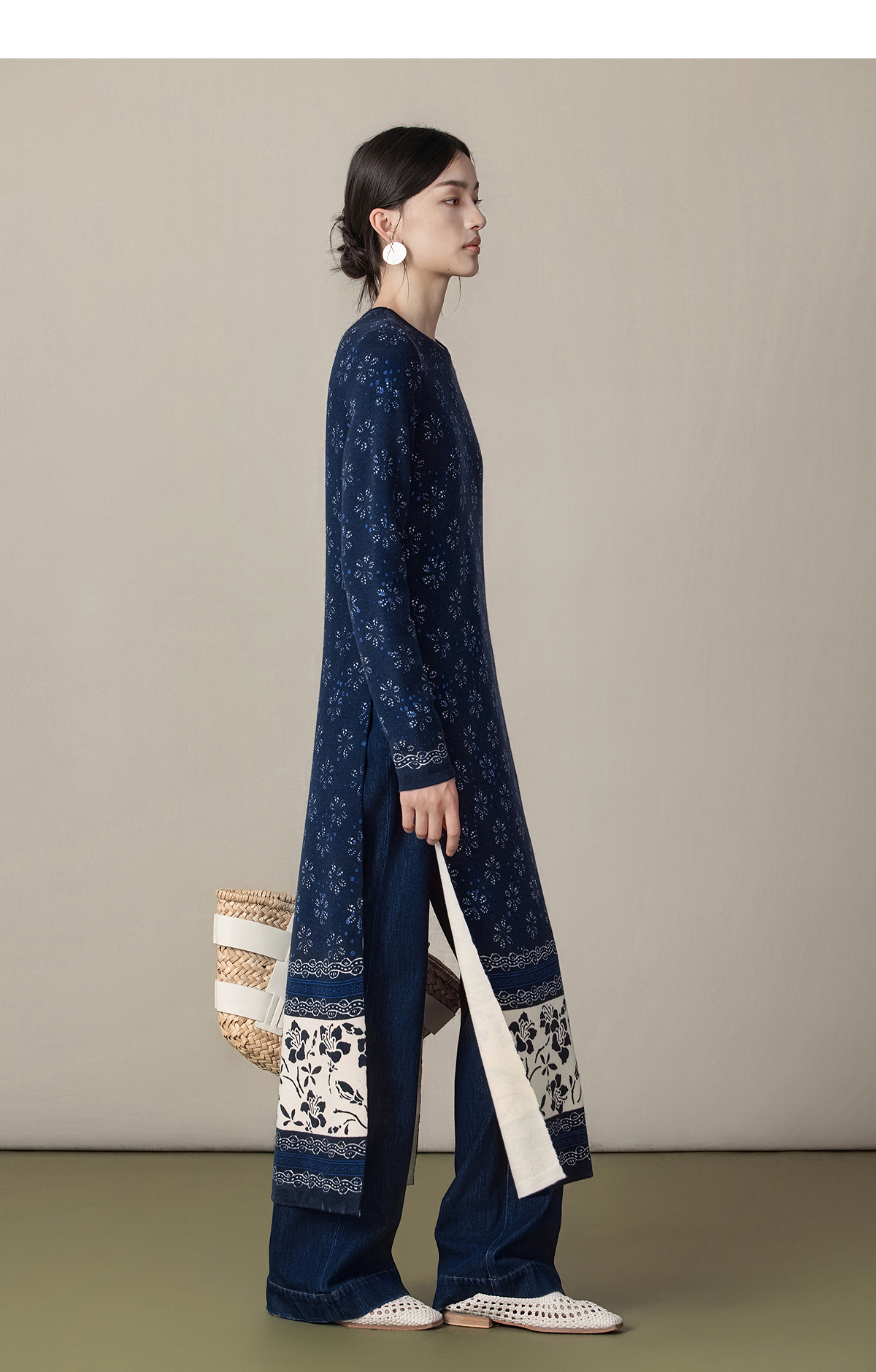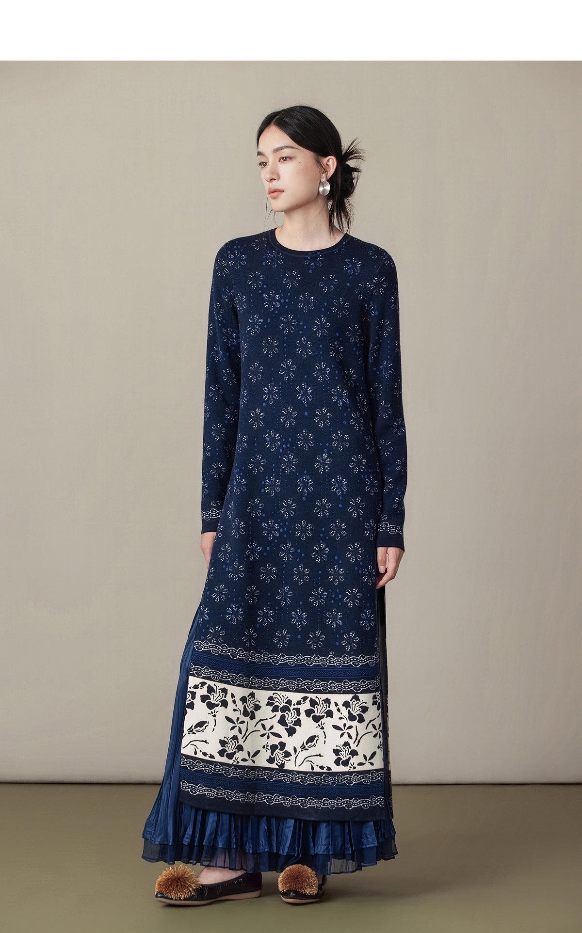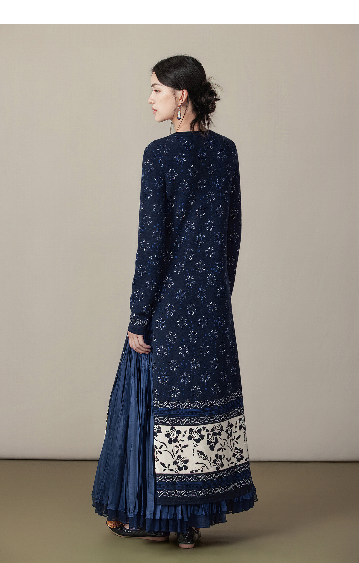 【林栖设计小店】(现货)美丽诺绵羊毛织上衣传统蓝印花纹宽松2025秋冬新款毛衣女1954018