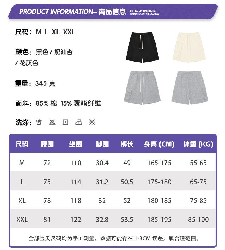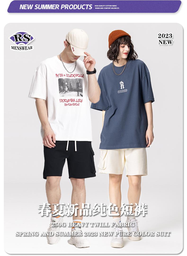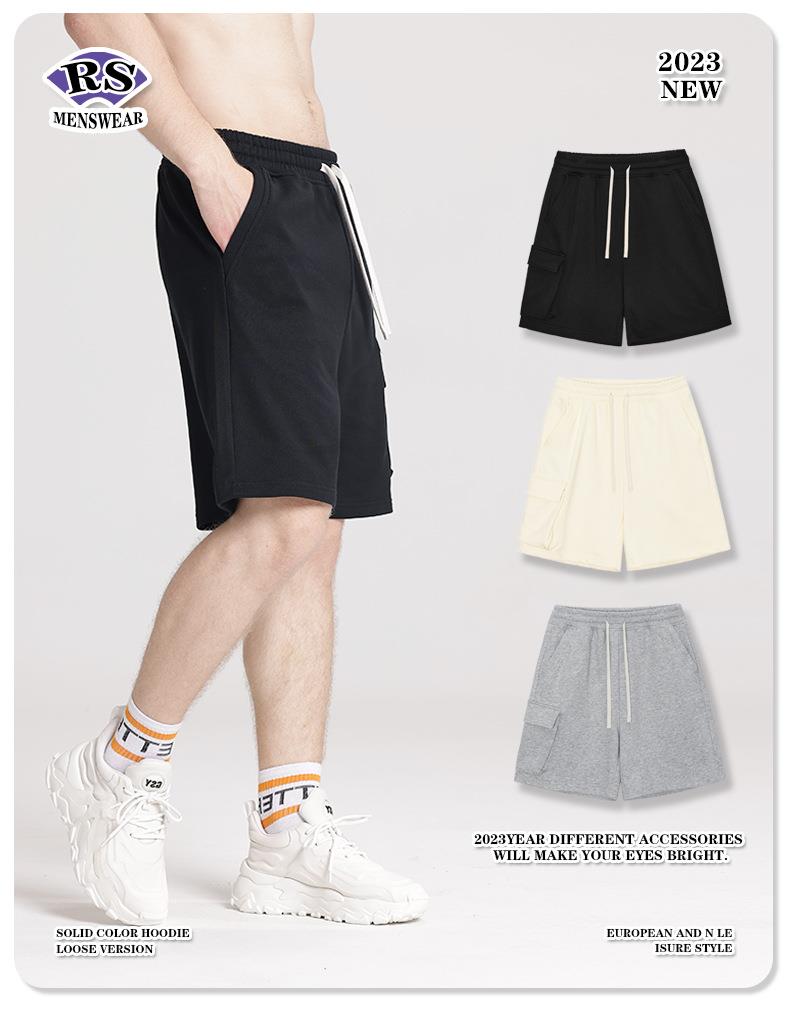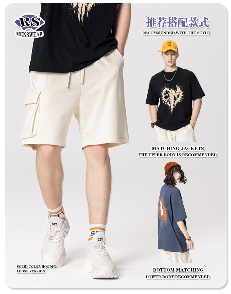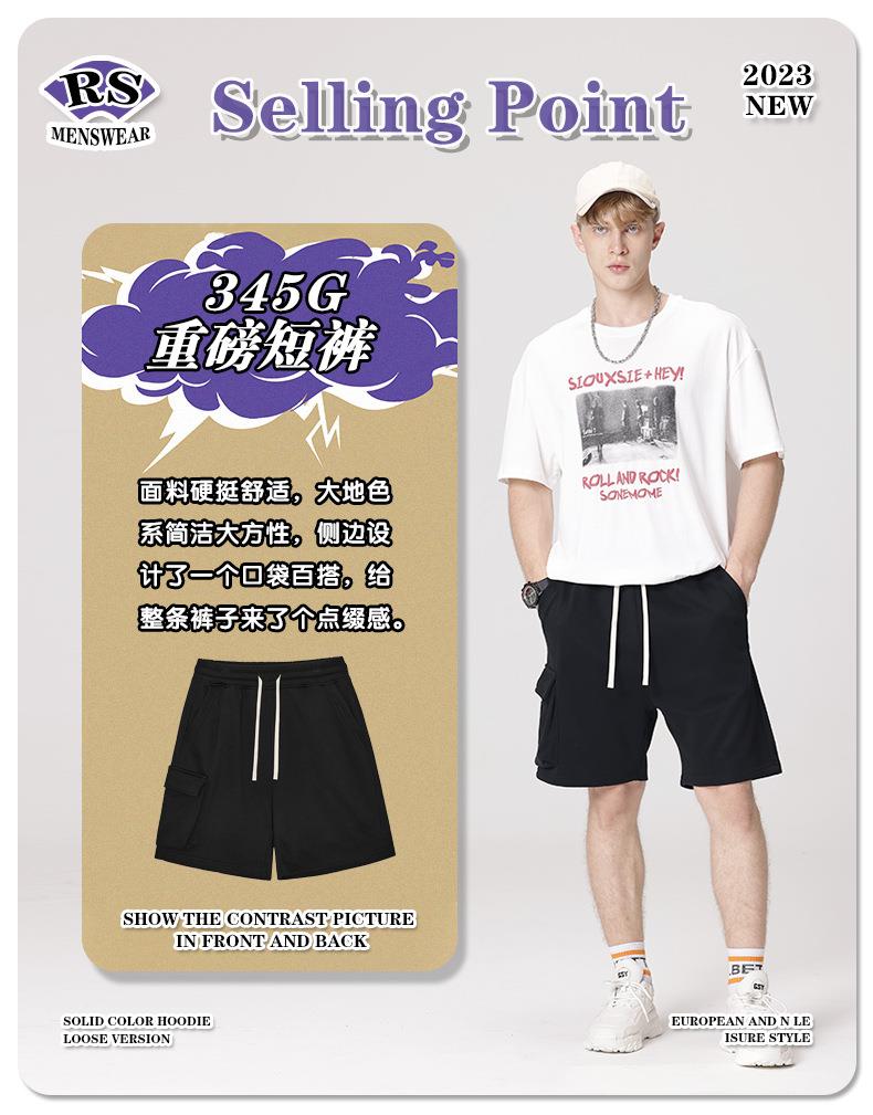 RS男装|2023夏季340G休闲短裤男运动宽松美式高街男生潮牌五分裤