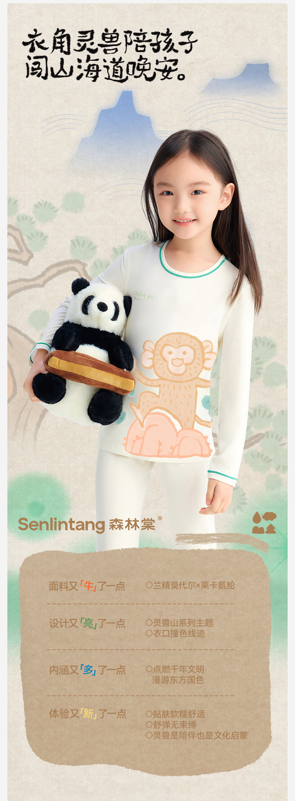 【儿童家居服套装】森林棠26春兰精莫代尔软滑透气小童印花睡衣套装23261217【HZ】 商品图3
