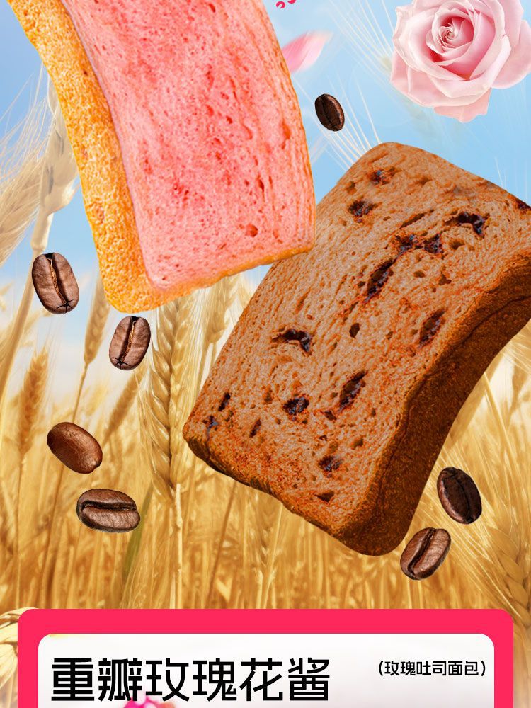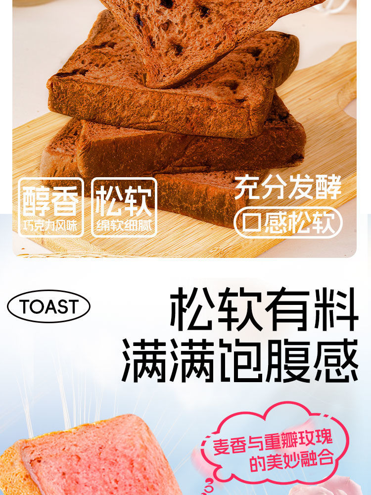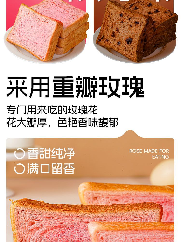 【“瑰”香味十足!厚切吐司面包】采用重瓣玫瑰,色艳香味馥郁!口口醇香绵软,松软有料 满满饱腹感!营养轻负担,手撕吐司切片超厚营养早餐糕点Y