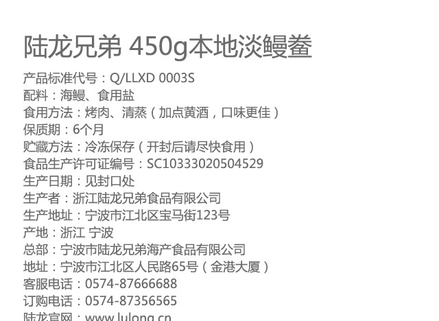 5449陆龙兄弟450g本地淡鳗鲞