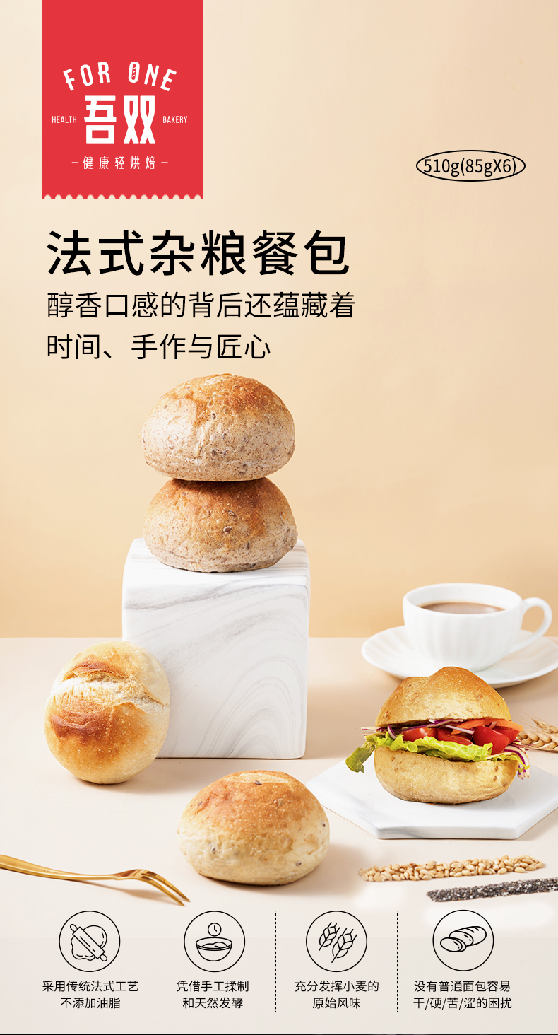 吾双黑麦谷物面包魔法海盐面包.510g欧包早餐面包手作餐包杂粮餐包