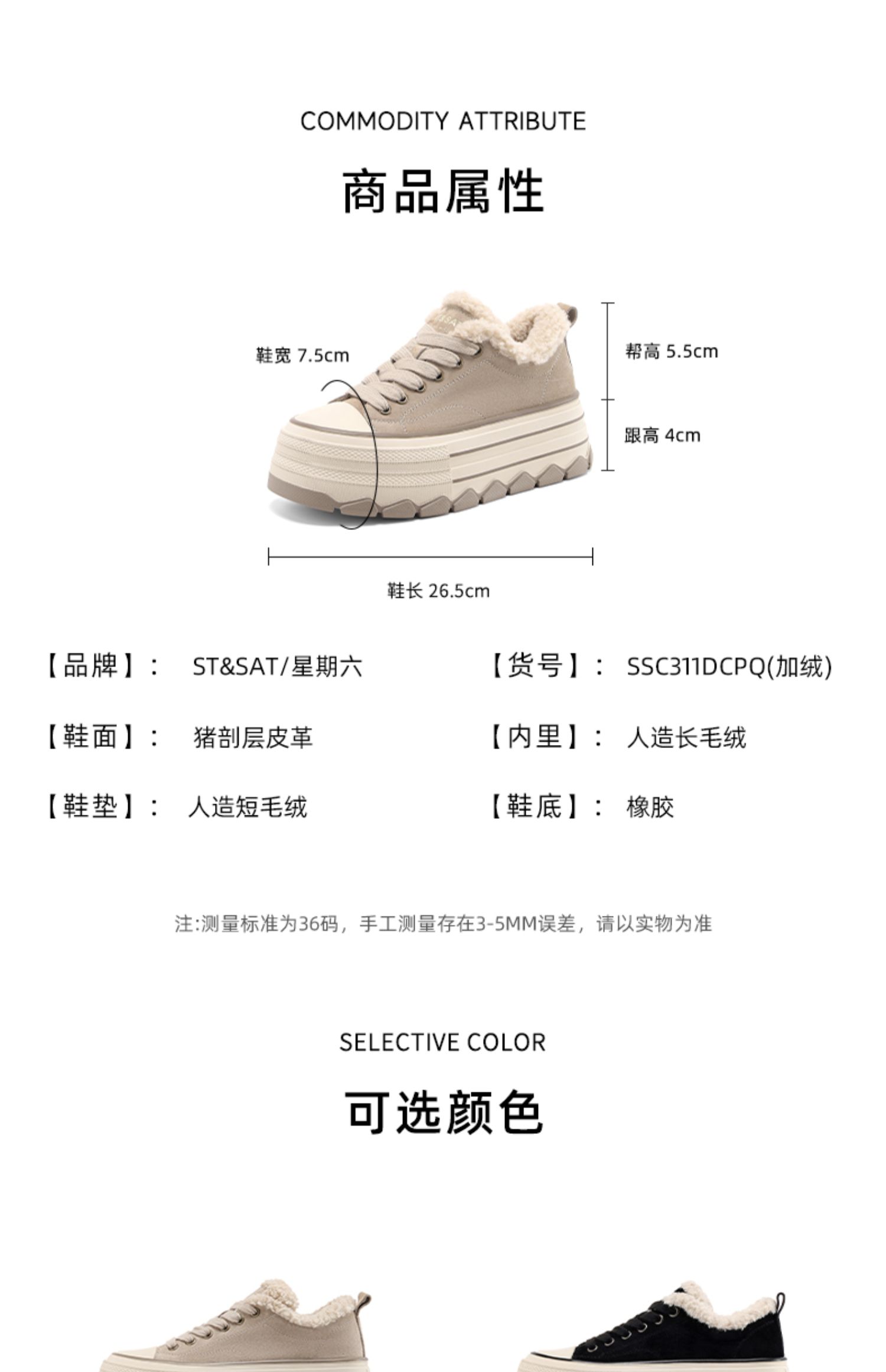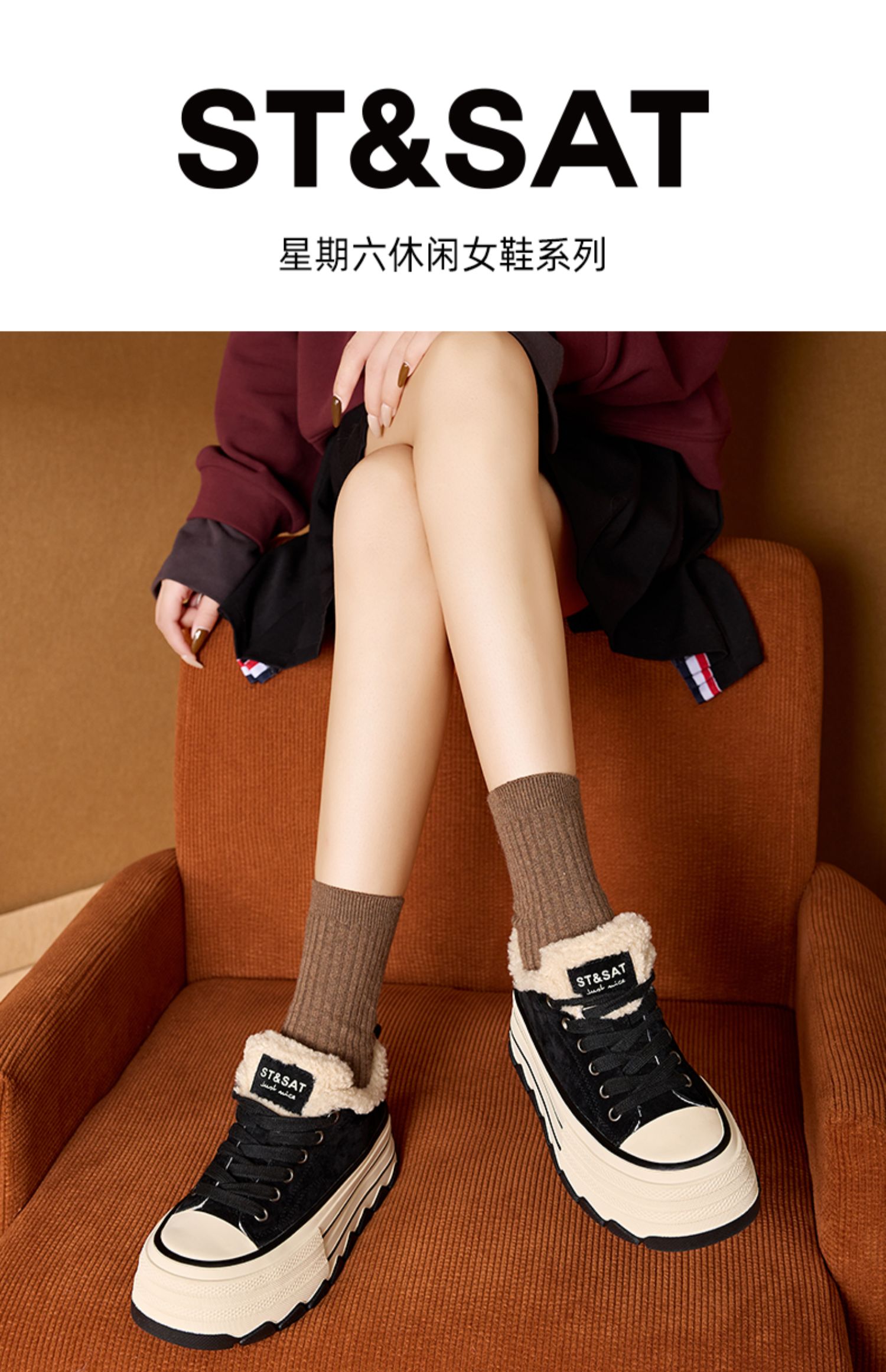 星期六休闲百搭加绒保暖松糕厚底帆布鞋SSC311DCPQ