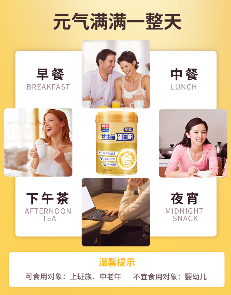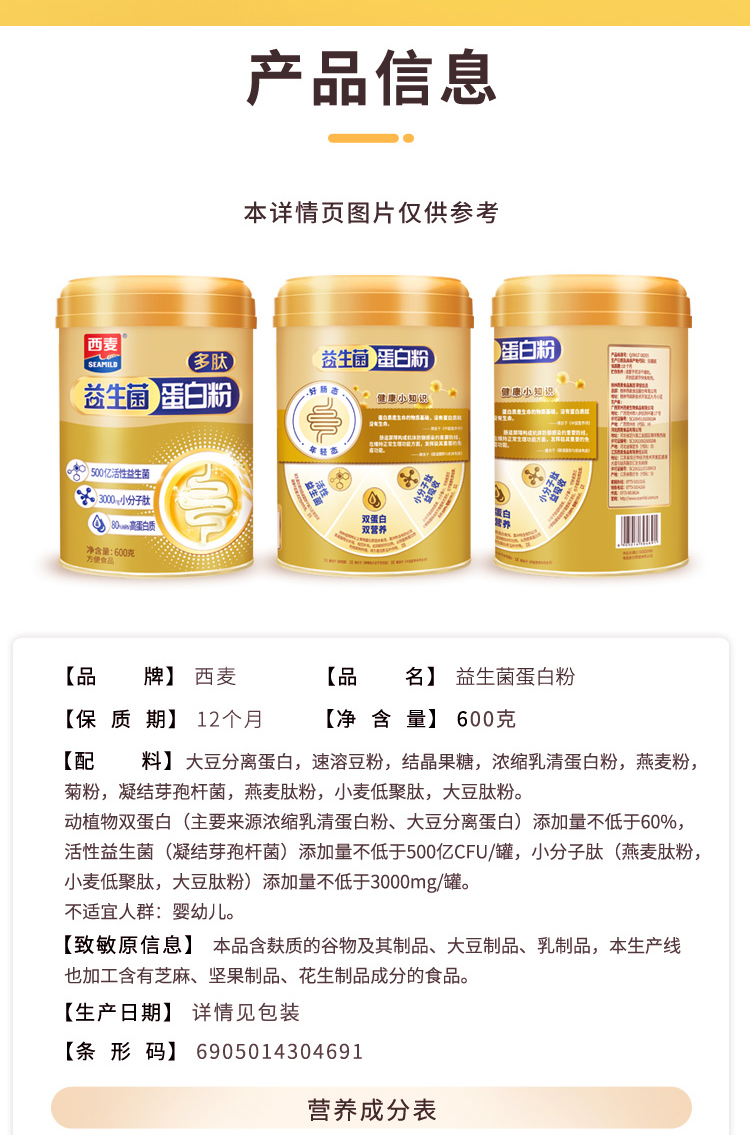 益生菌蛋白粉600g独立小罐三重吸收500亿活性菌+双蛋白+小分子肽家庭健康装