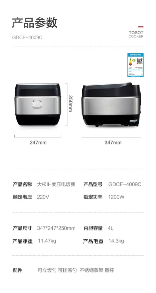 【预售】格力·大松·IH电饭煲 百香煲GDCF-4009C (黑+银)