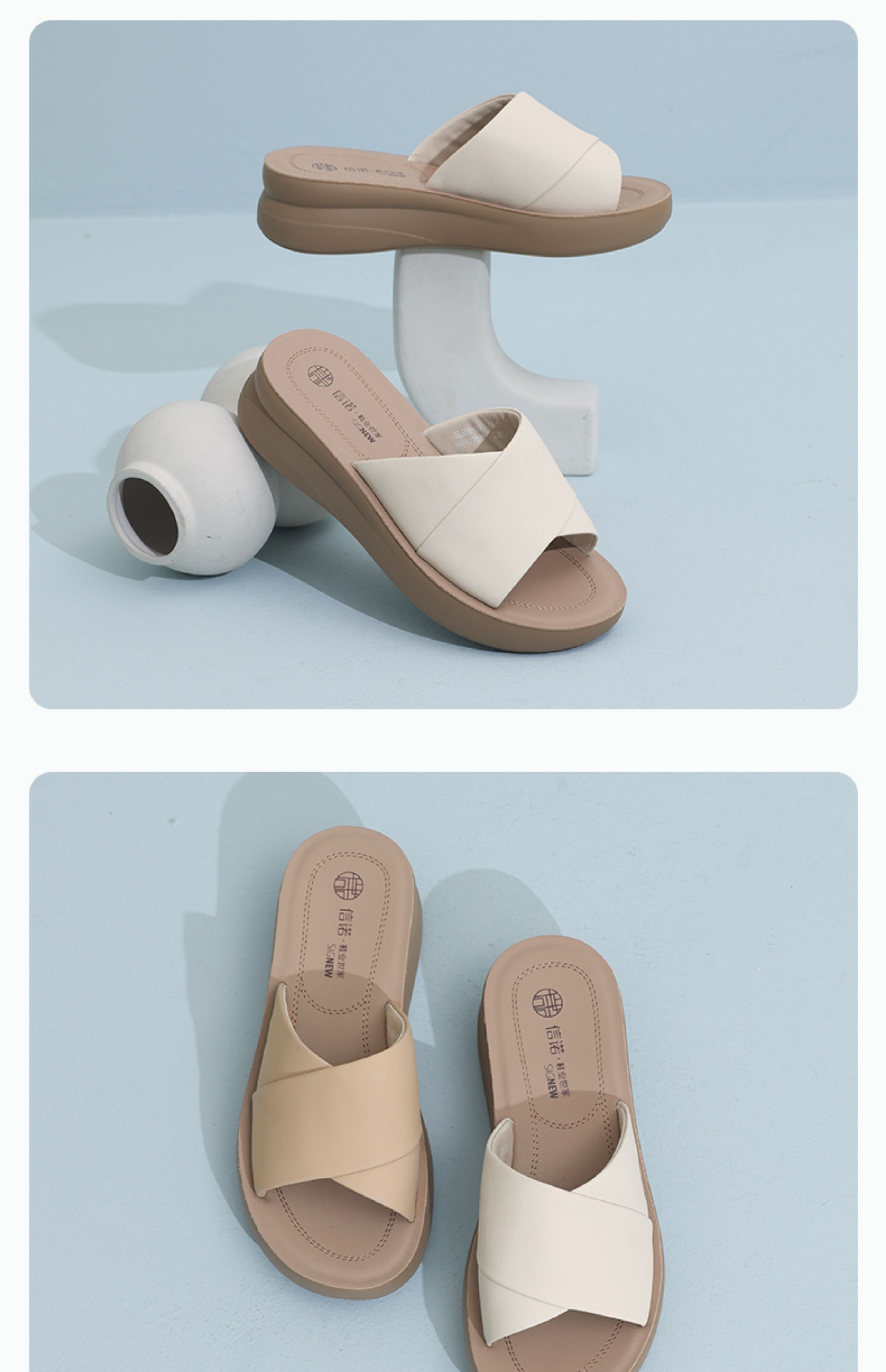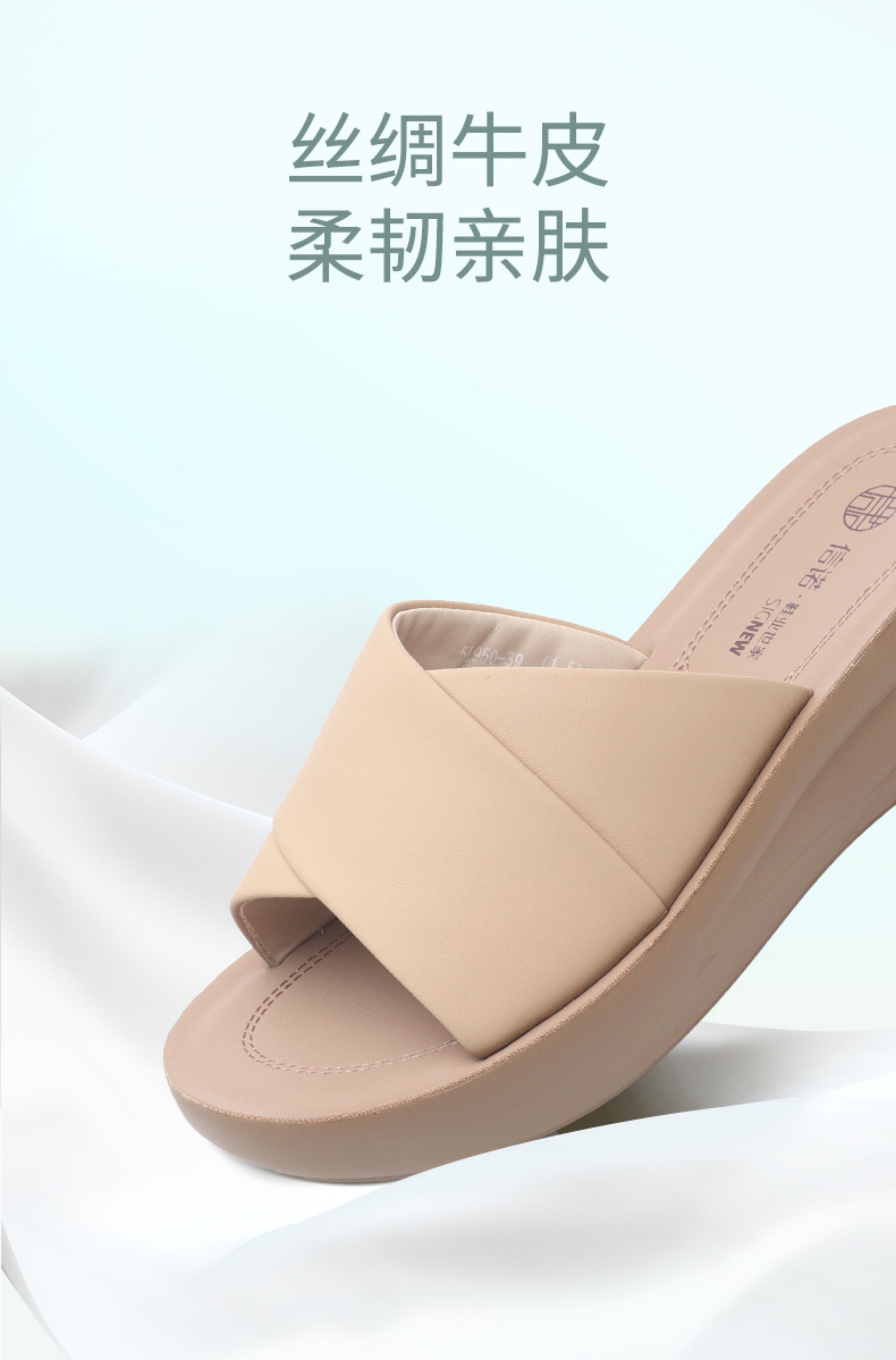 妈妈拖鞋女2025新款夏季真皮外穿时尚百搭中年厚底休闲一字拖5L950-39