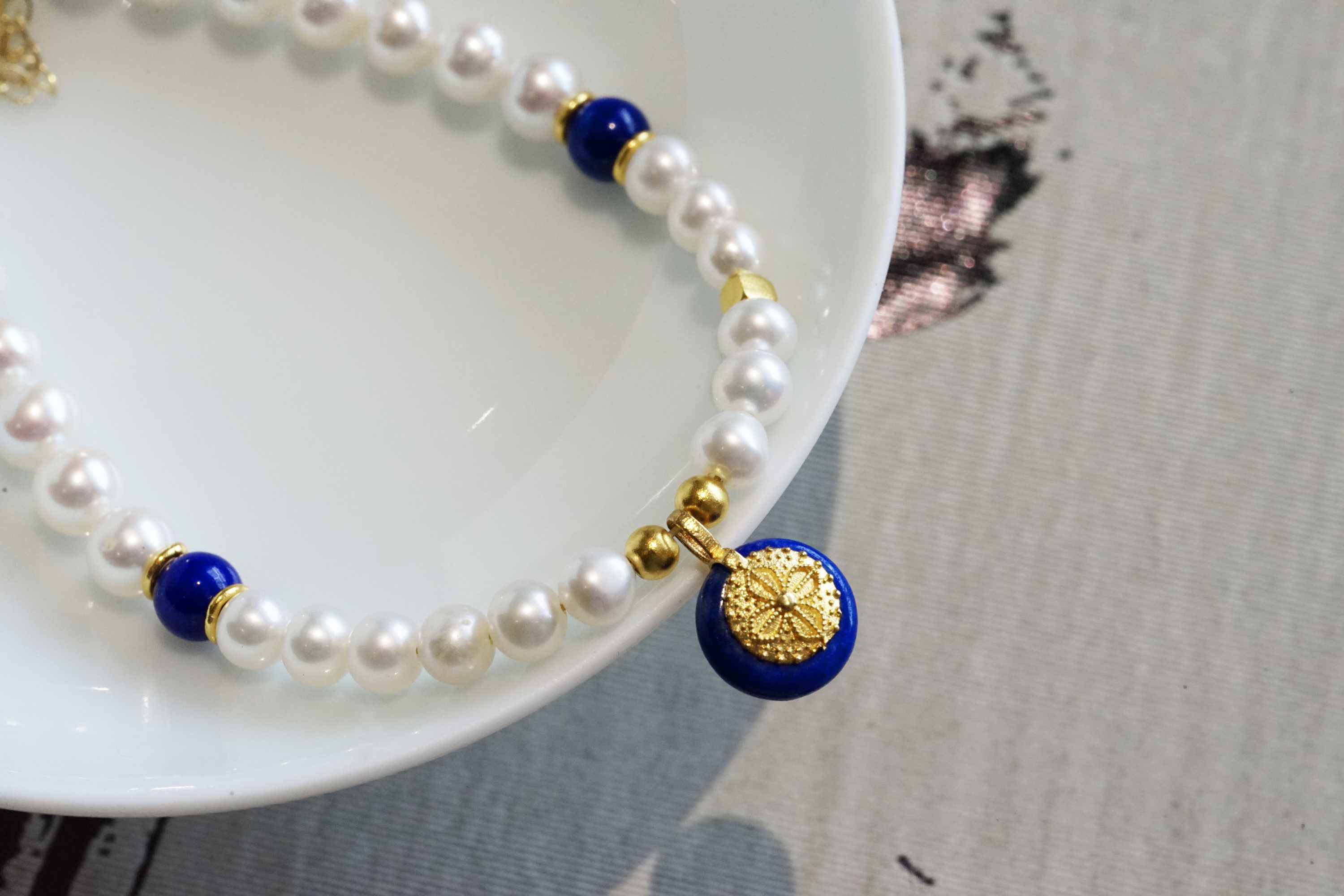 18K+足金珍珠青金石手链 特价