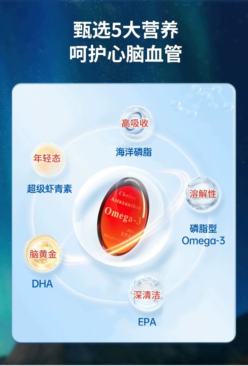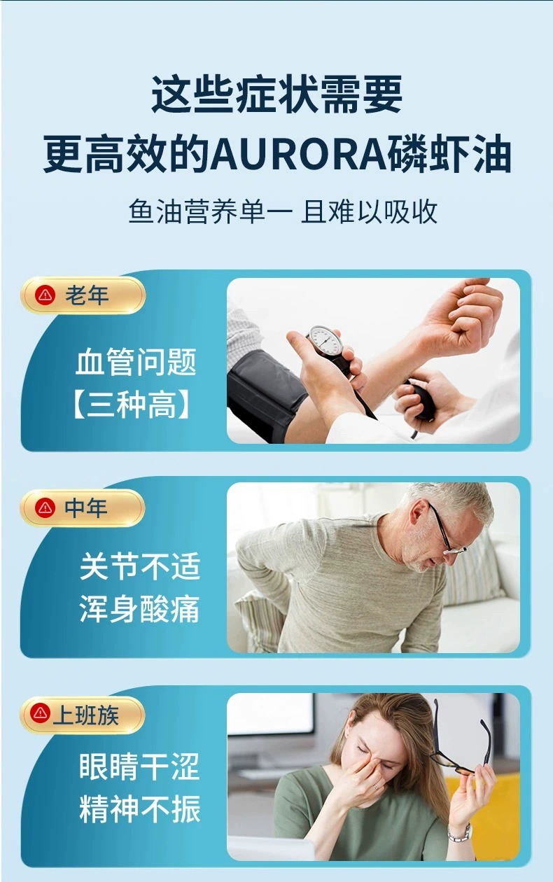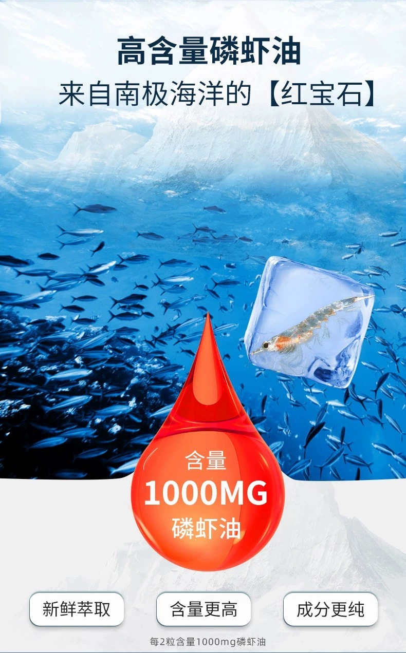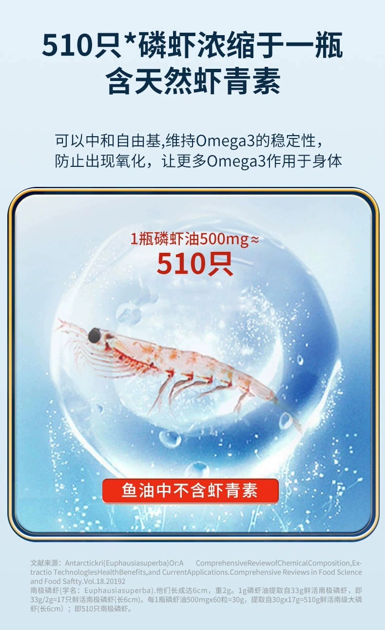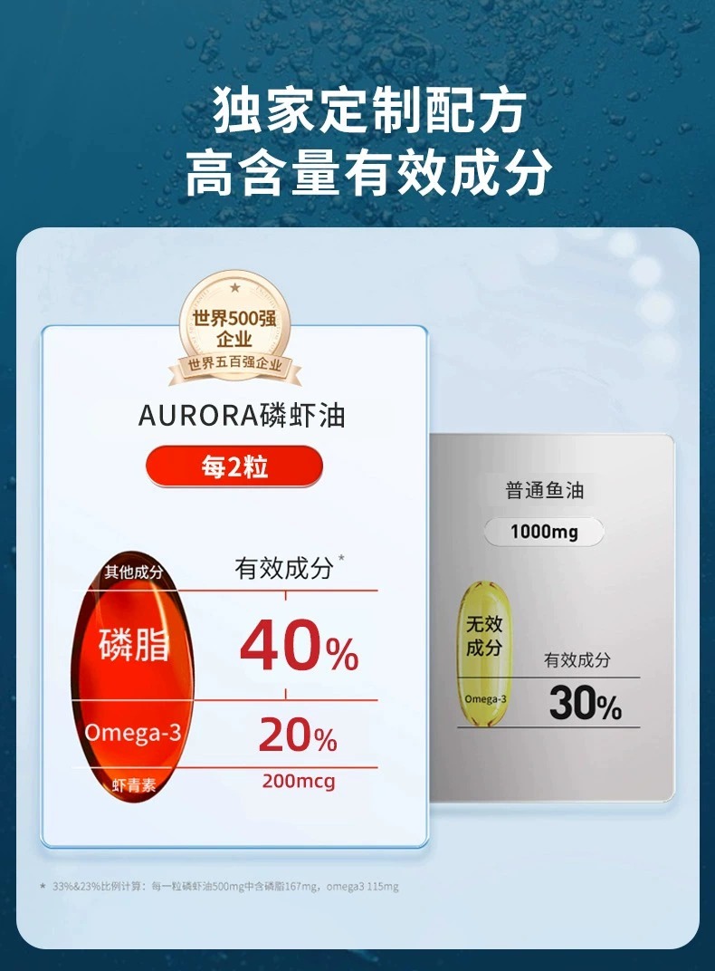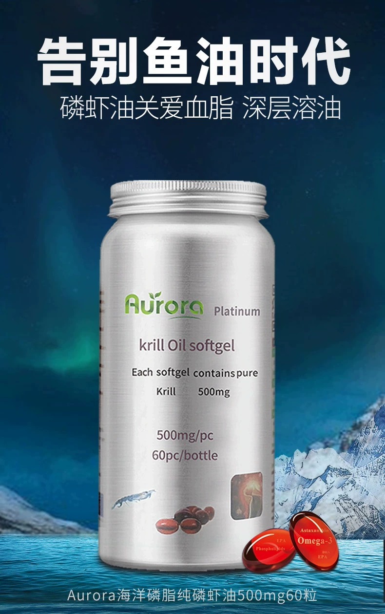 Aurora挪威进口纯南极磷虾油40%高含量磷脂鱼油60粒升级Omega-3