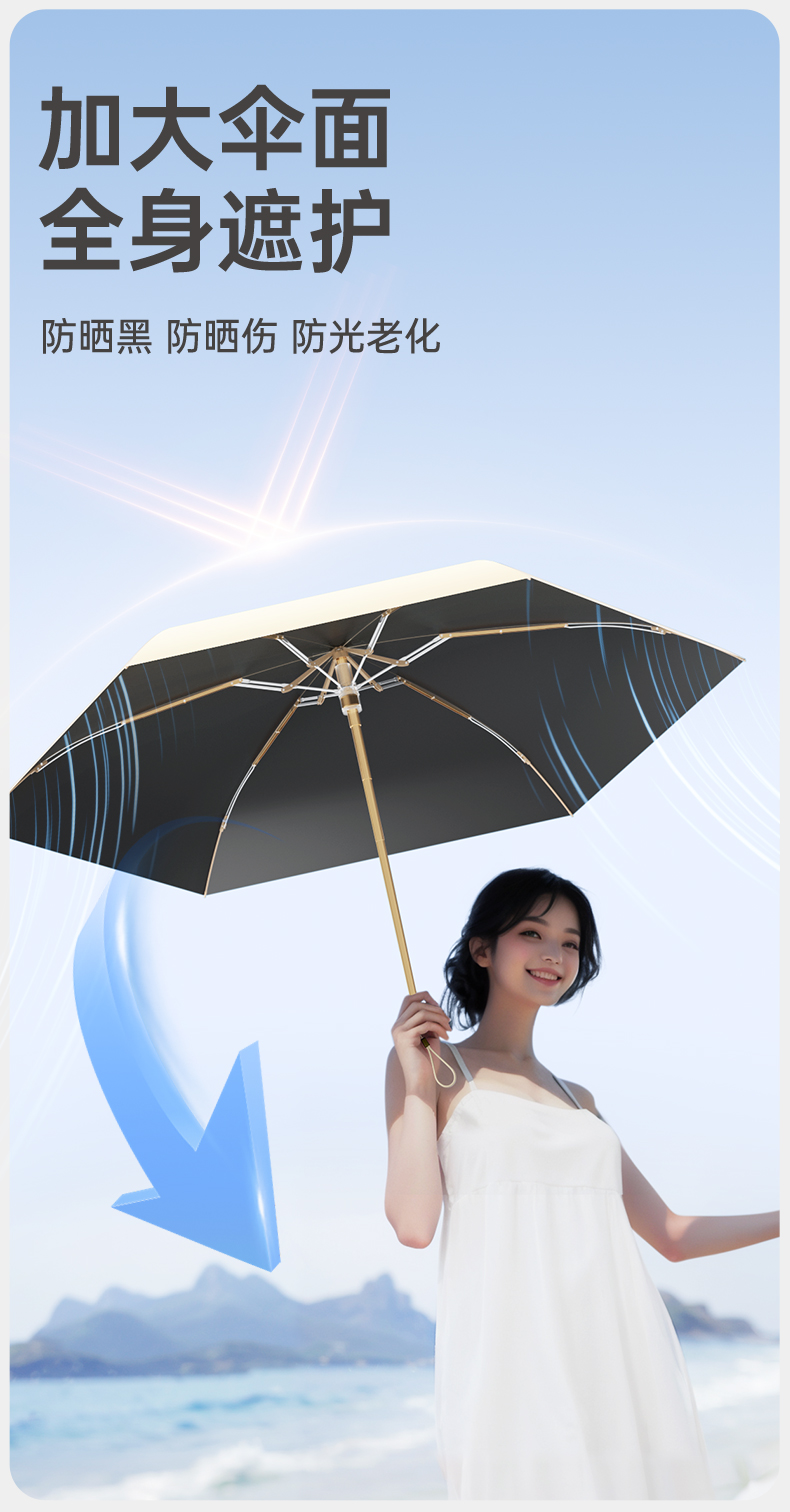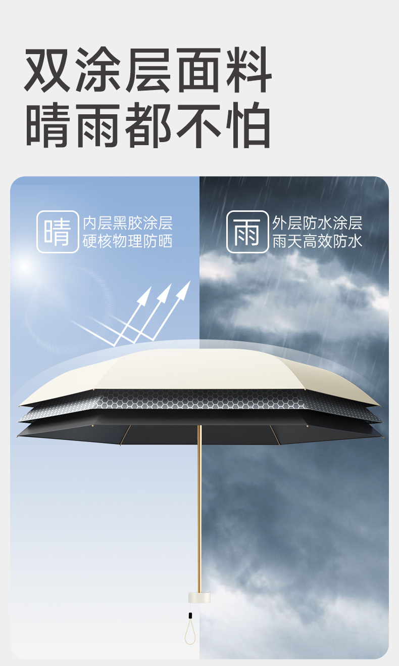 ZUODU左都 瓜瓜全自动三折 节节收防爆冲 8骨复合黑胶 晴雨两用伞