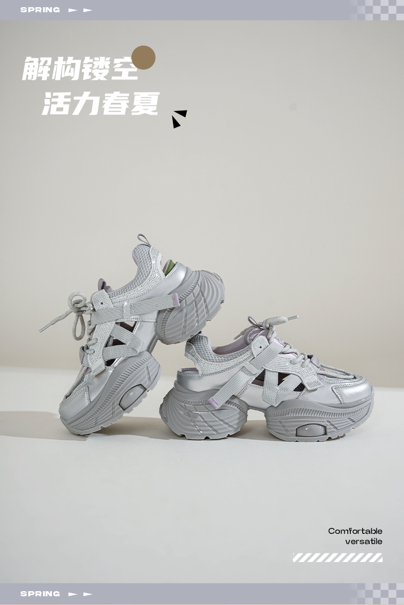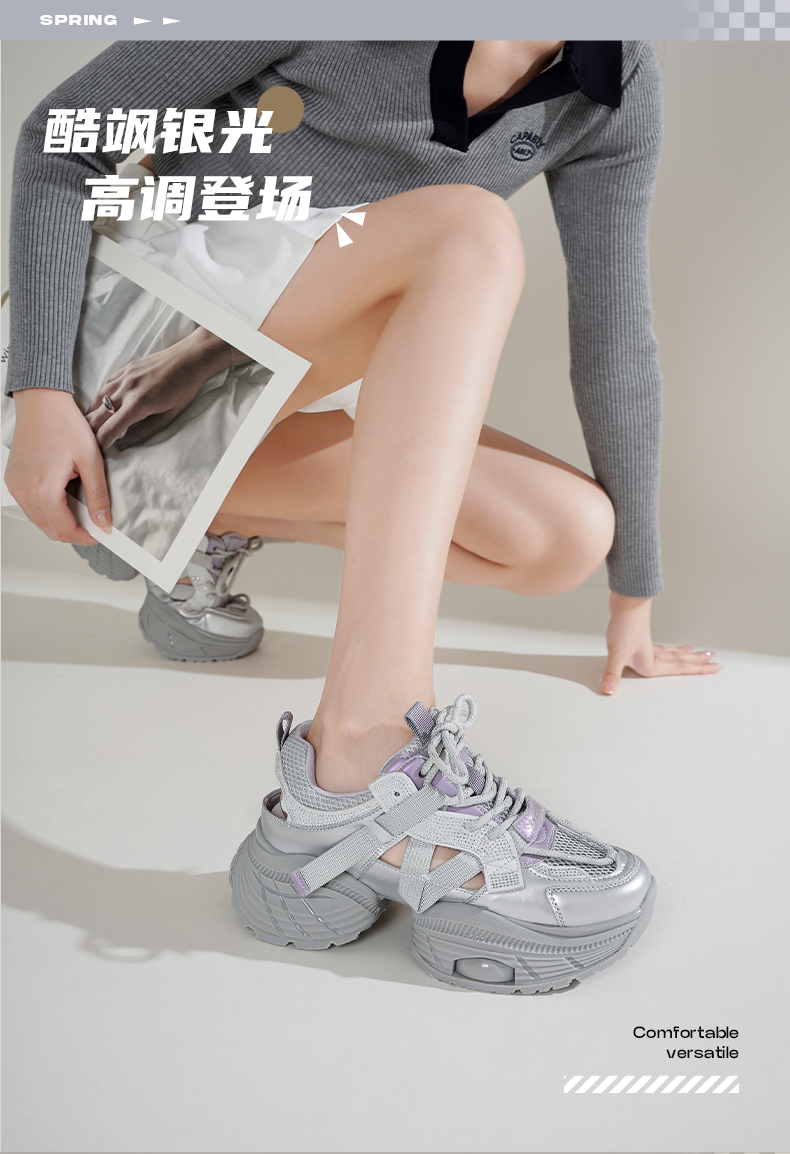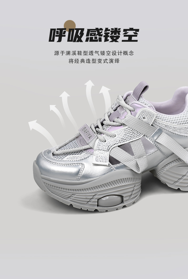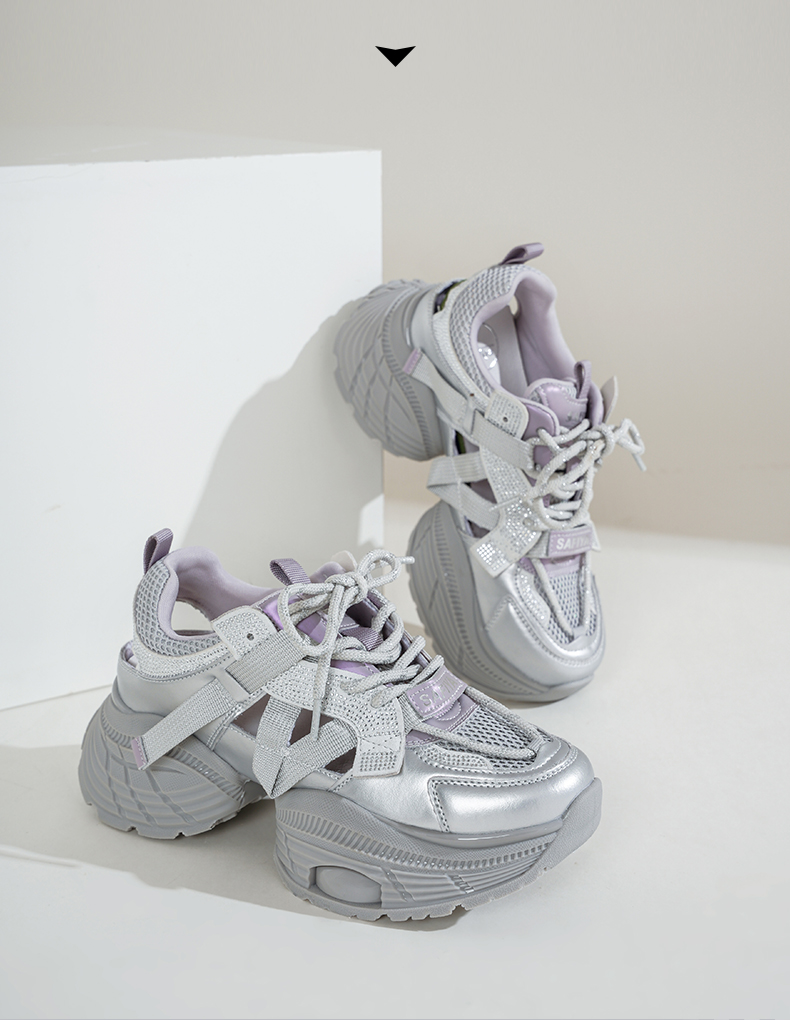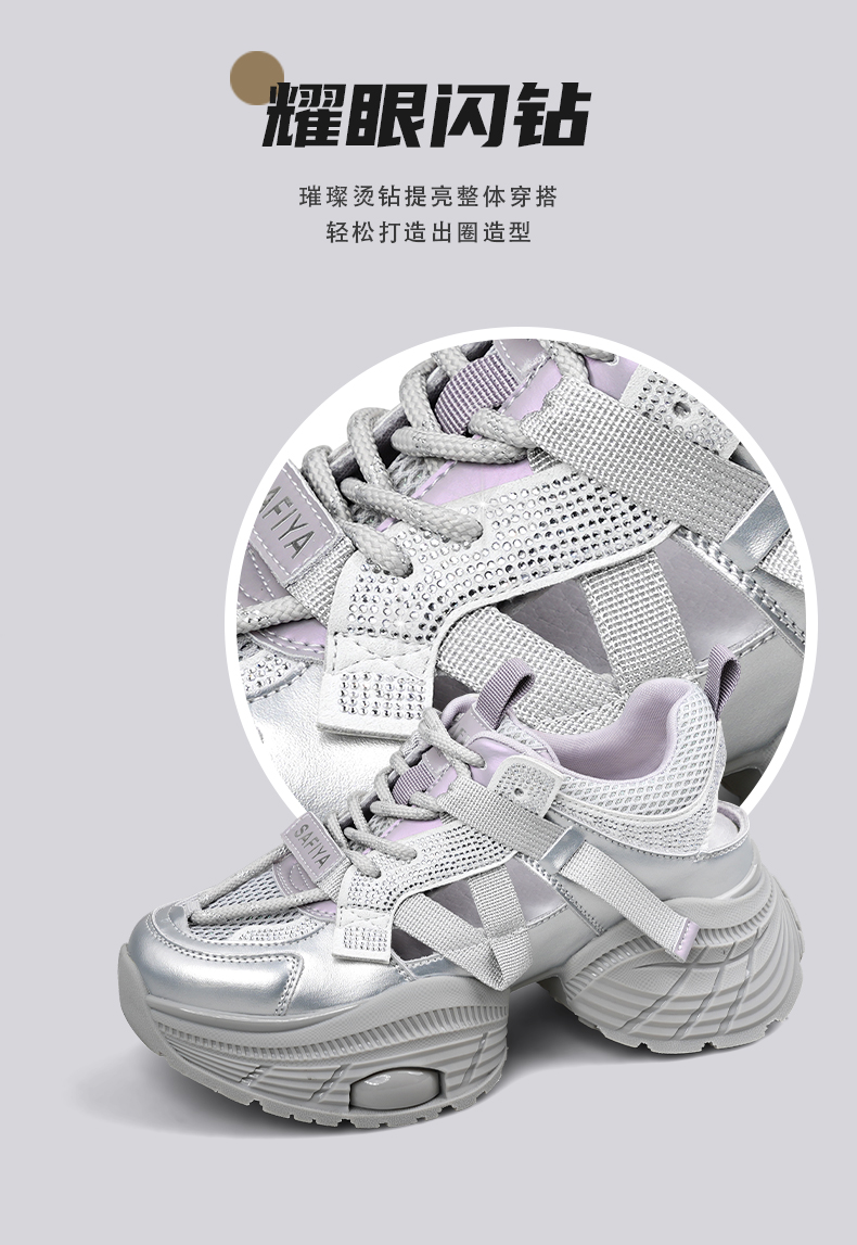 Safiya/索菲娅2025潮流厚底网面镂空烫钻增高休闲运动老爹鞋 SFD1112363