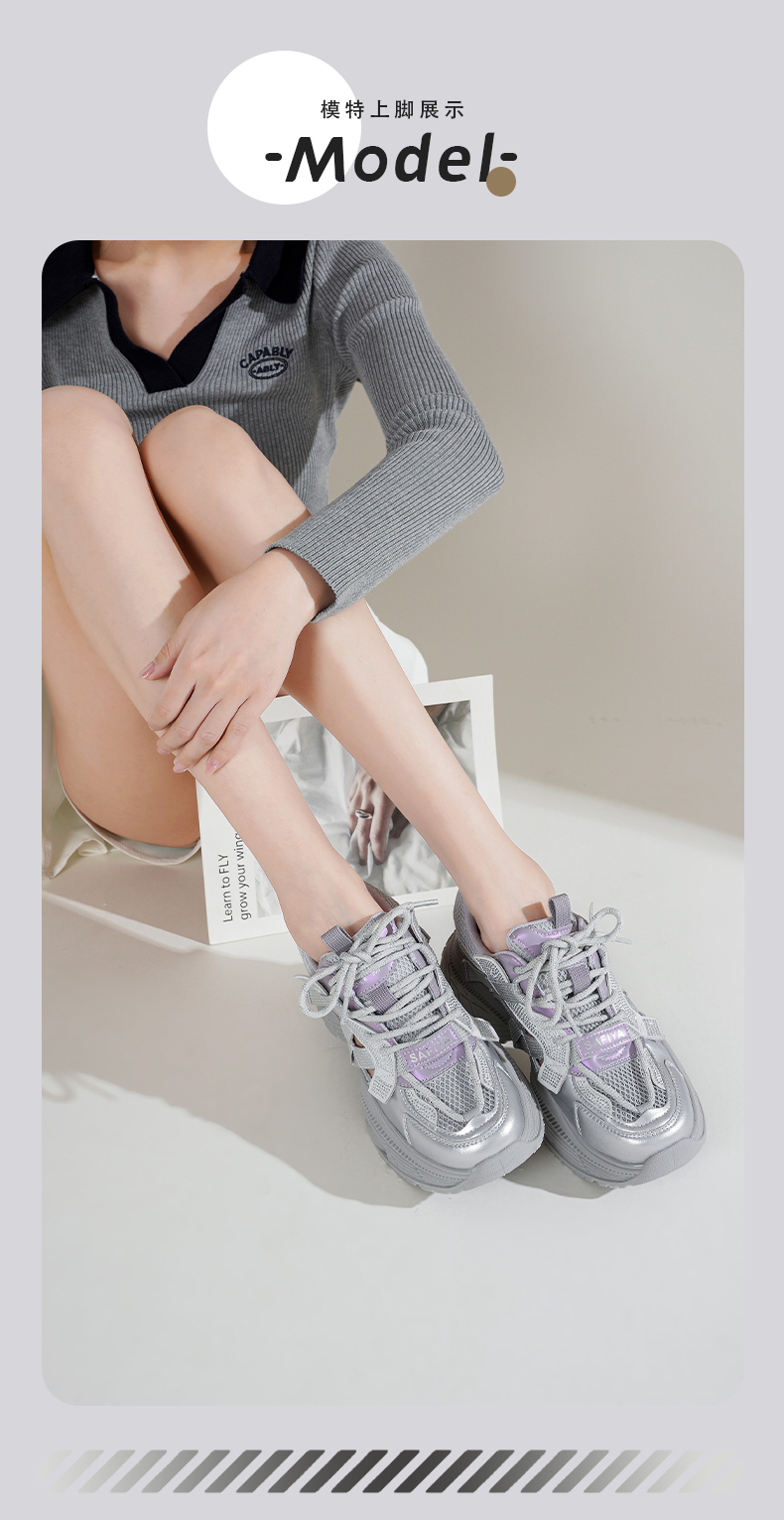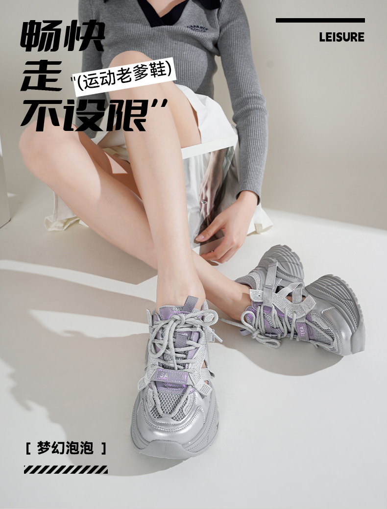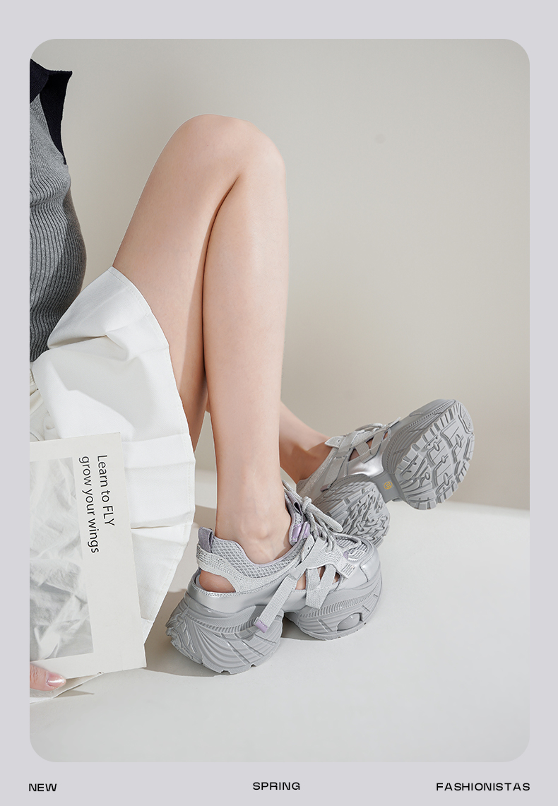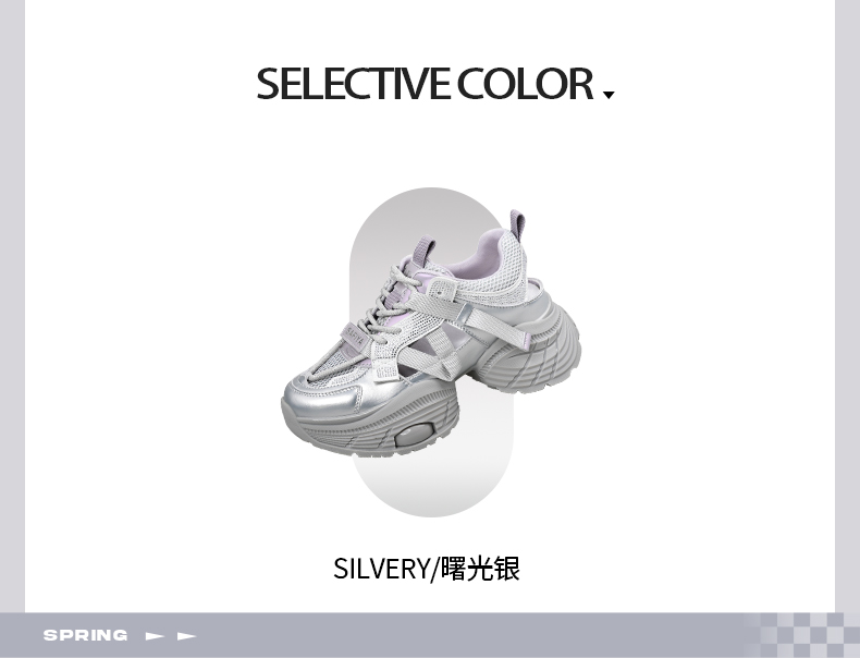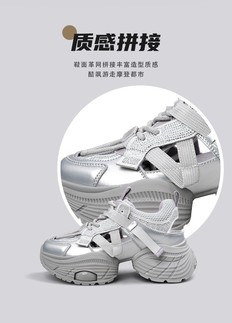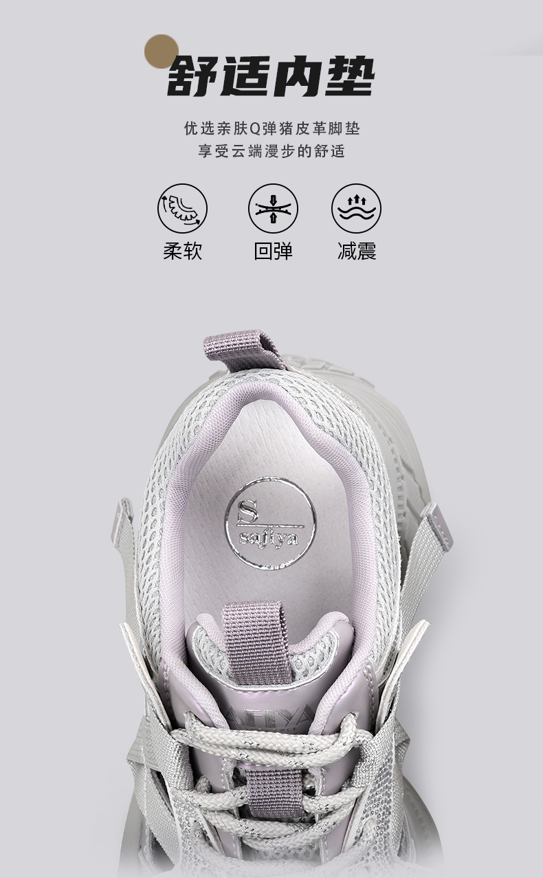 Safiya/索菲娅2025潮流厚底网面镂空烫钻增高休闲运动老爹鞋 SFD1112363
