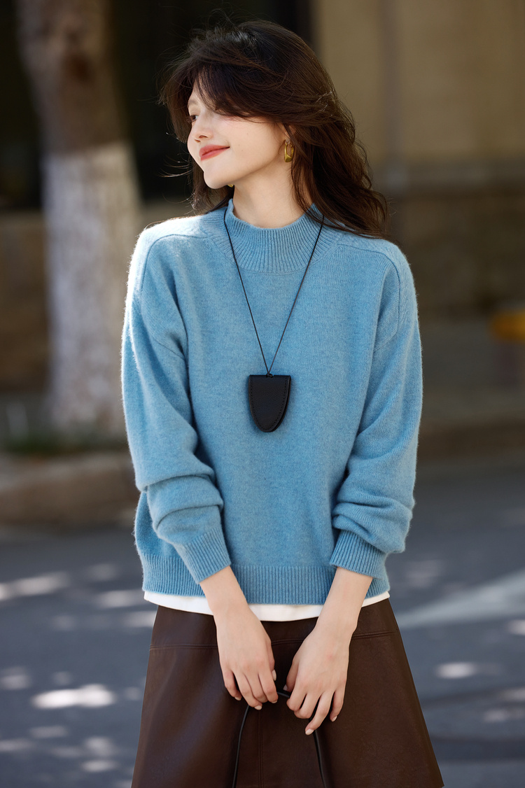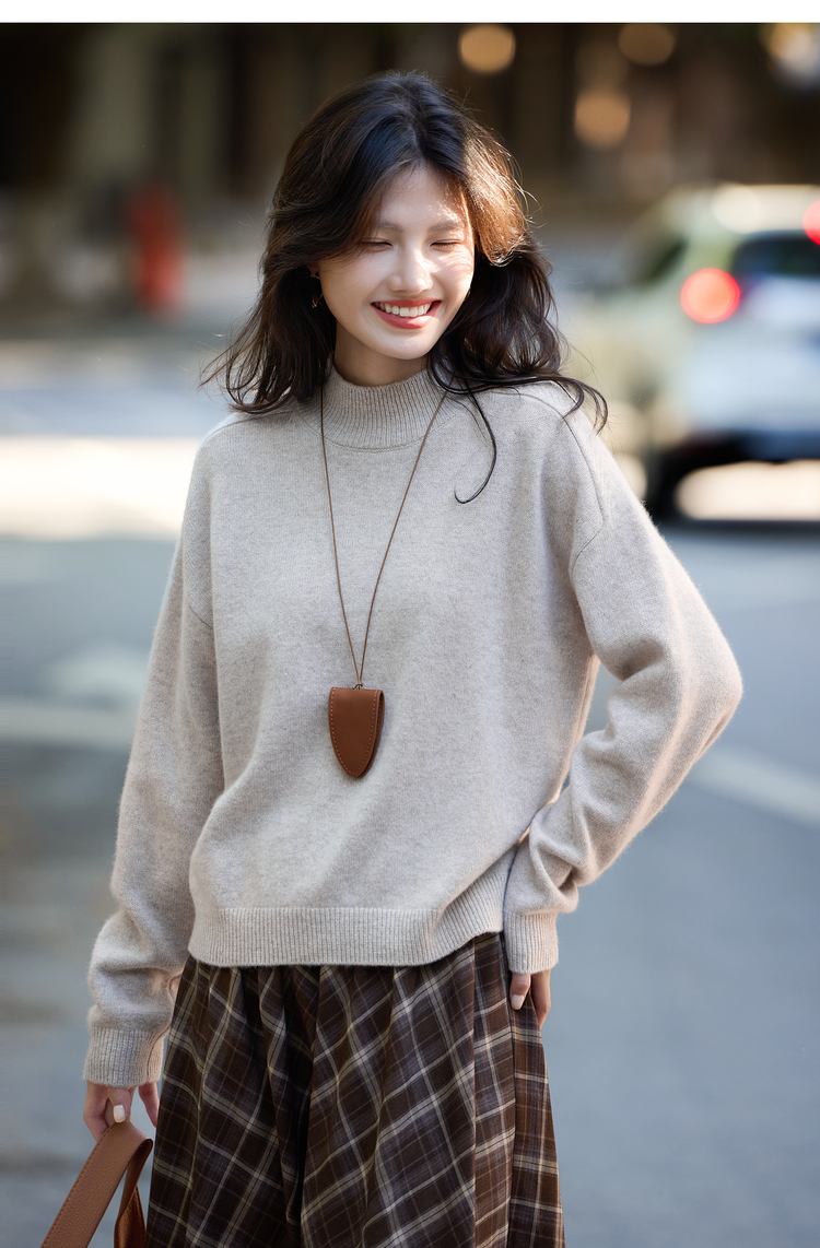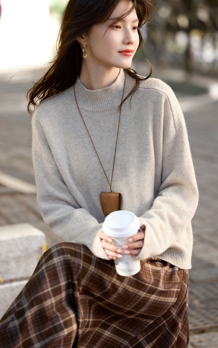 【年货节】熙世界阿拉善100.%绵羊毛衫女2025秋冬新款半高领针织毛衣打底衫