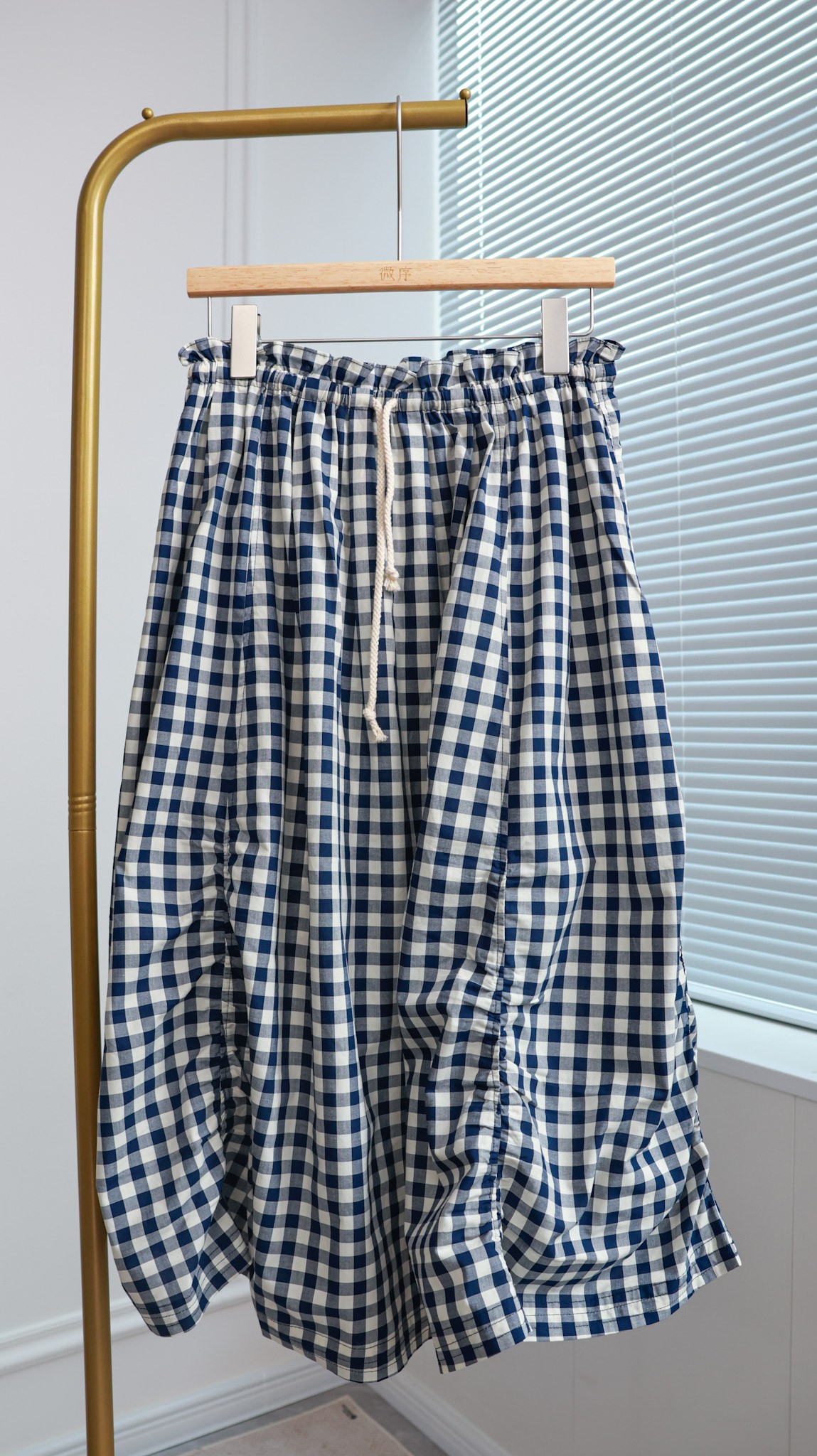 定格时光|不规则抽褶格纹花苞裙