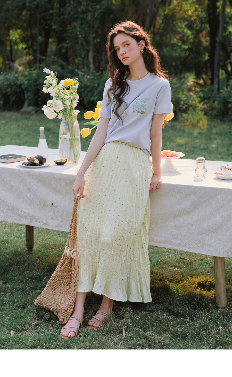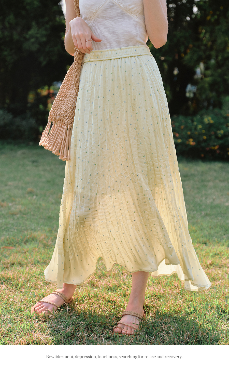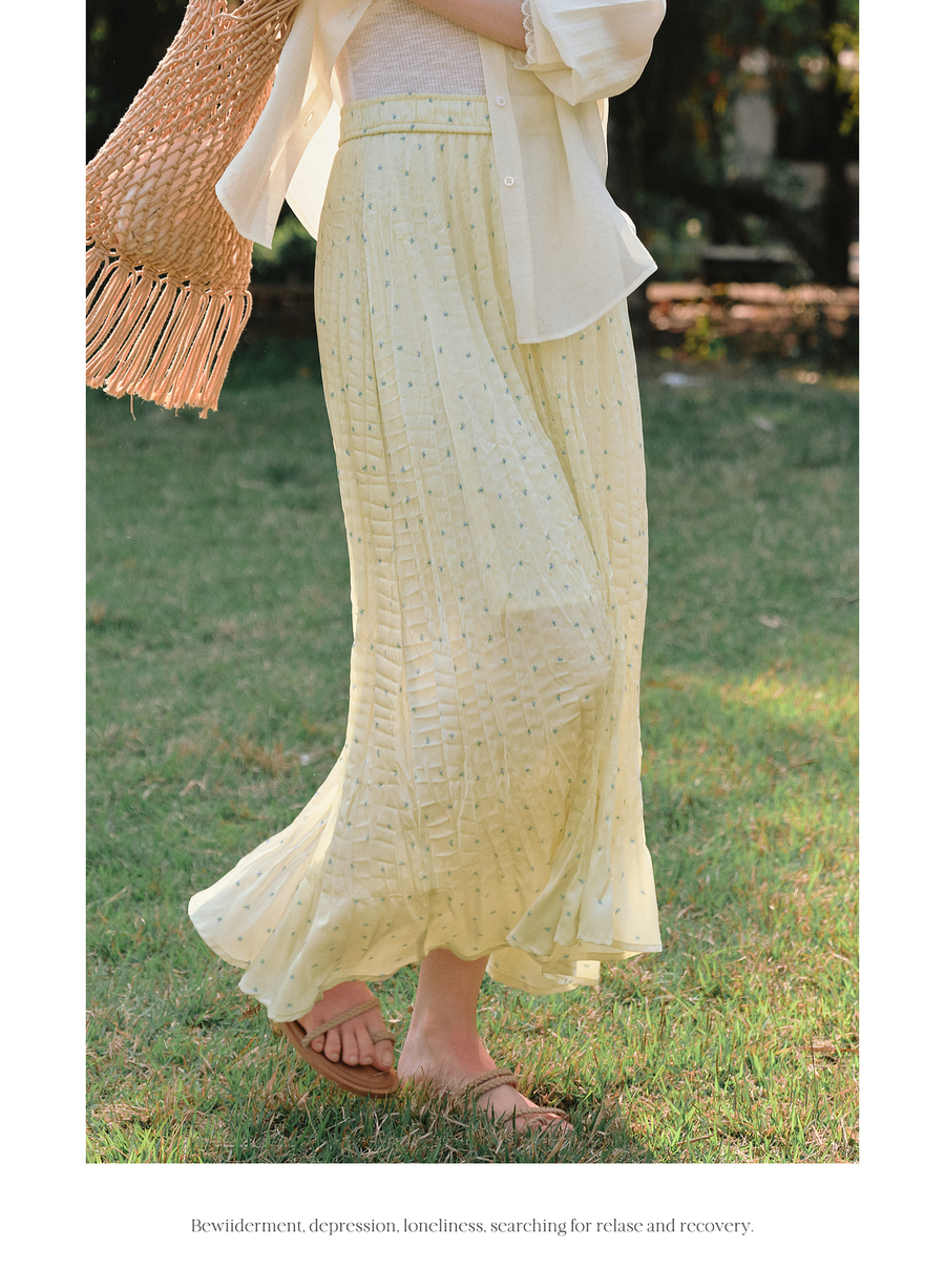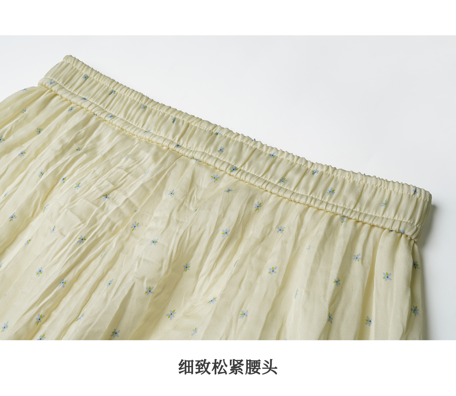 OLrain欧芮儿黄色波点压褶A字半身裙夏季2025新款高腰气质中长裙