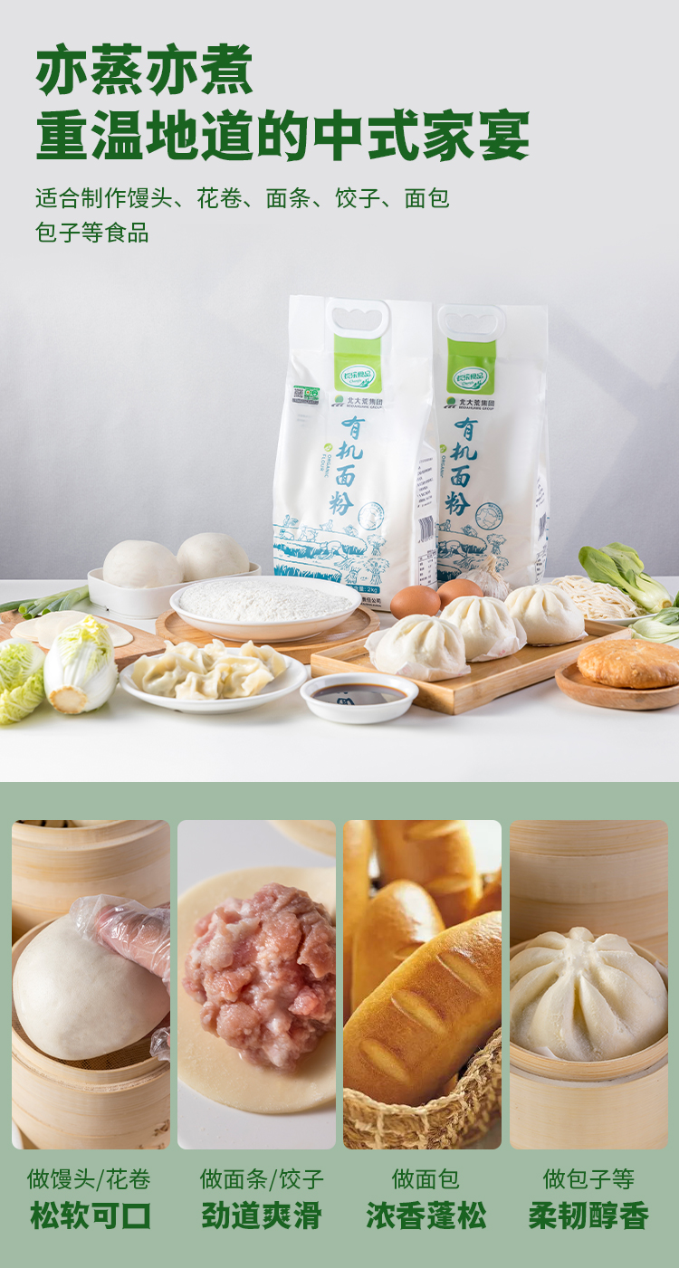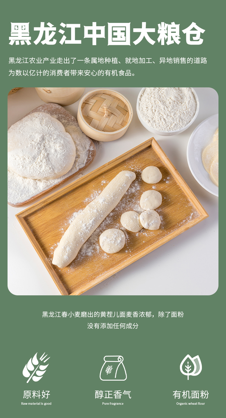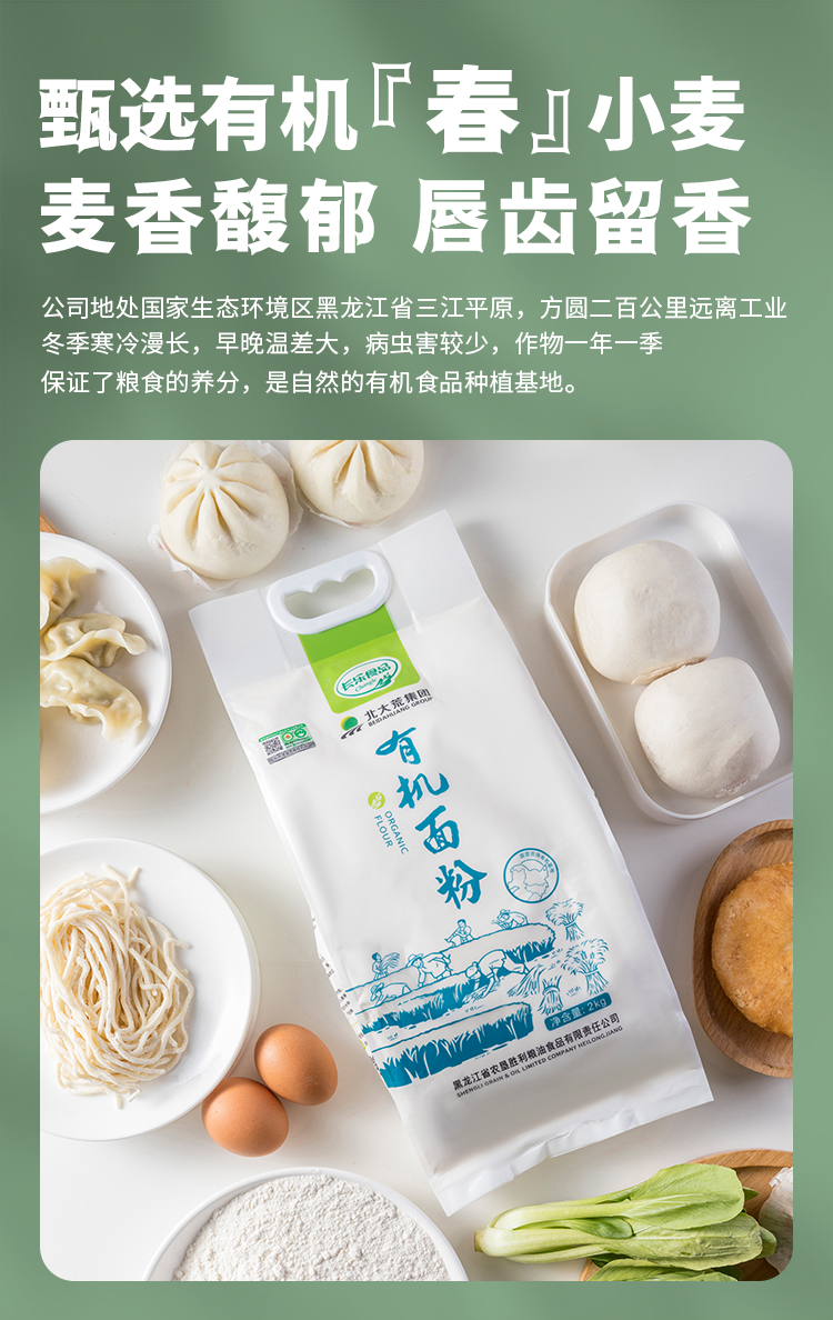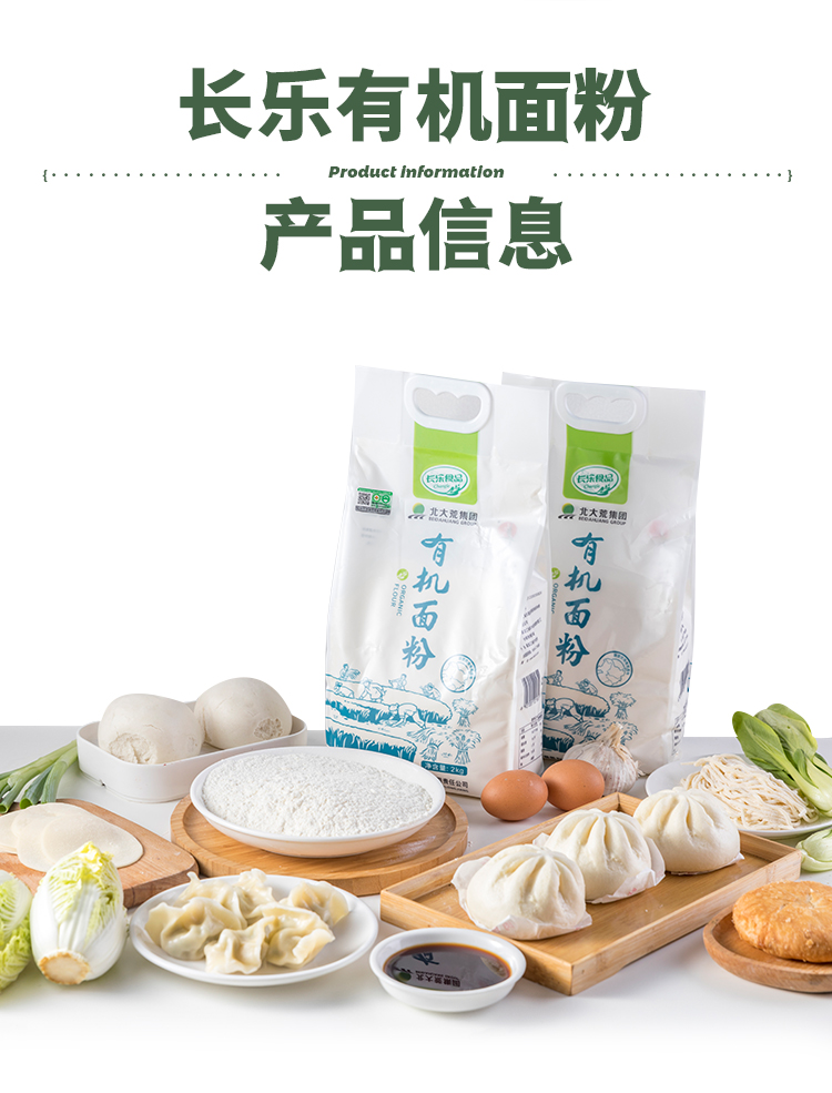 【严选】【黑土地有机种植 粉质细腻顺滑 】长乐北大荒有机面粉 颜色自然微黄 麦香浓郁 2kg*2袋(厂家直发)