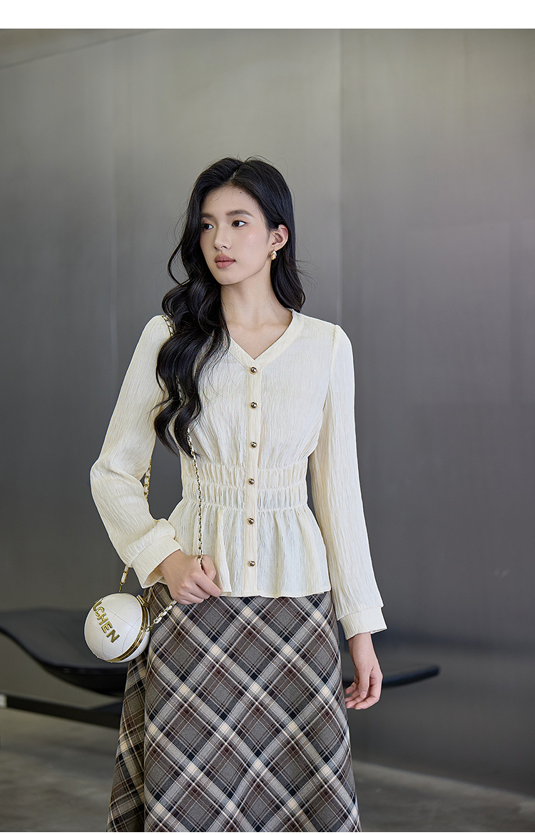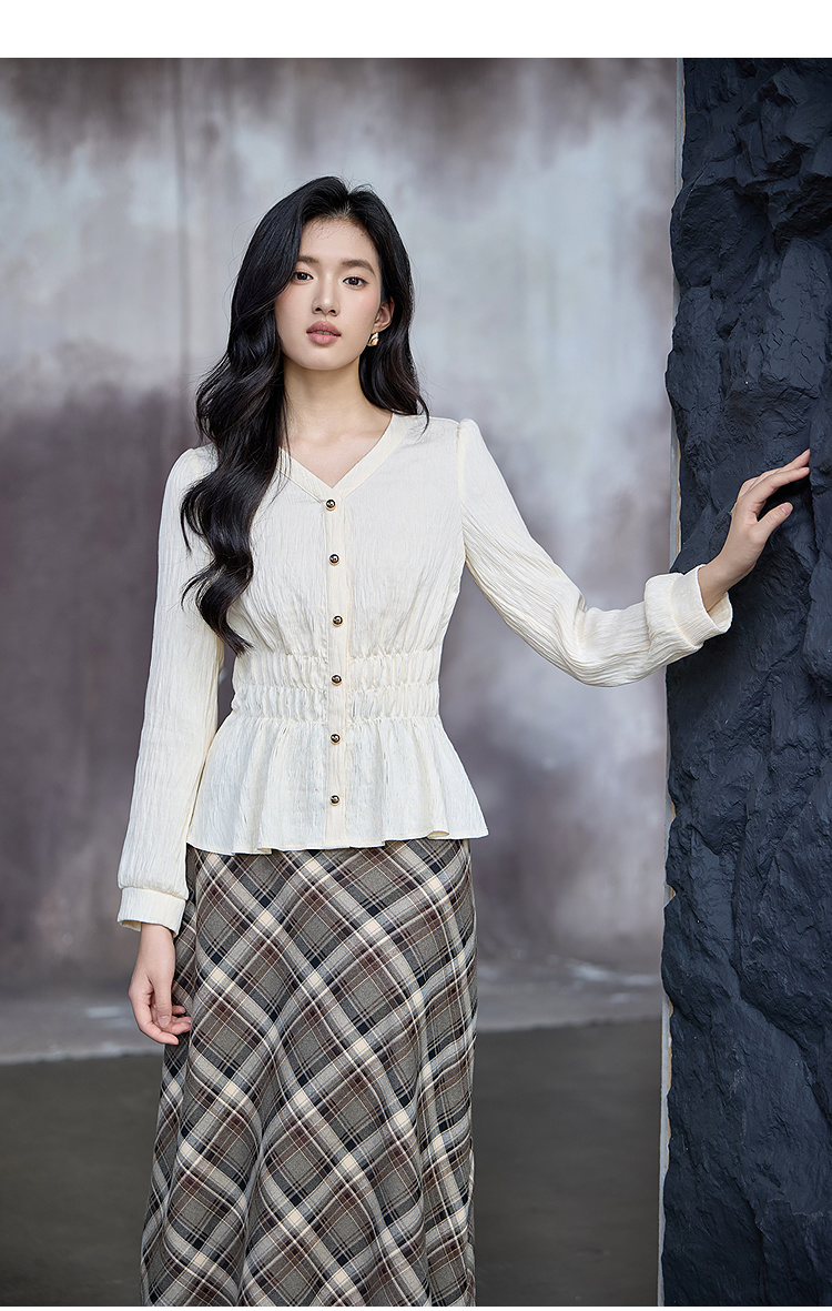 奢姿大码女装2025秋季时尚褶皱设计灯笼袖衬衫胖妹妹气质简约上衣9953294291
