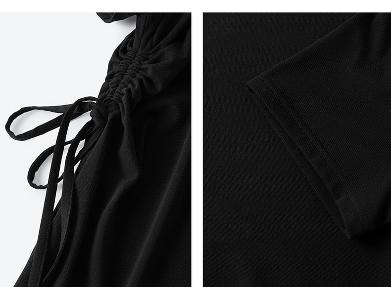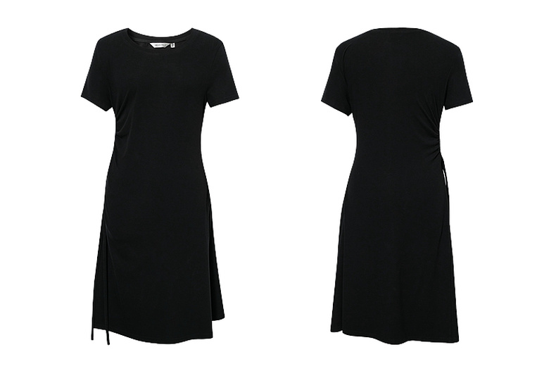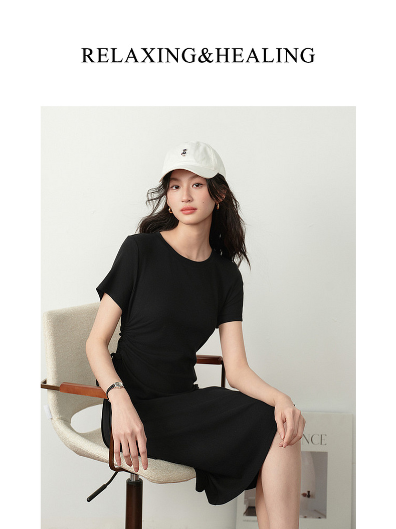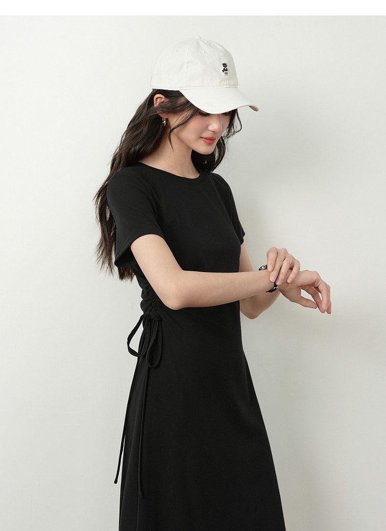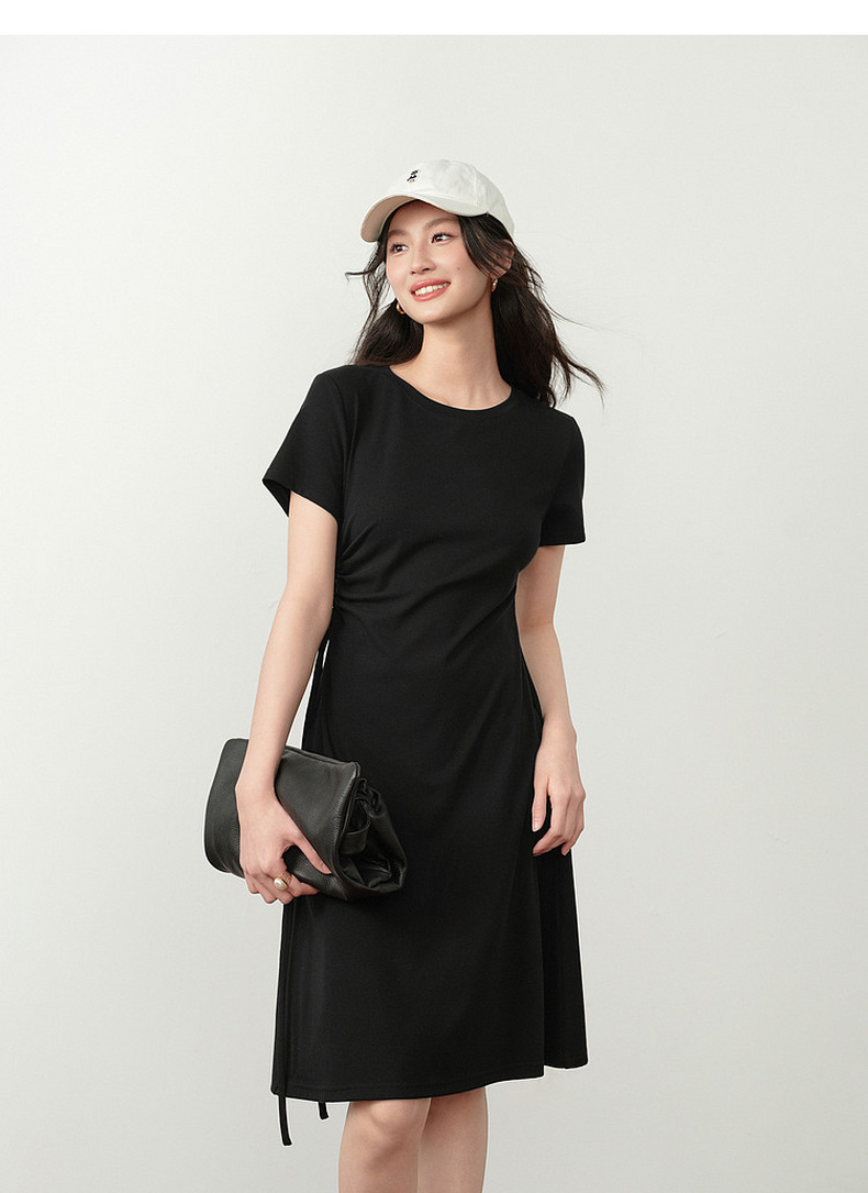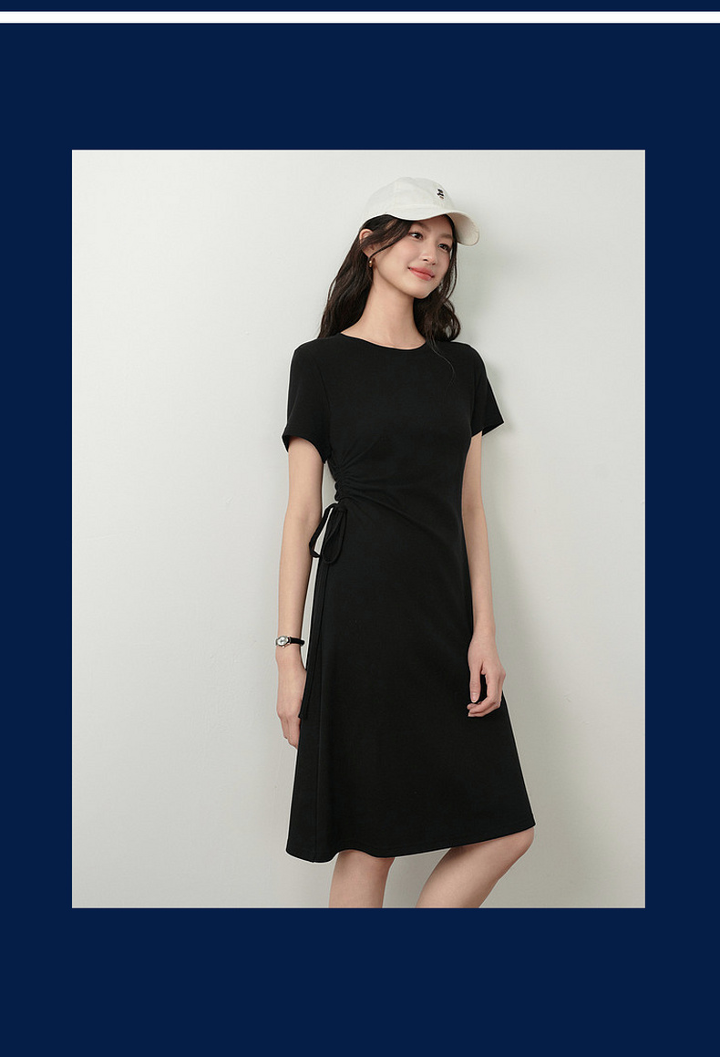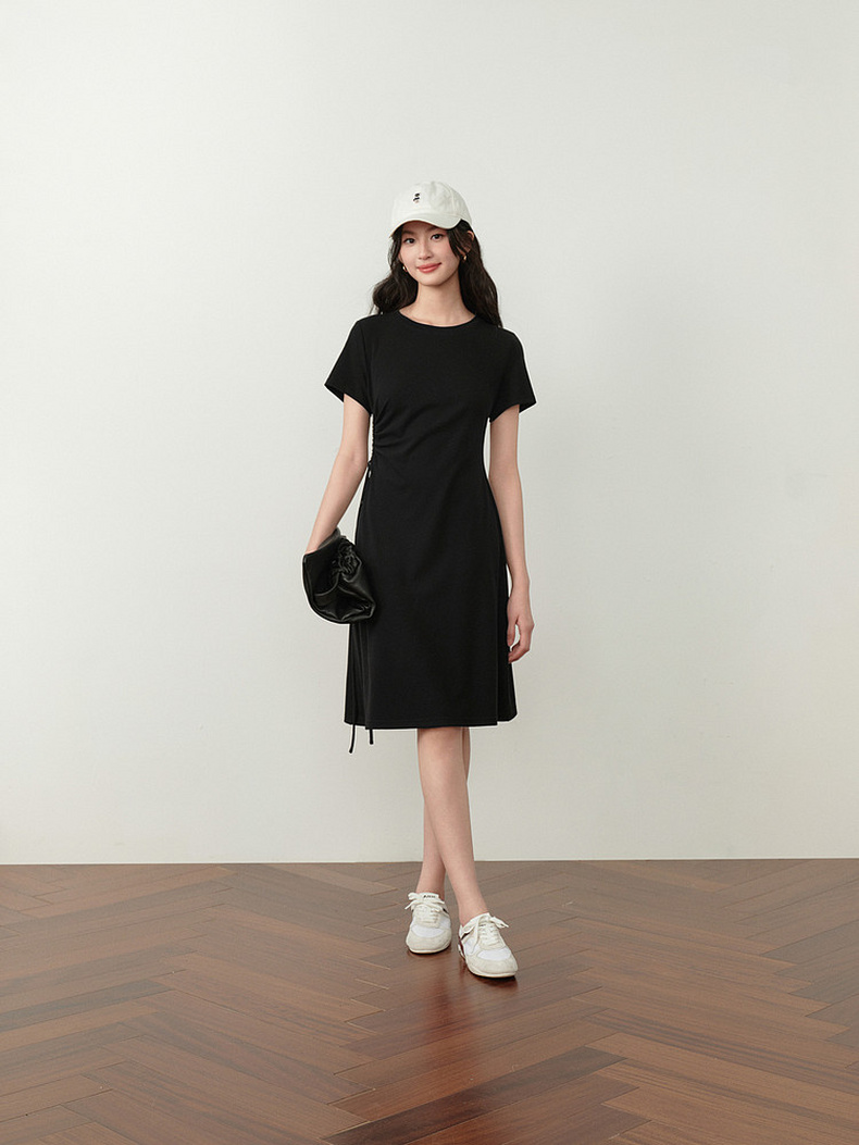【严选】诗凡黎小黑裙短袖圆领针织连衣裙2026夏新款侧边抽绳收腰显瘦裙子7H3390231