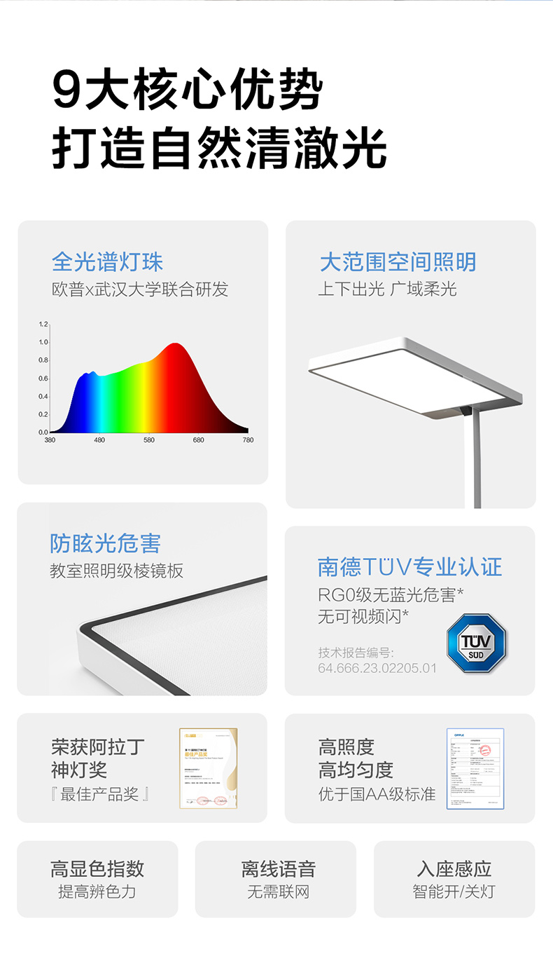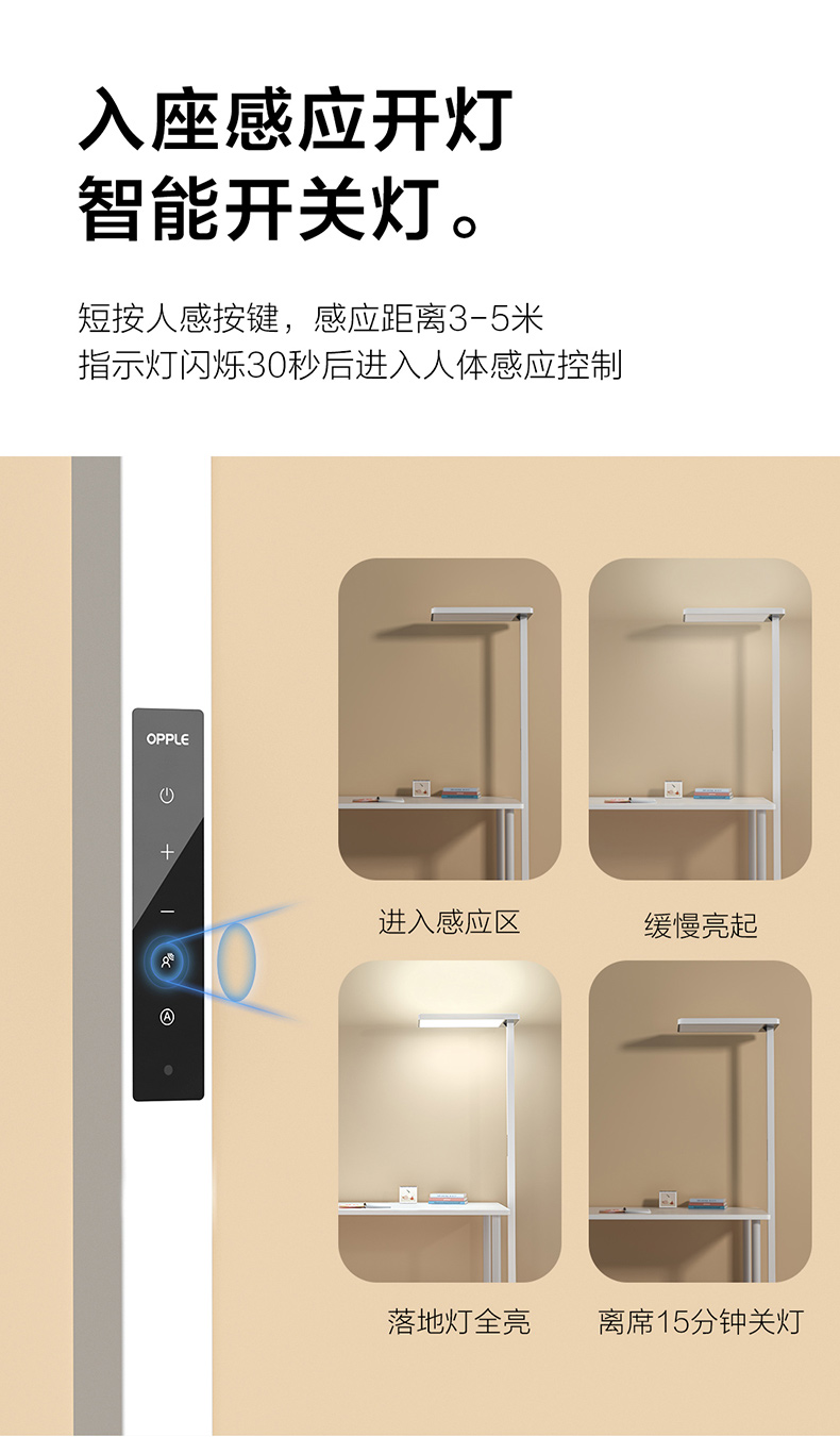 欧普(OPPLE)大路灯入座感应台灯儿童房学生书桌立式落地声控护眼灯悦瞳L1