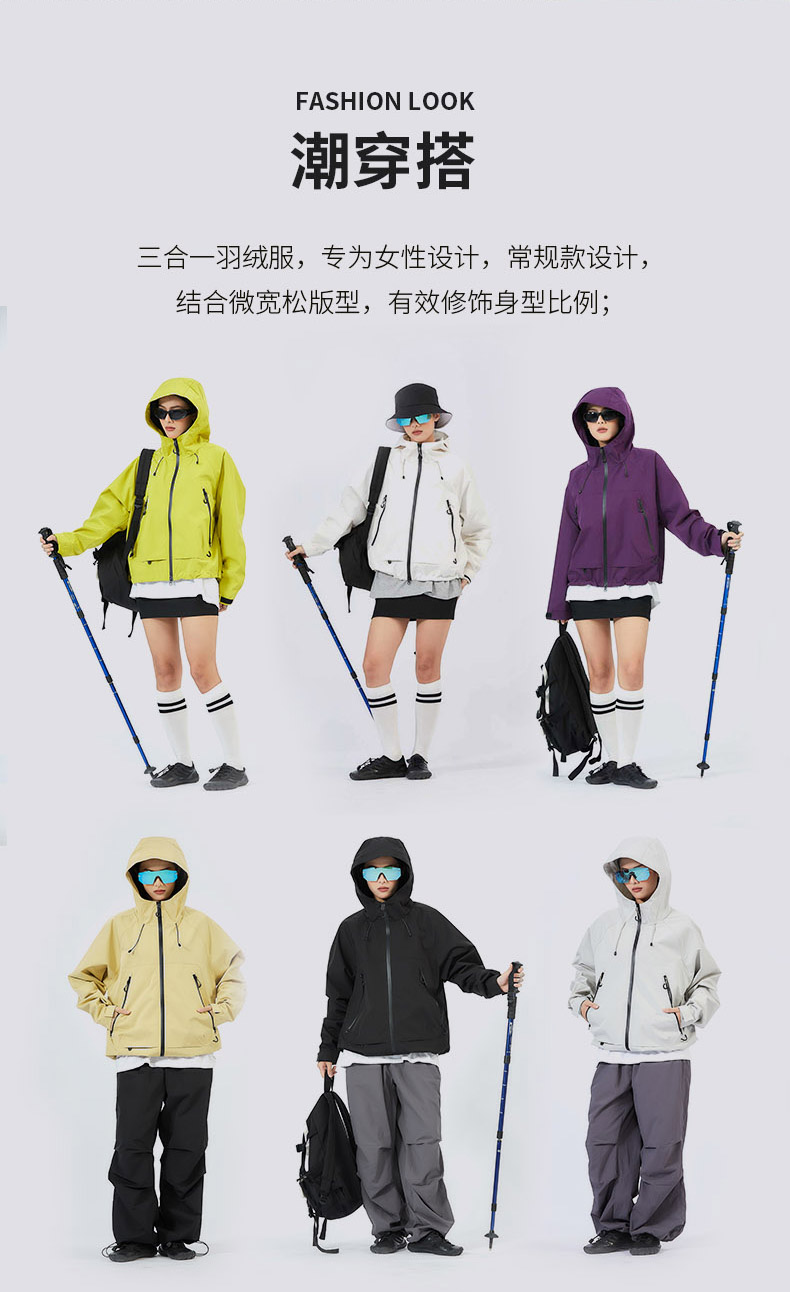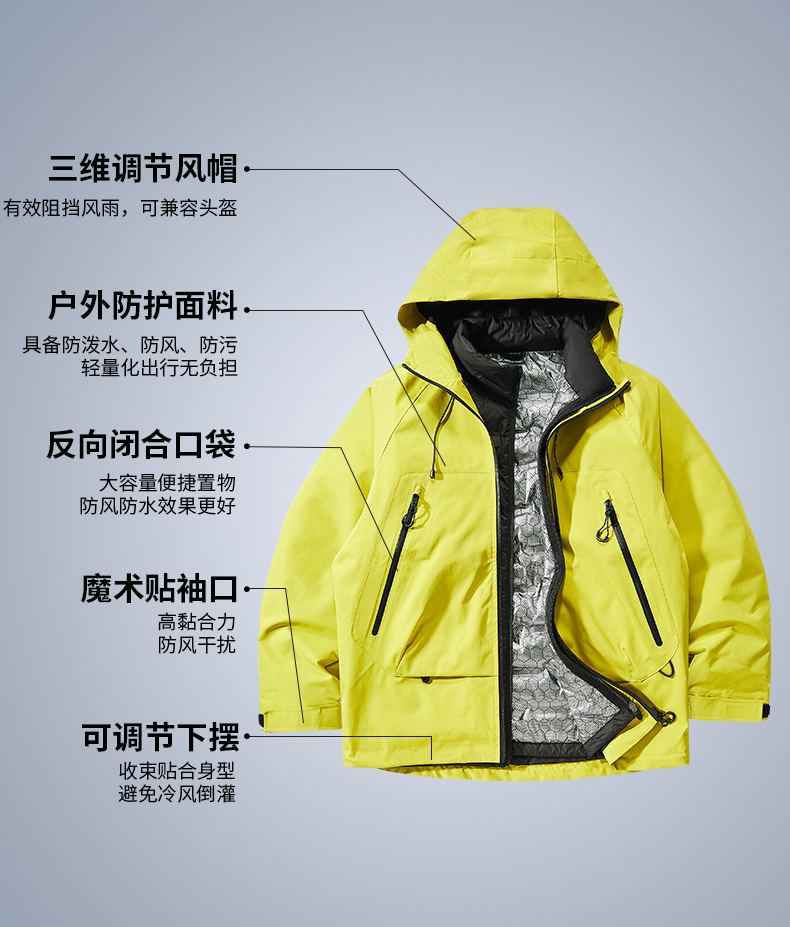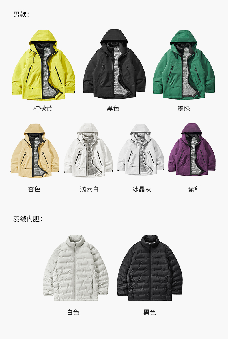 LUCKY DEER幸运鹿情侣款时尚城市运动防风防泼水硬壳羽绒三合一外套