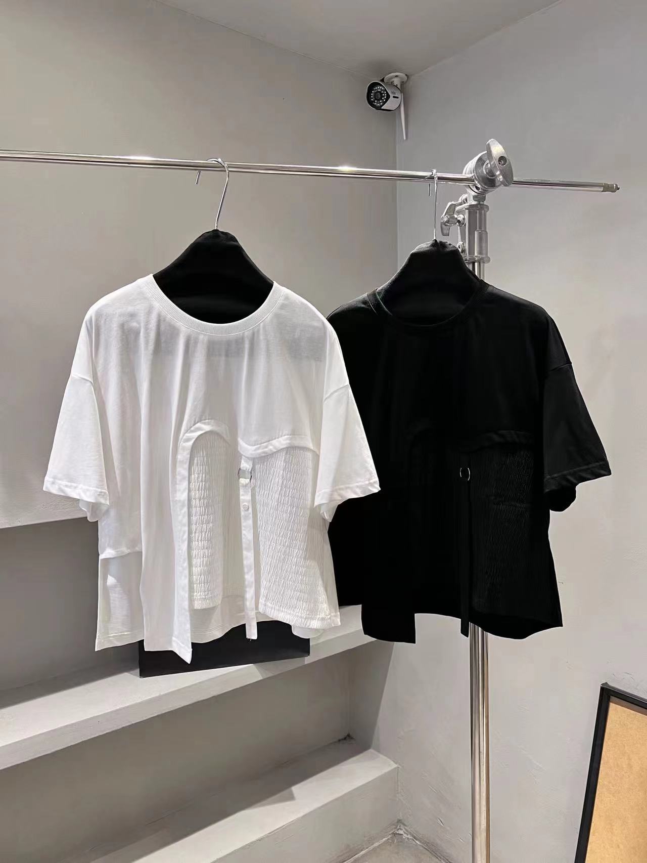 B7466 # 白 均码 新款原创设计飘带不规则 洋气个性百搭休闲圆领T恤