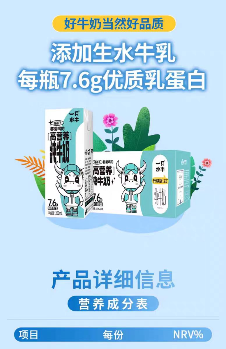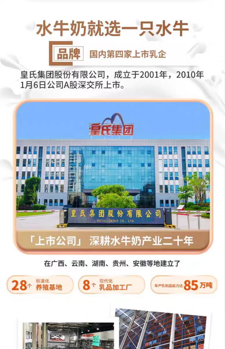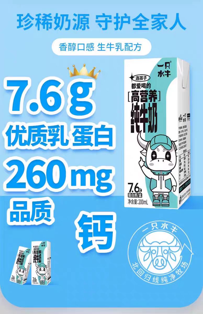 皇氏一只水牛纯牛奶(10瓶*200ml)下单即配送【仅限东莞林语花园、心语花园购买,可配送到家】