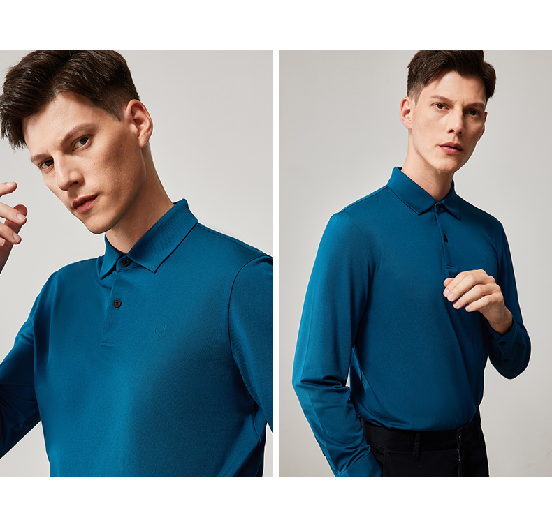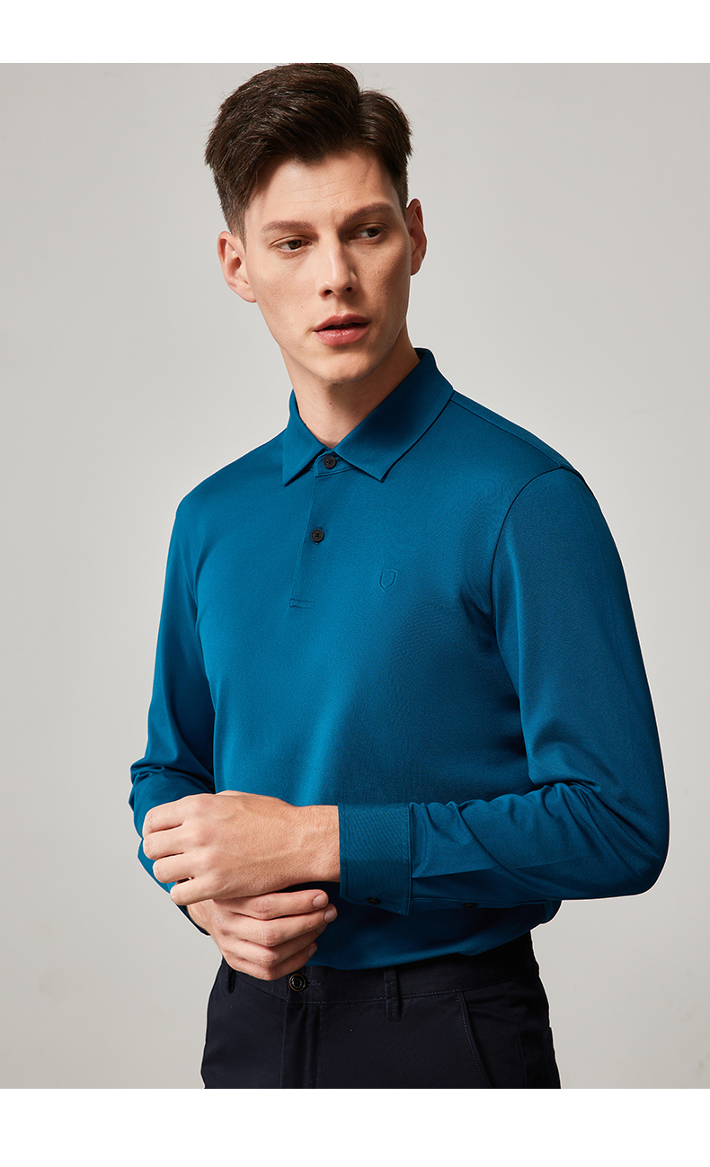 MD名盾春夏新款长袖t恤男士棉质翻领中青年高档纯色polo衫