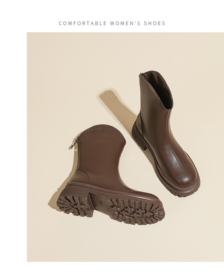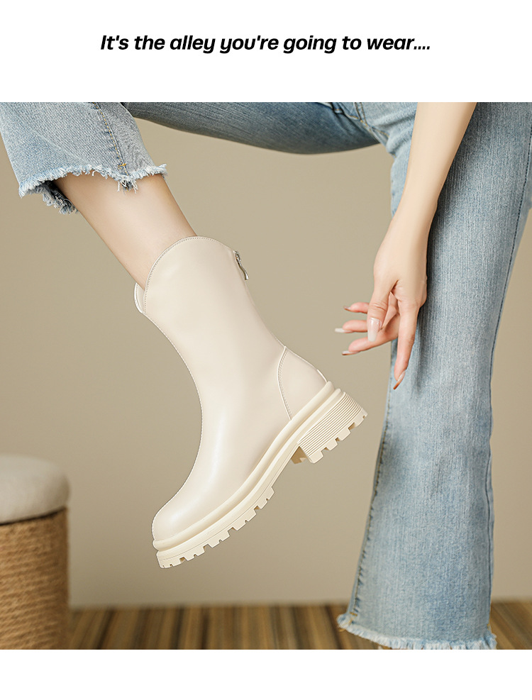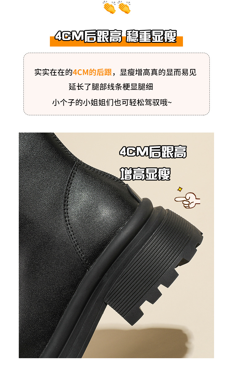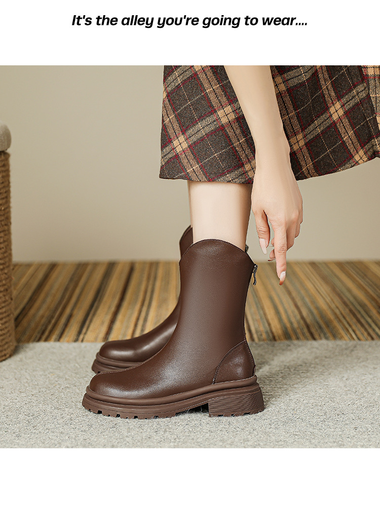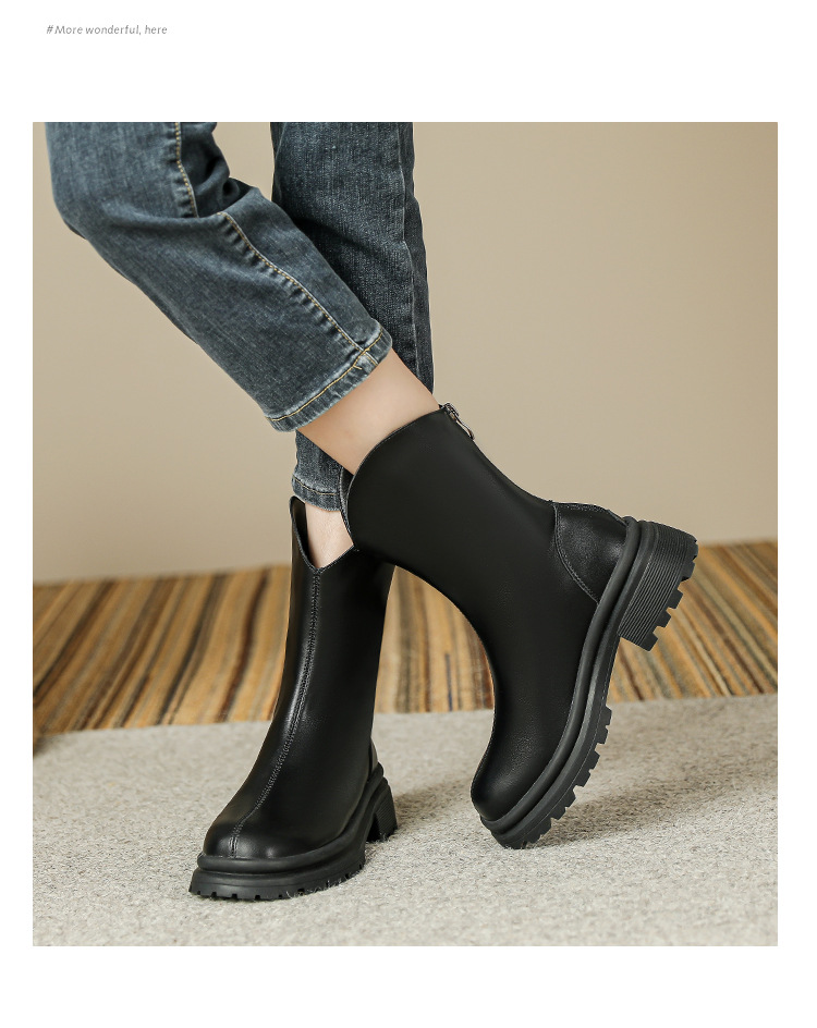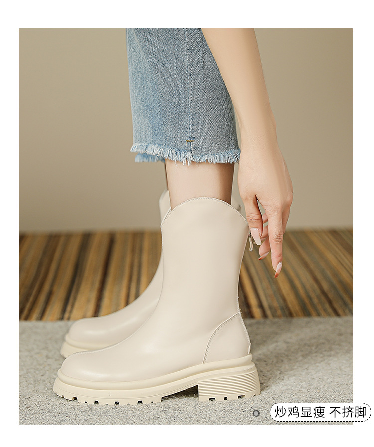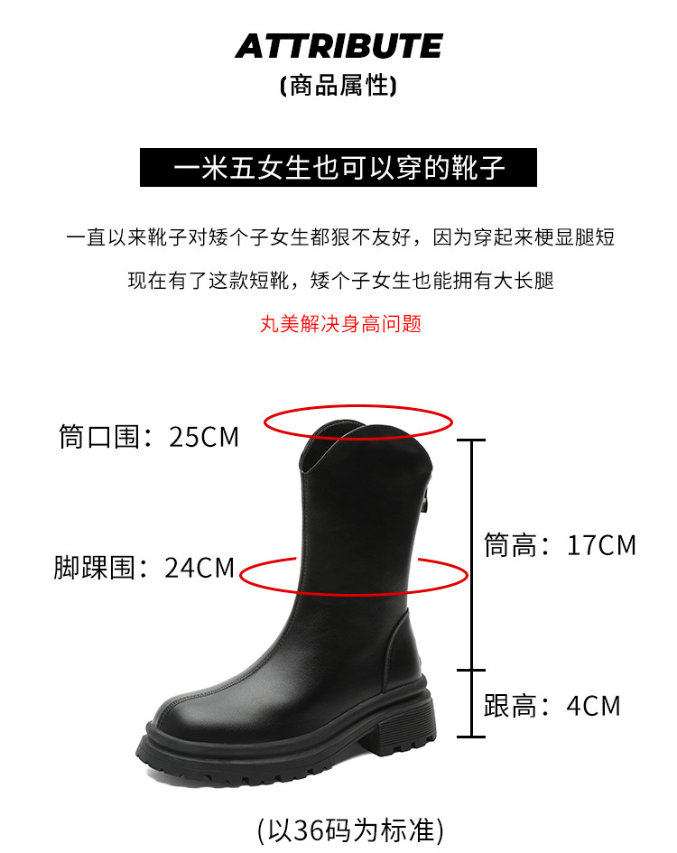 V口显直2023年新款短靴女圆头复古粗跟短筒瘦瘦靴马丁靴子女单靴