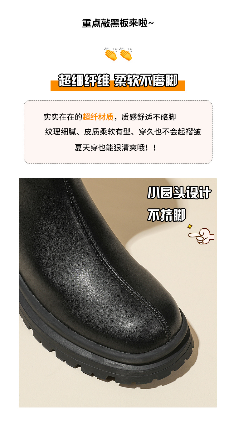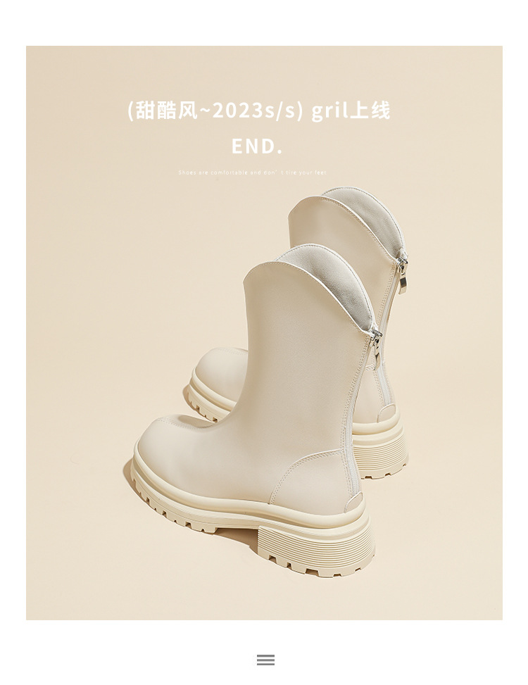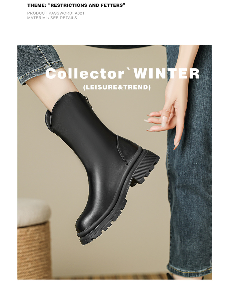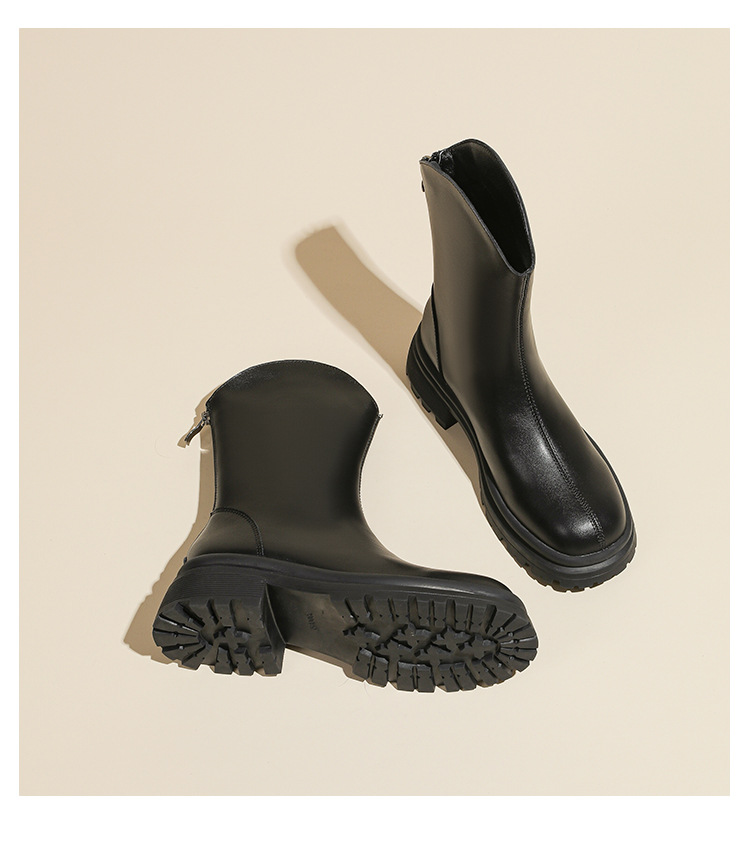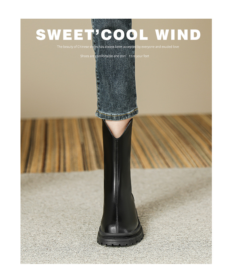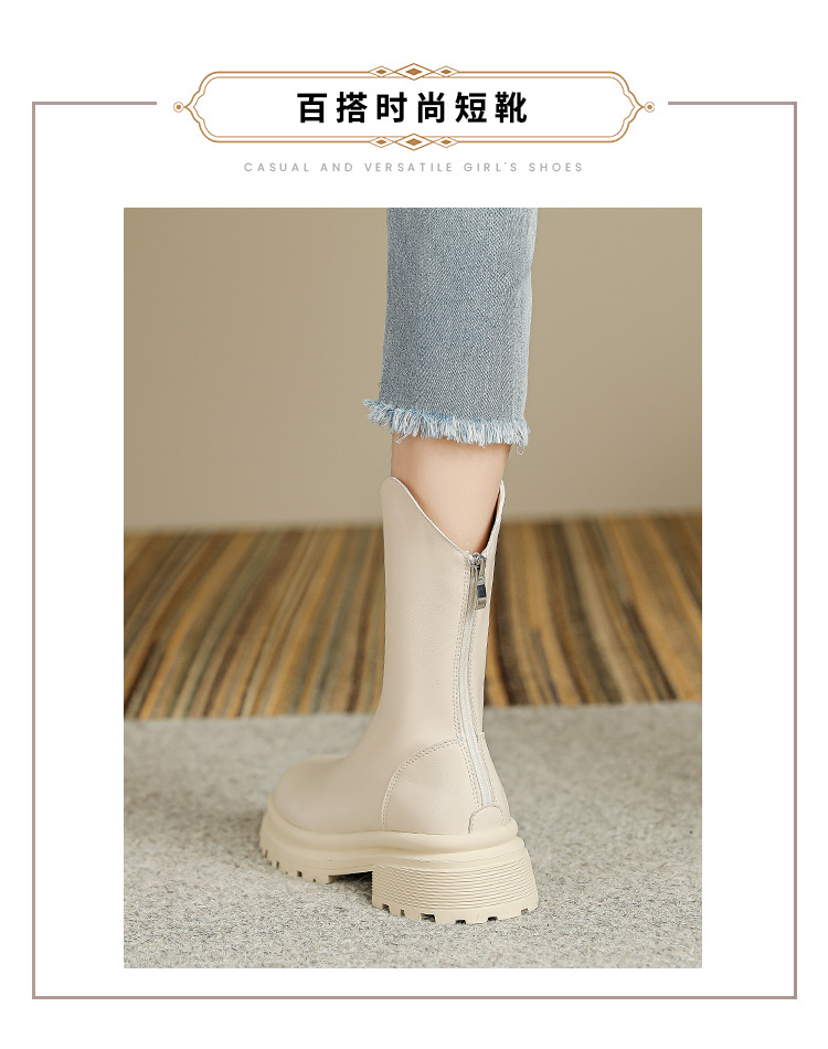 V口显直2023年新款短靴女圆头复古粗跟短筒瘦瘦靴马丁靴子女单靴