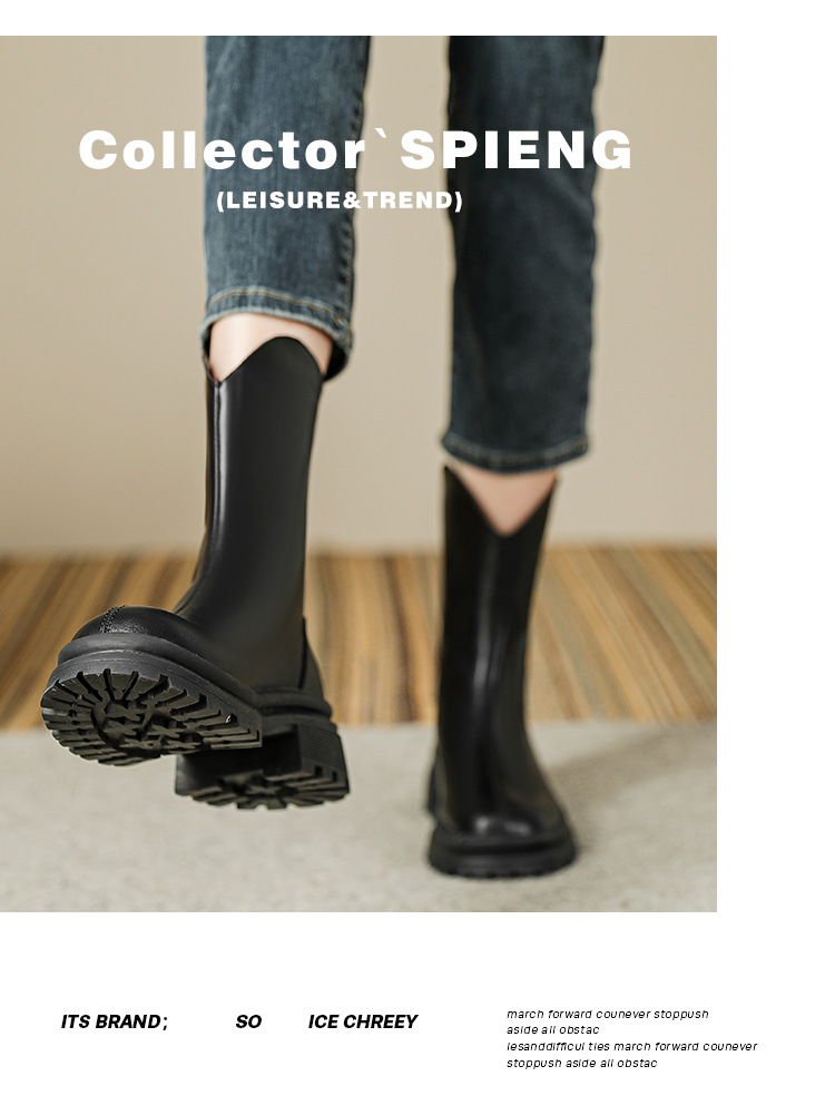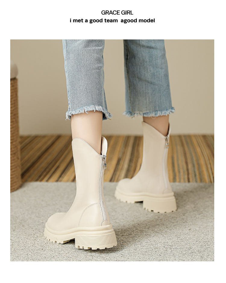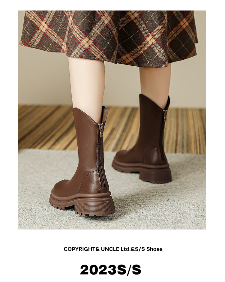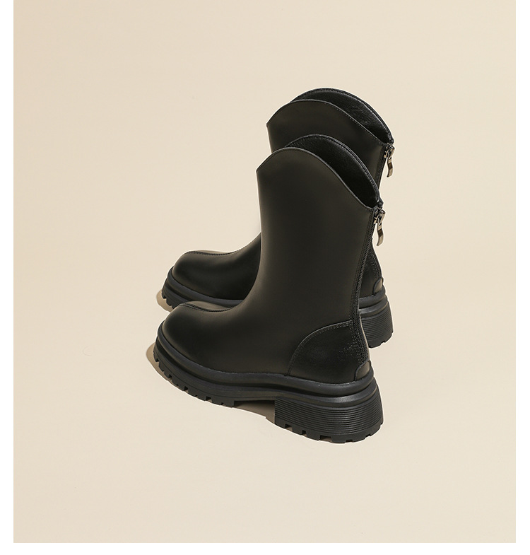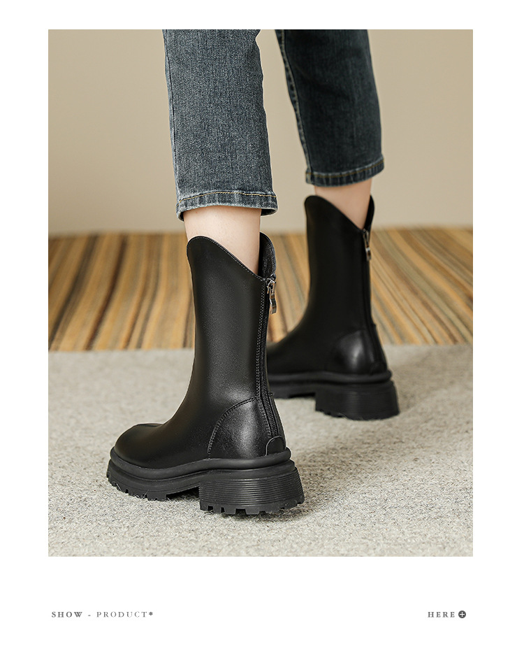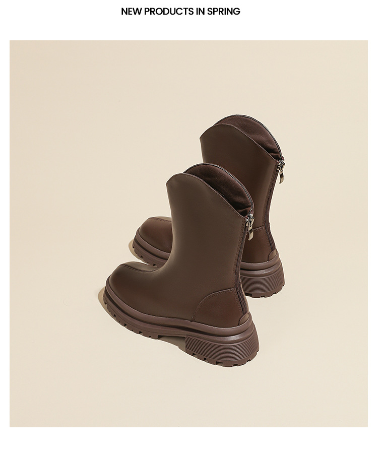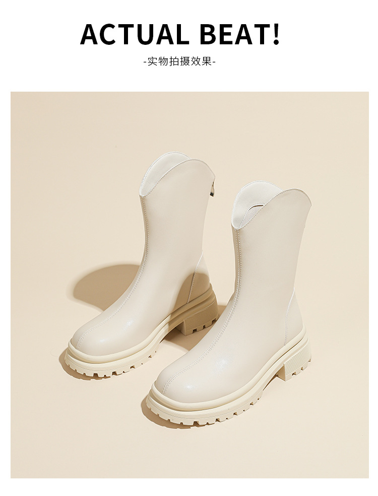 V口显直2023年新款短靴女圆头复古粗跟短筒瘦瘦靴马丁靴子女单靴