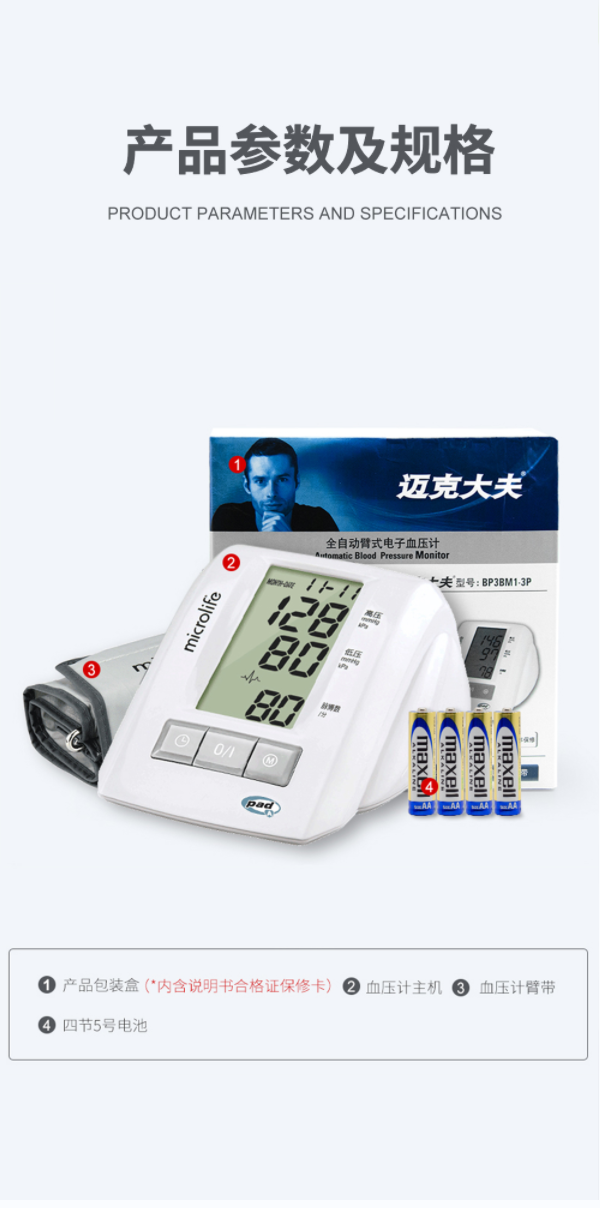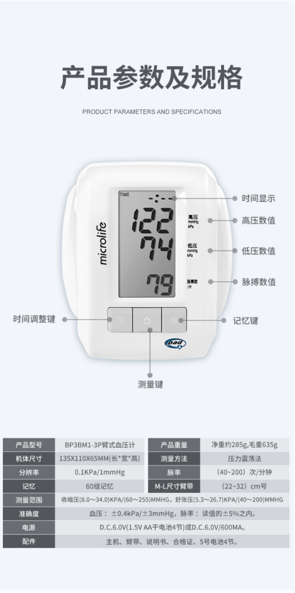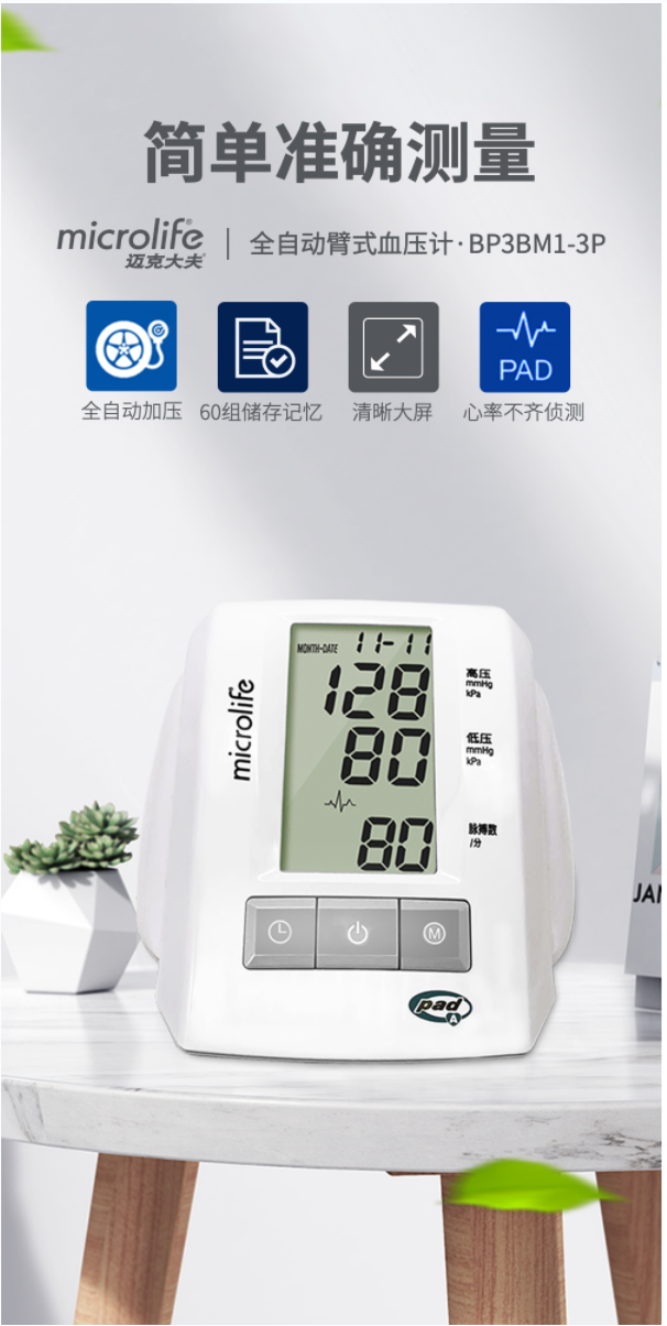 Microlife 全自动臂式电子血压计 血压计BP3BM1-3P