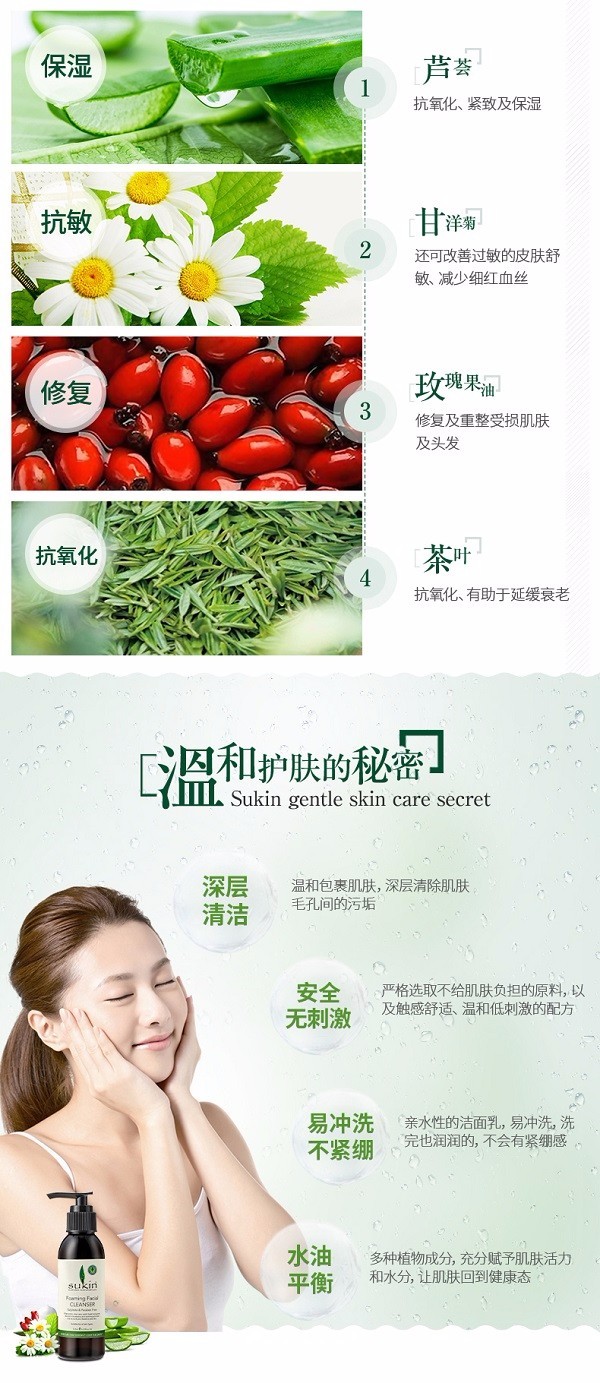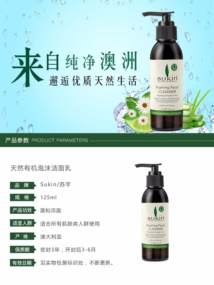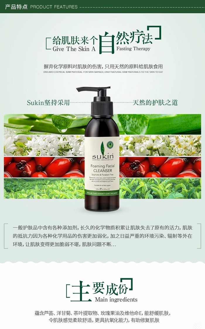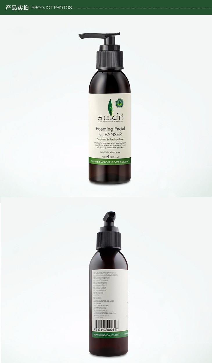 【保税仓】SUKIN/苏芊 天然有机泡沫洁面乳(泵头)Foaming Facial Cleanser (Pump) 125ml
