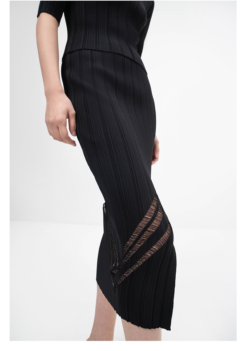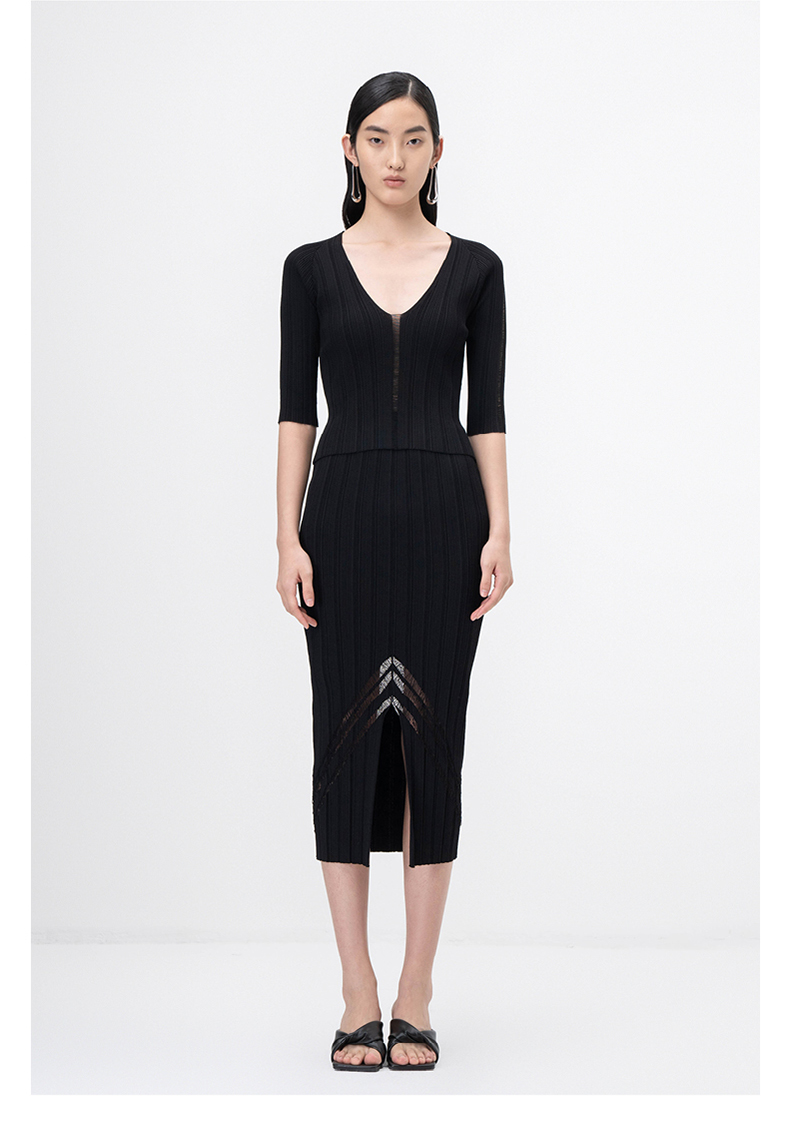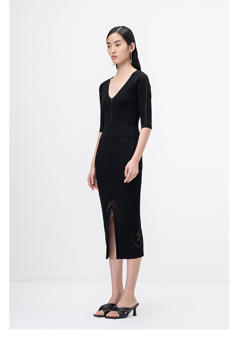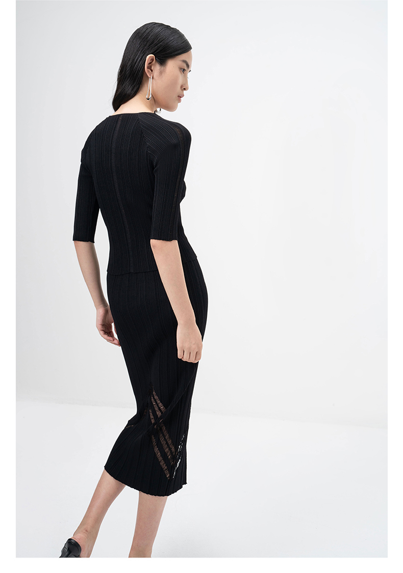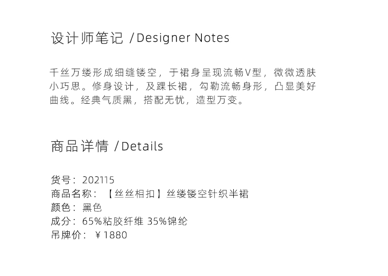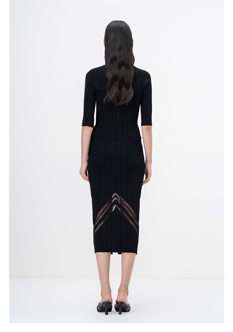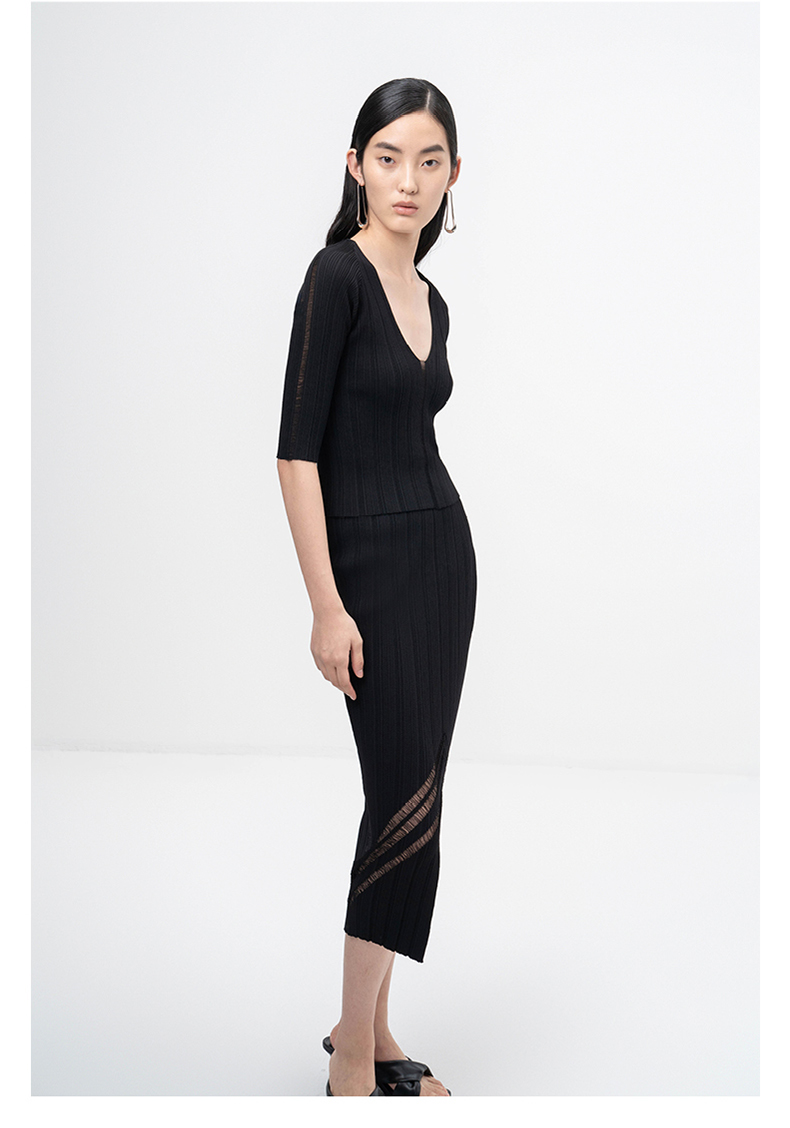 【丝丝相扣】丝缕镂空设计黑色针织半裙/202115