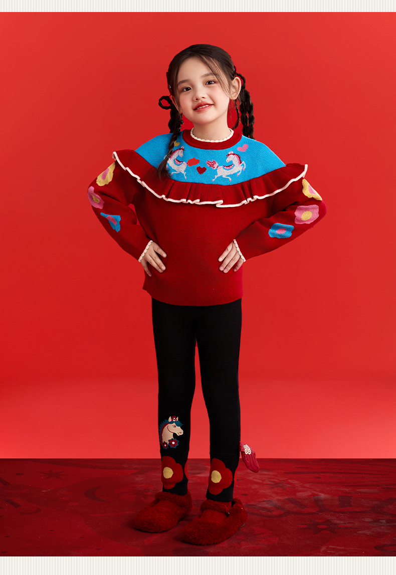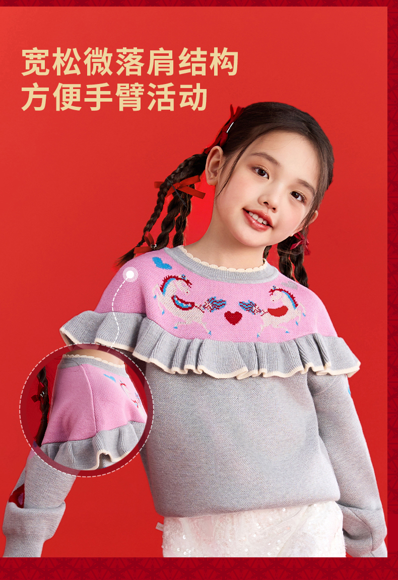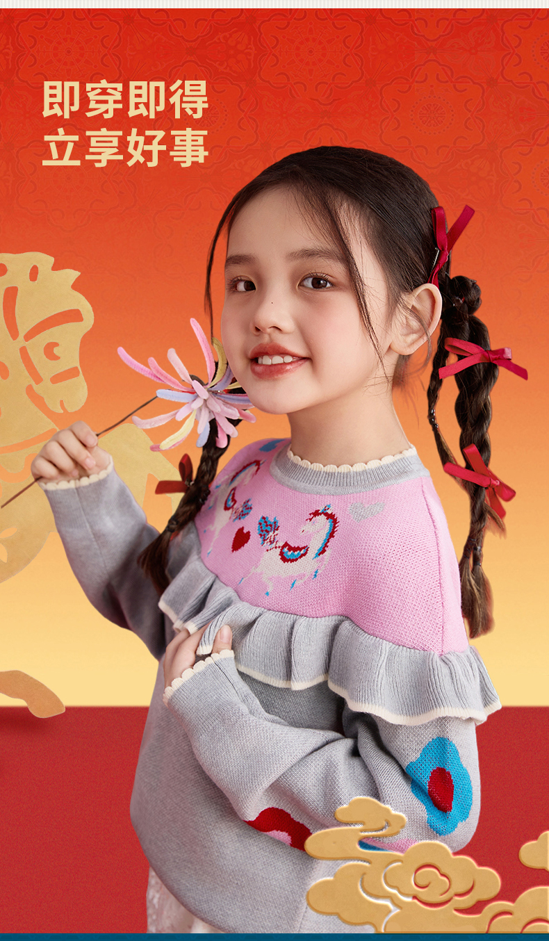 年衣童装儿童毛衣冬季新品女童中式甜美女孩针织衫好事花生毛衣