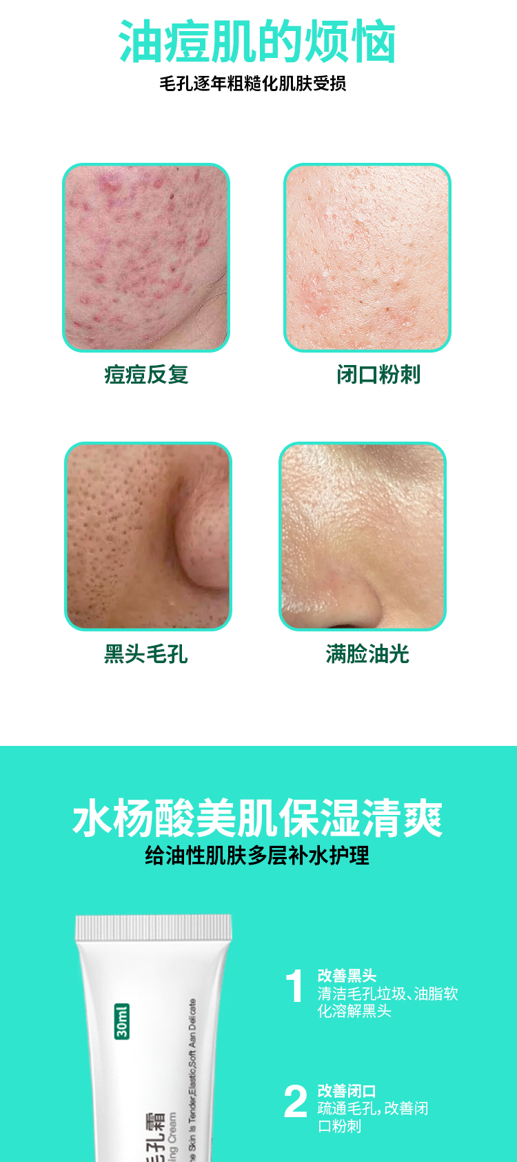 【合理搭配 解决危“肌”】收缩毛孔清洁霜组合四件套 臻羞壬二酸凝胶15% 净颜水杨酸细致毛孔去黑头去粉刺淡化痘印软膏