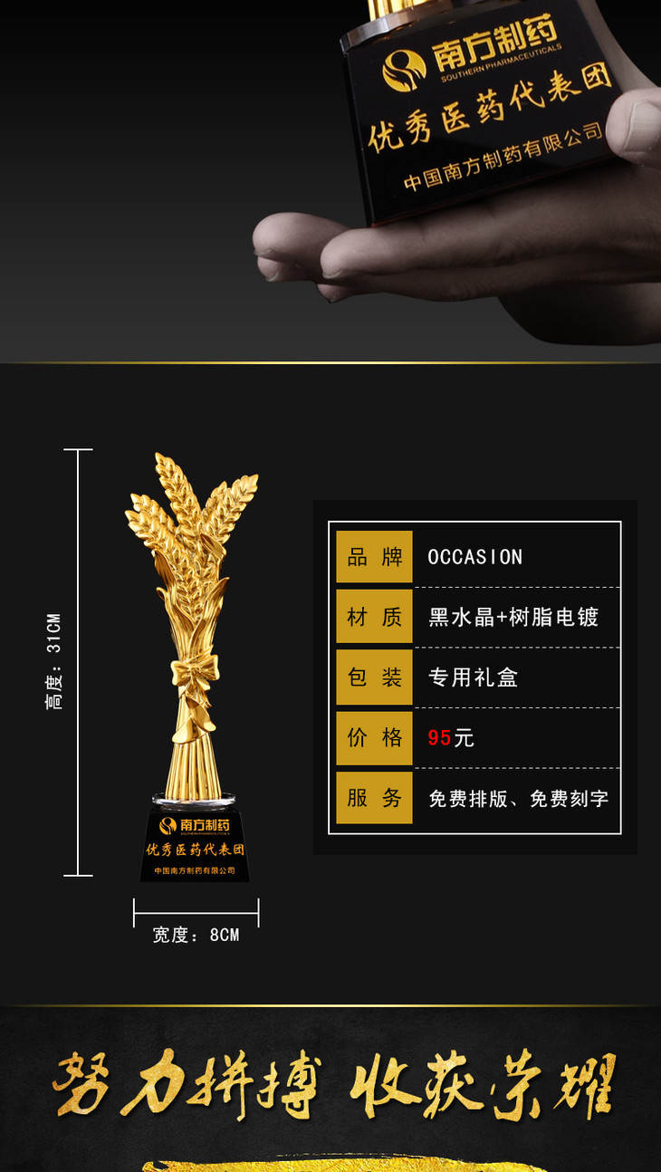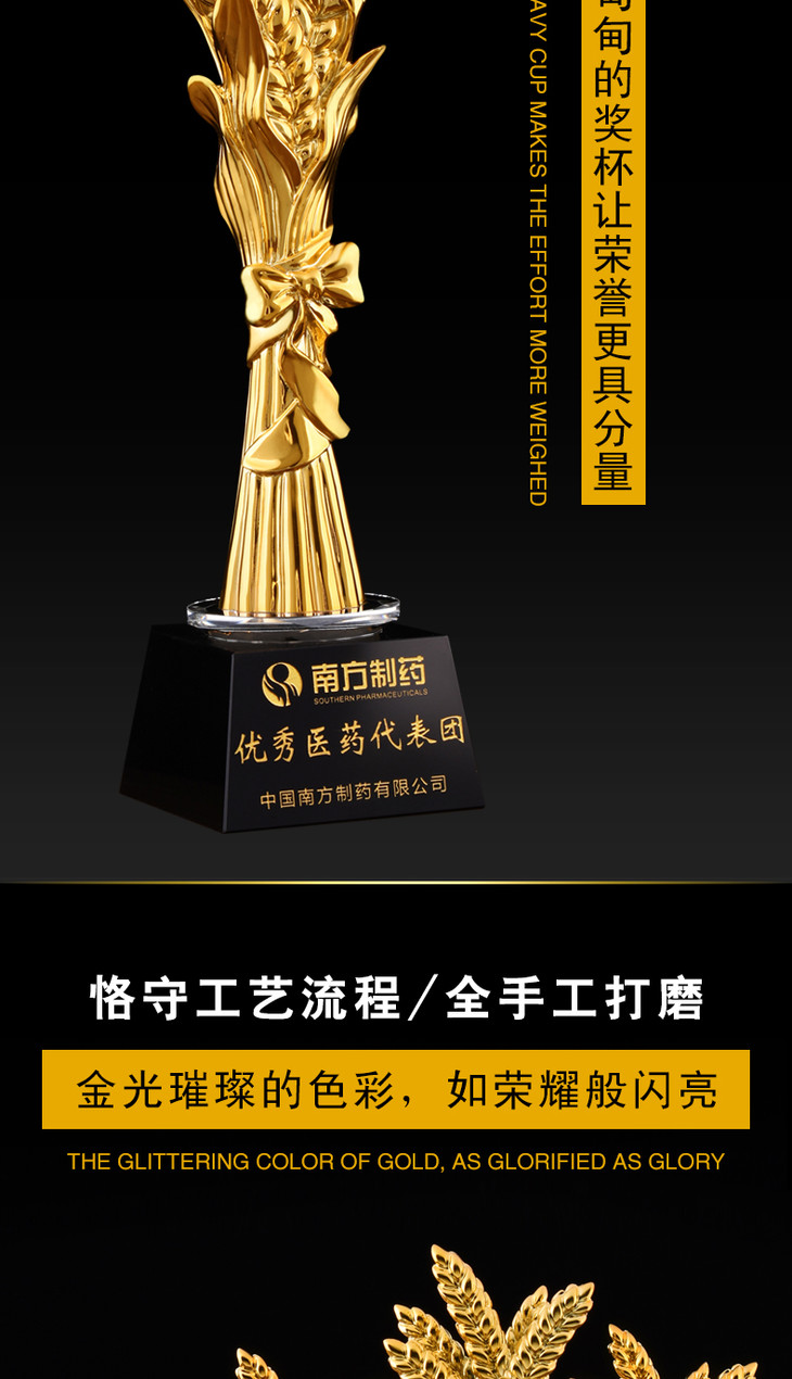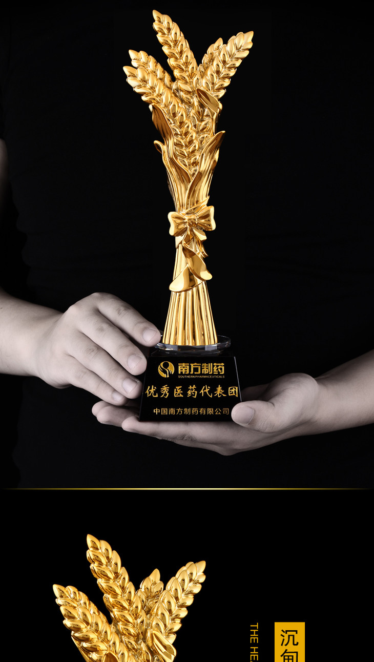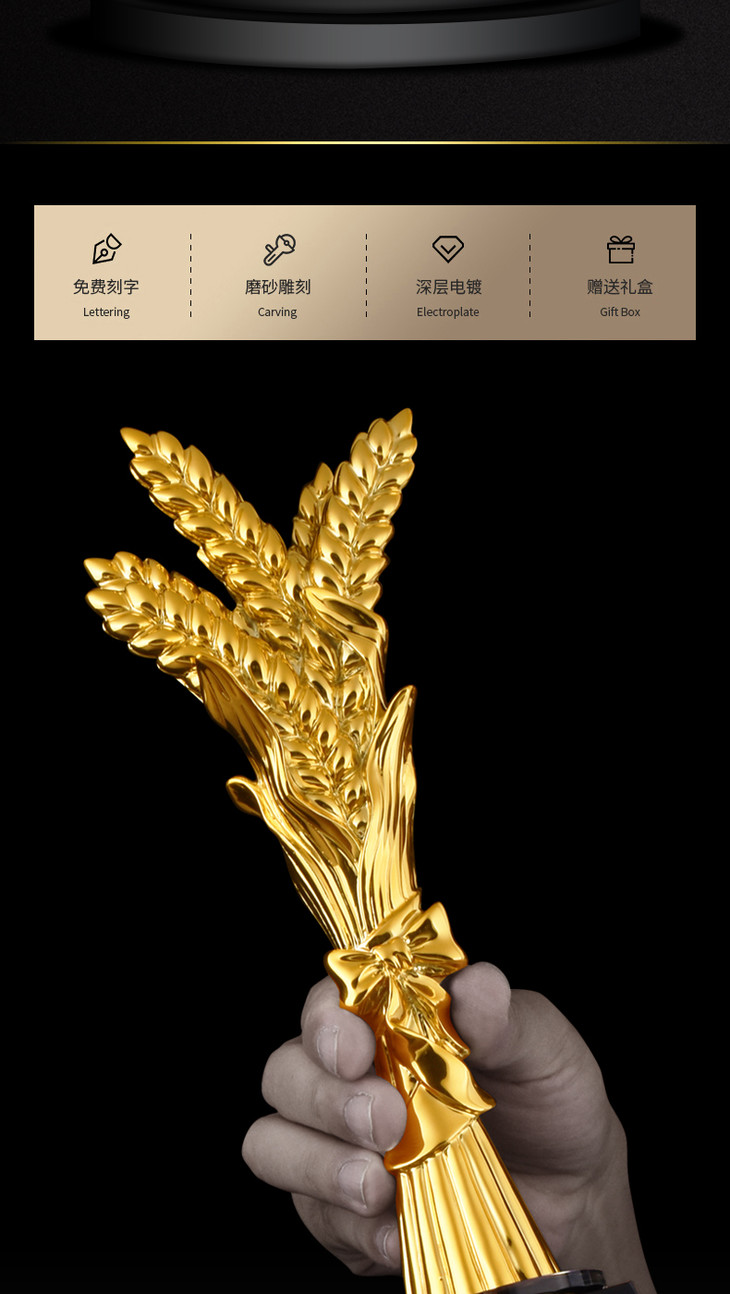 盛典 丰收麦穗优秀员工奖杯纪念品奖牌定做比赛冠军创意水晶定做