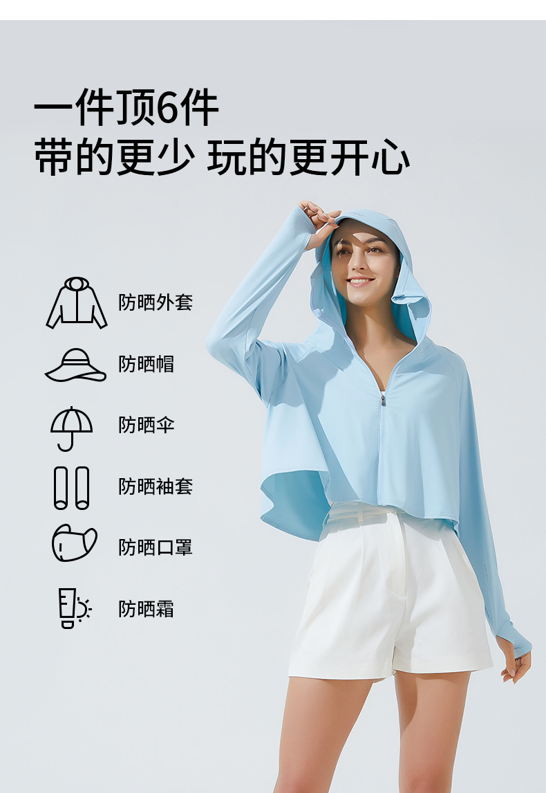 新Supield素湃全波段防晒斗篷连帽夏季薄款防晒服皮肤衣702