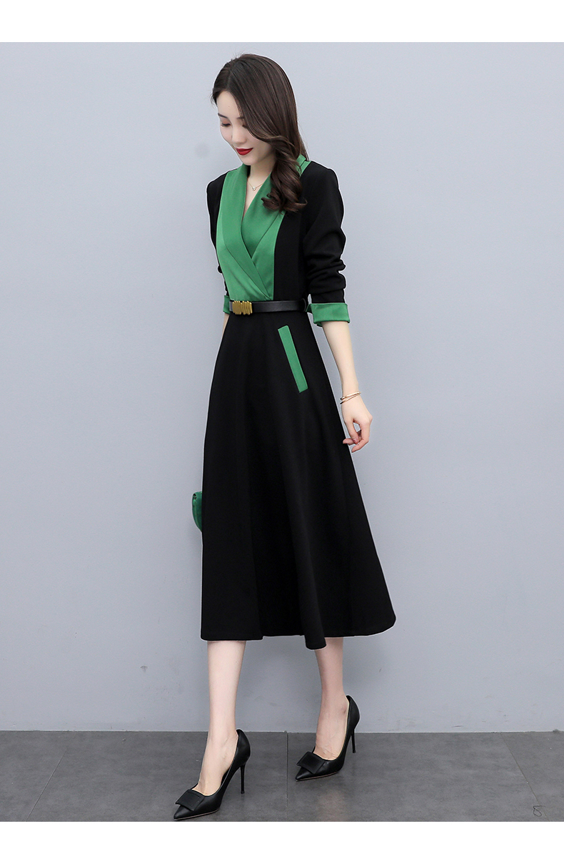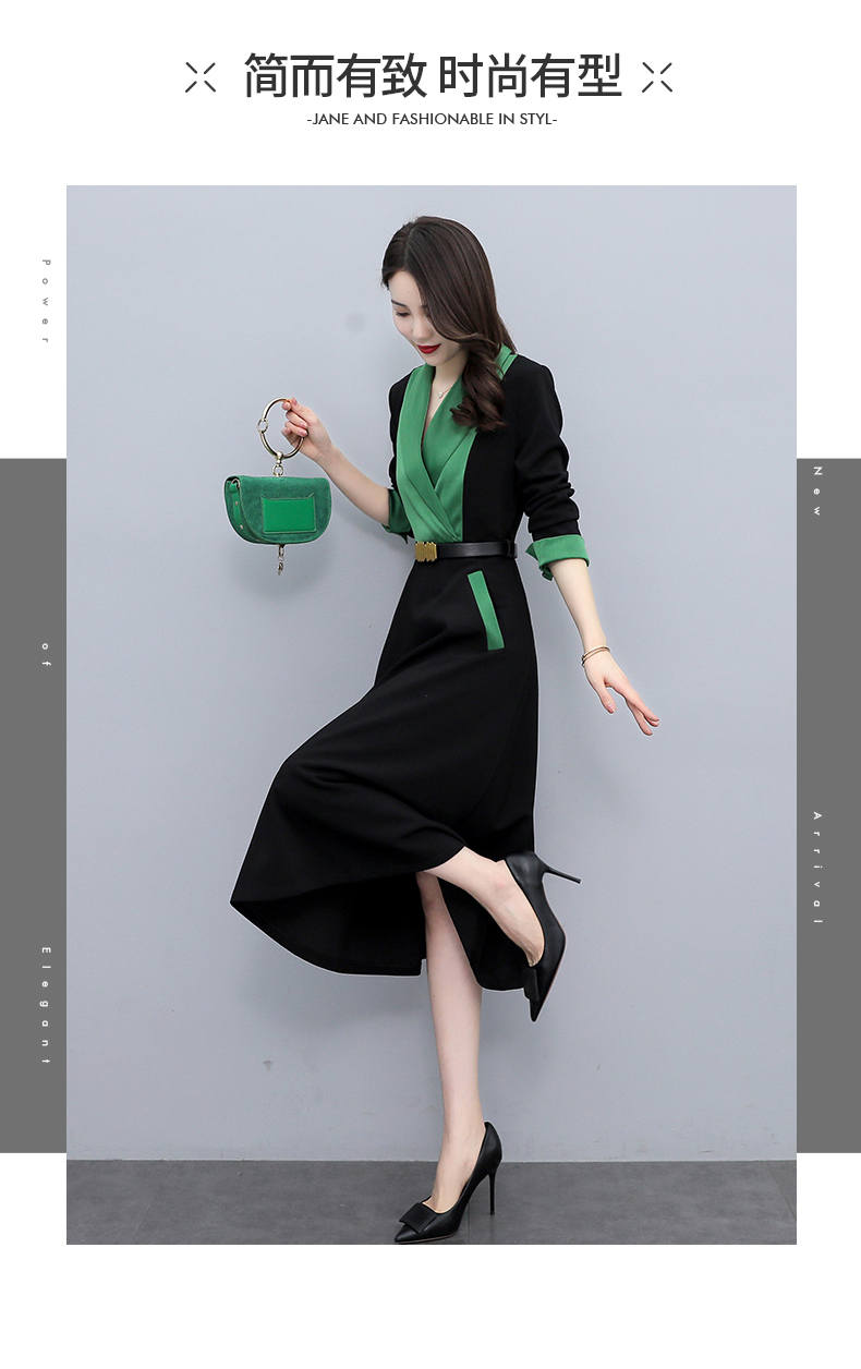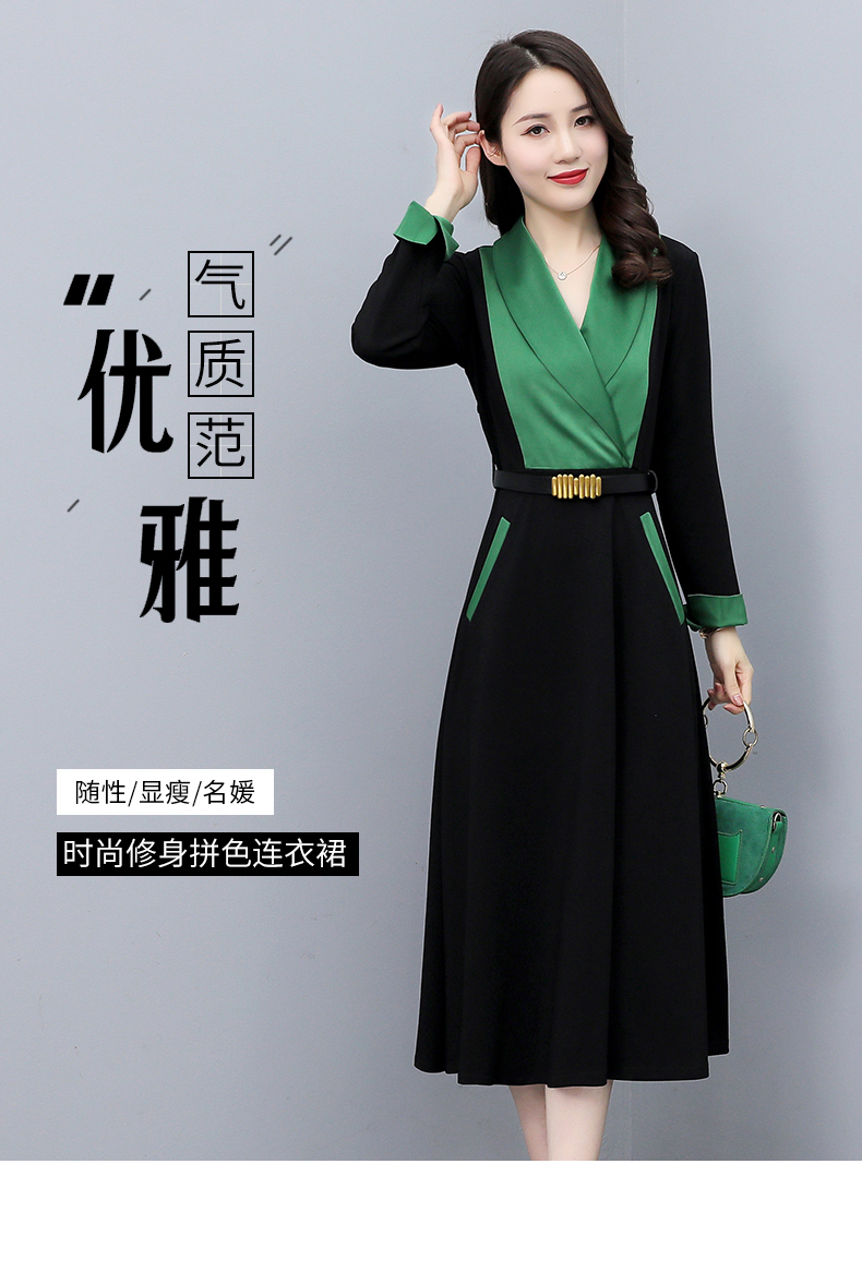 时尚个性,撞色拼接连衣裙接头通勤连衣裙HR-MYYS8016