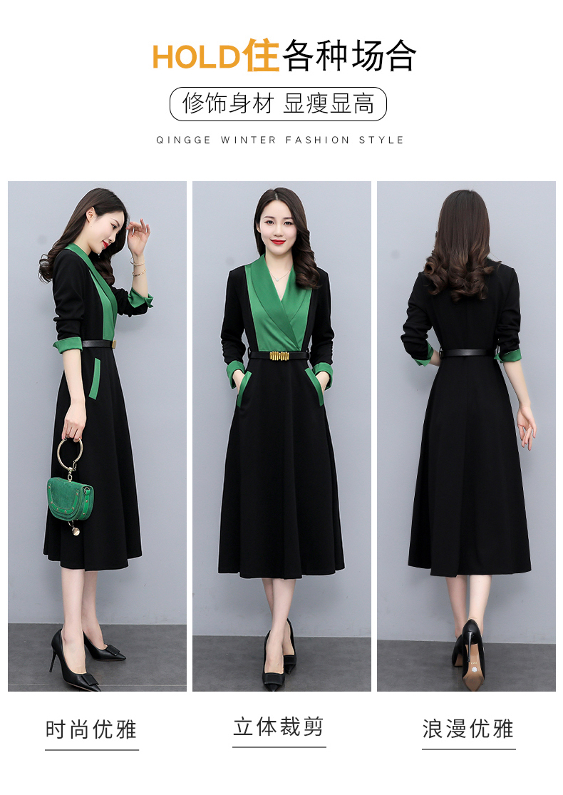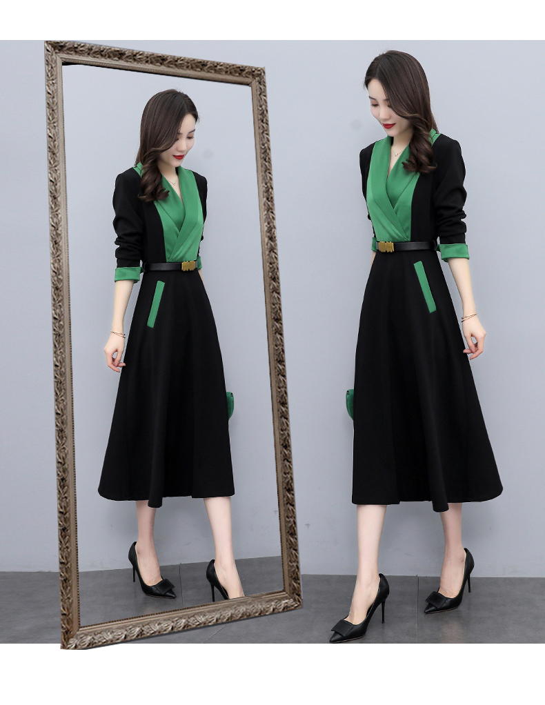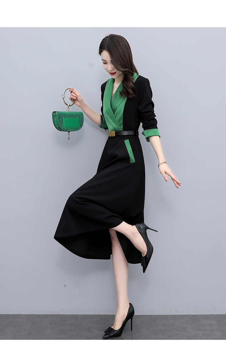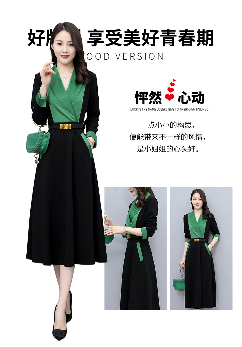 时尚个性,撞色拼接连衣裙接头通勤连衣裙HR-MYYS8016