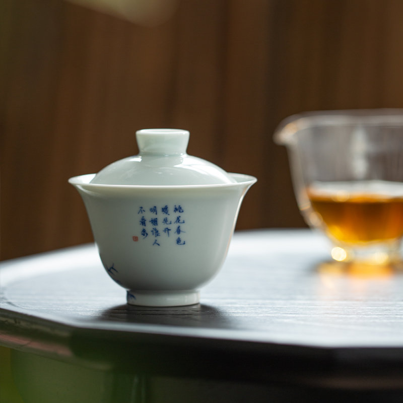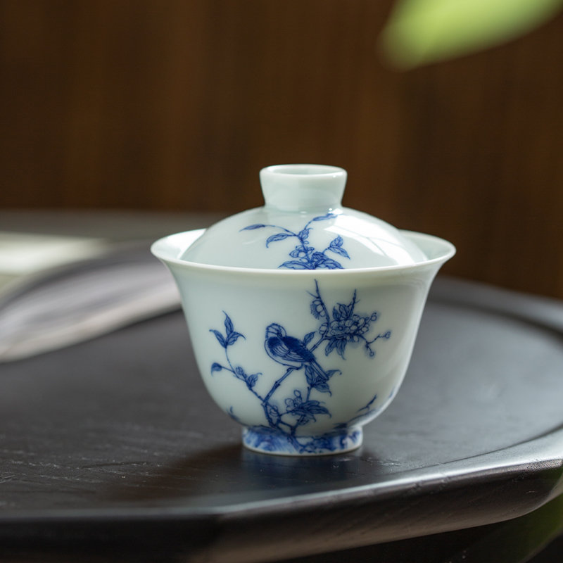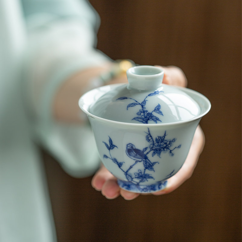 青花花鸟盖碗110ml